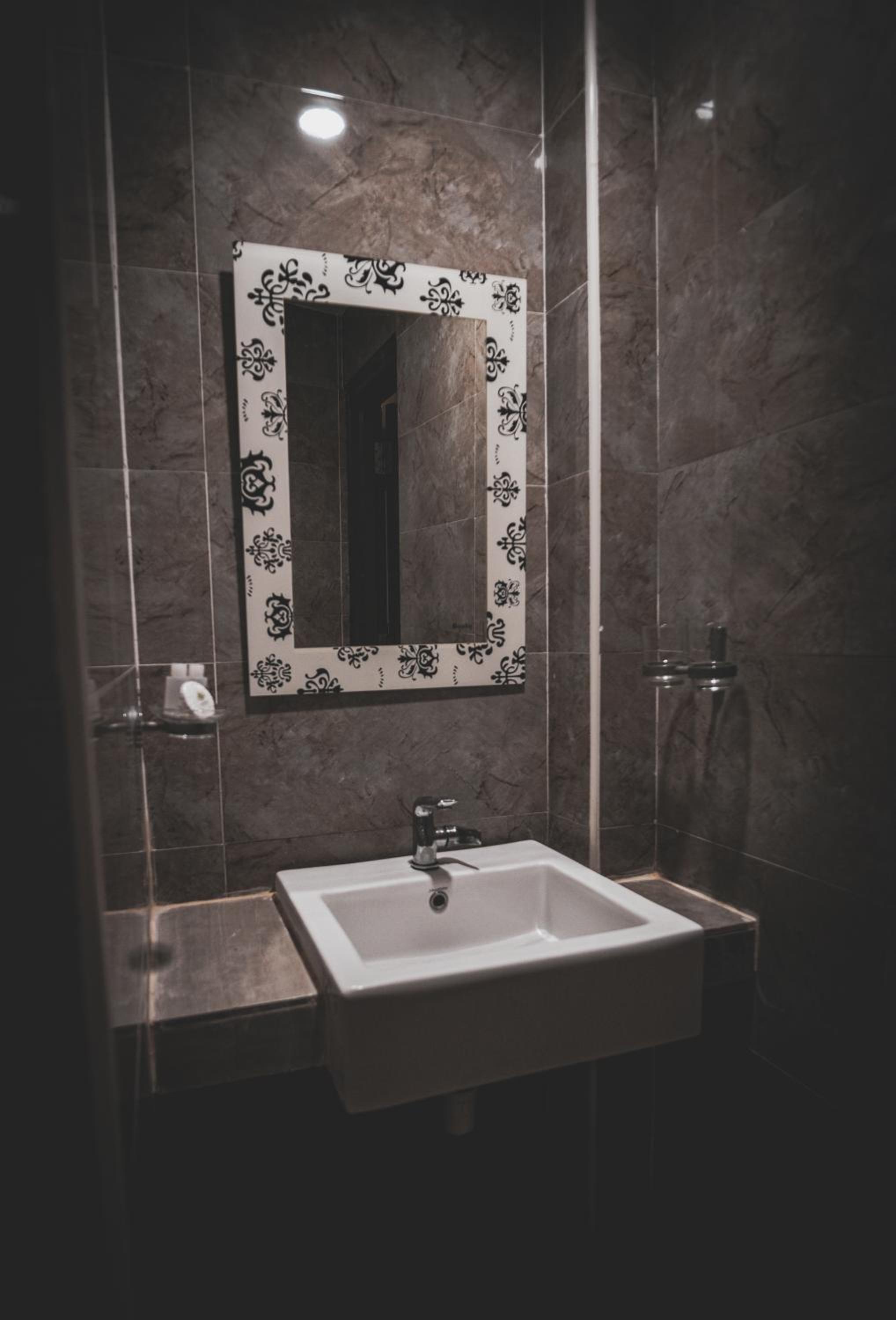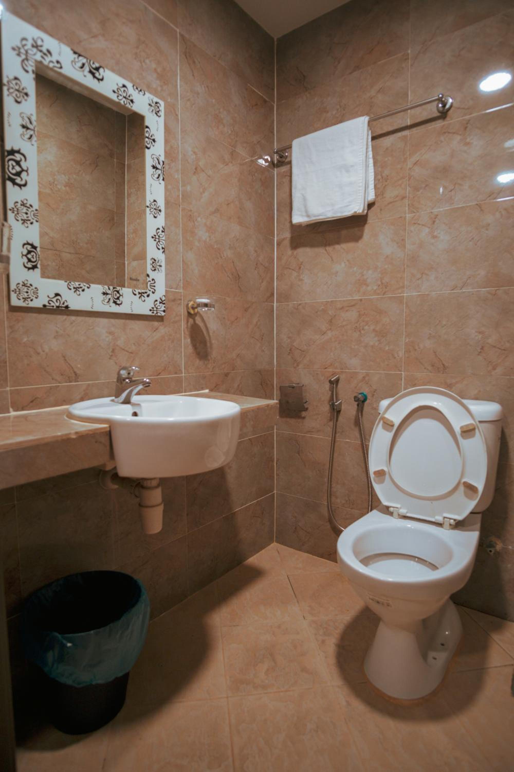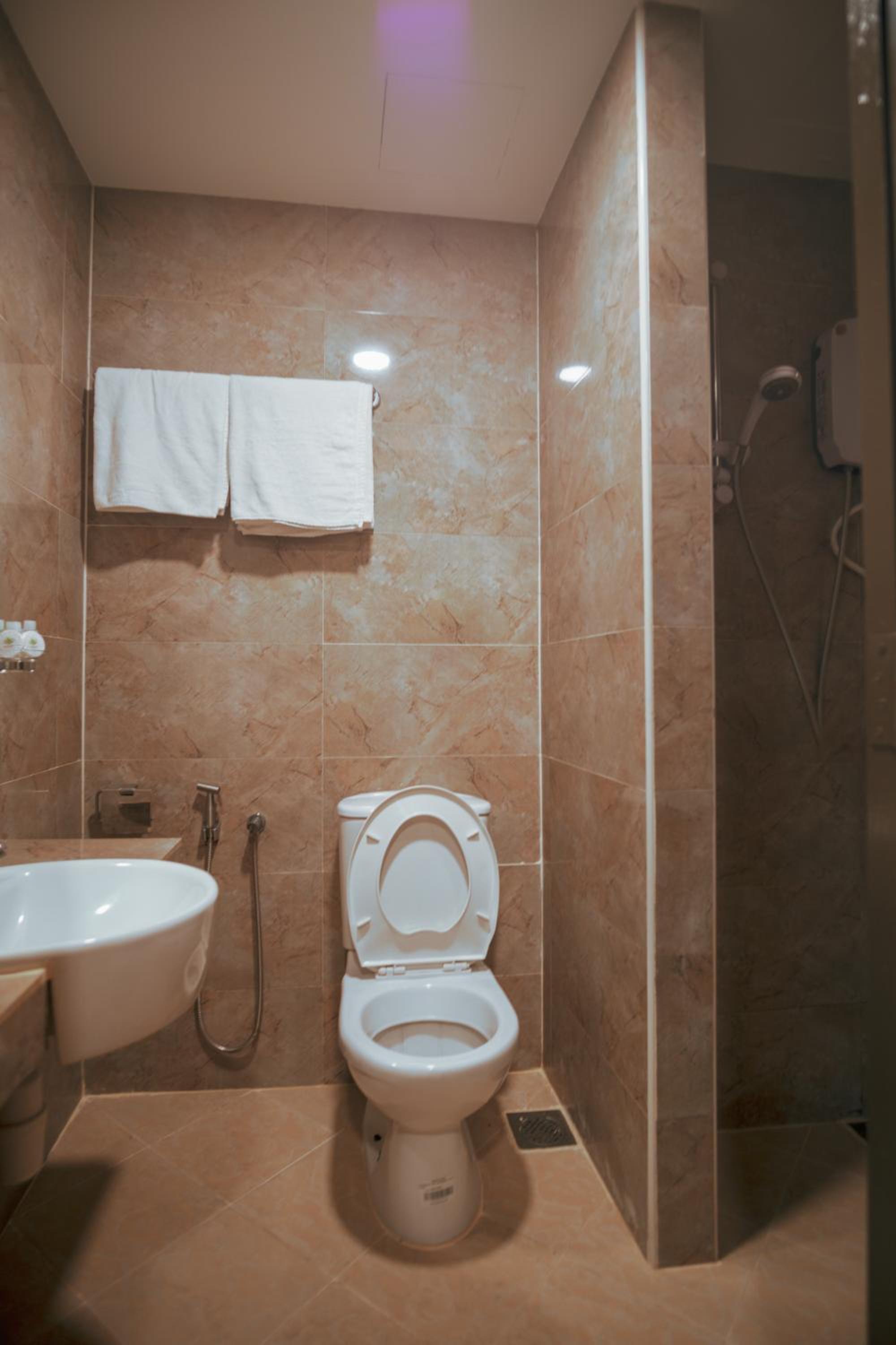 It quite dirty. The sink block and dirty. The bathroom dirty and slimy and slippery. The room got no window but so smelly