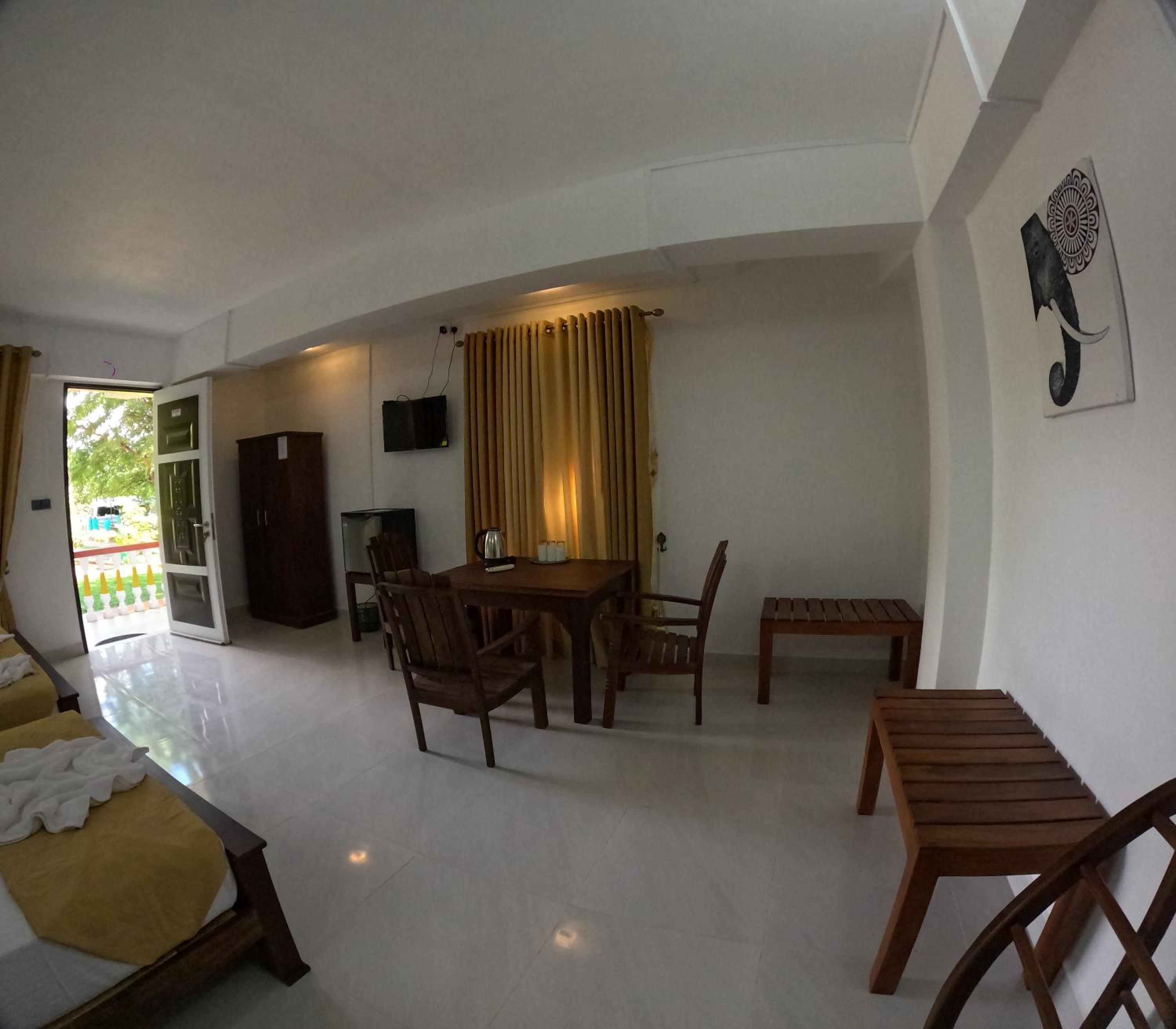 Clean and spacious room with a balcony, a little out of the main town but set amongst the trees and spice garden of the owners. Incredible value for money, the hosts were so accommodating we immediately felt like we were at home. Be sure to enjoy the breakfast and dinner cooking, we ate every meal at the accomodation for three days and left with bellies full of Sri Lankan food.