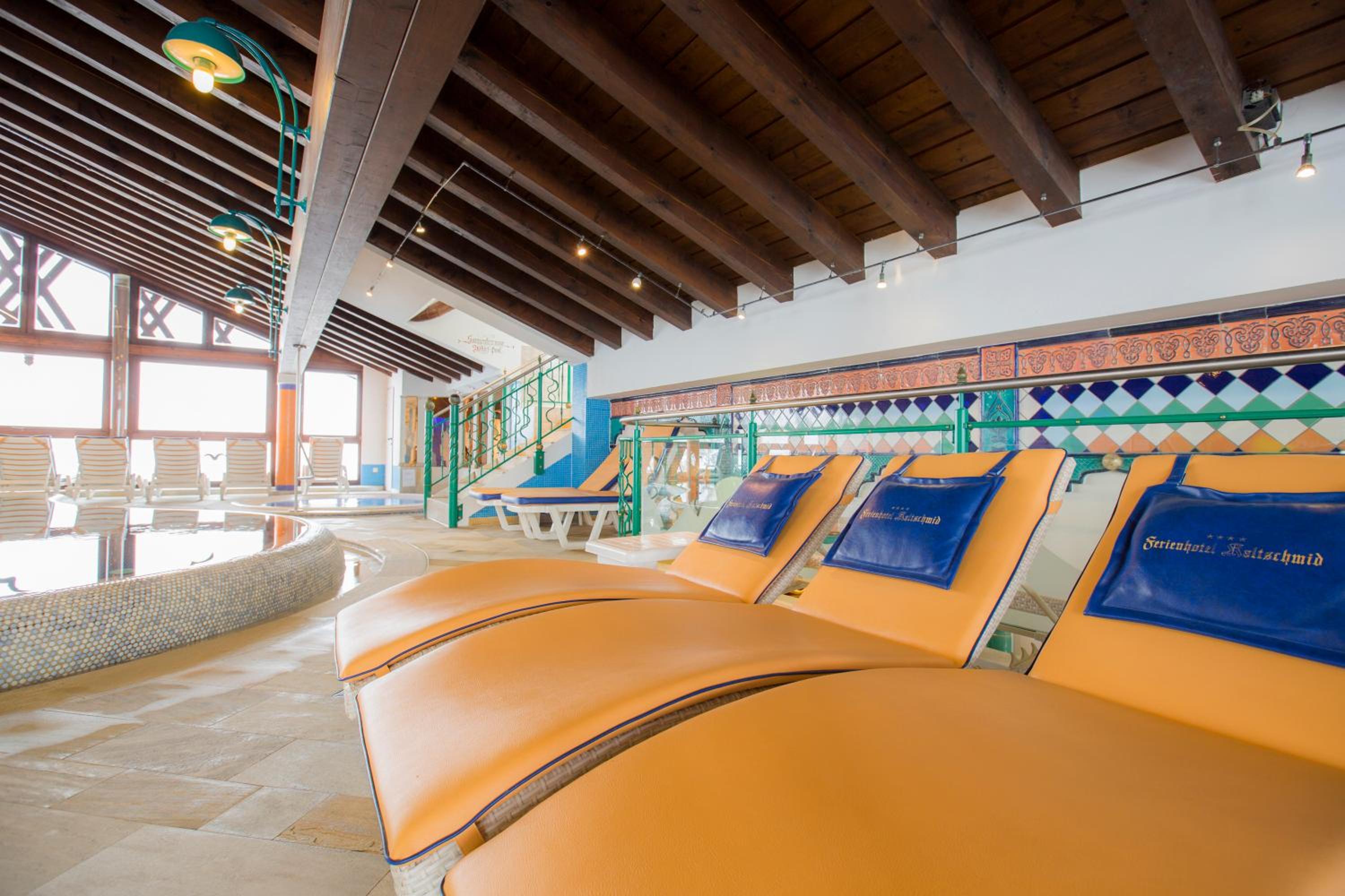 Der Wellnessbereich erscheint im Verhältnis zur Hotelgröße unterdimensioniert und weist altersbedingte Abnutzungserscheinungen auf.