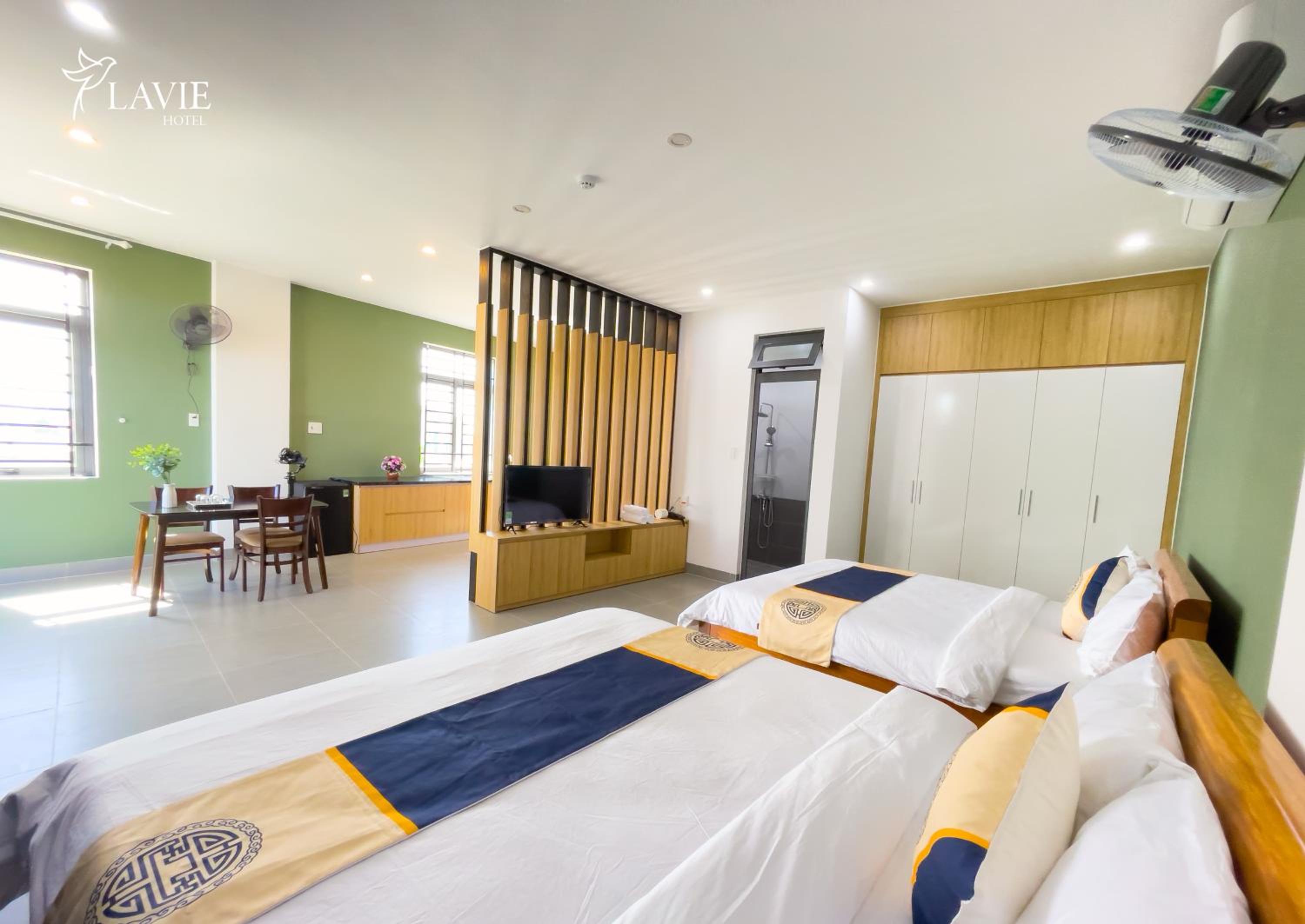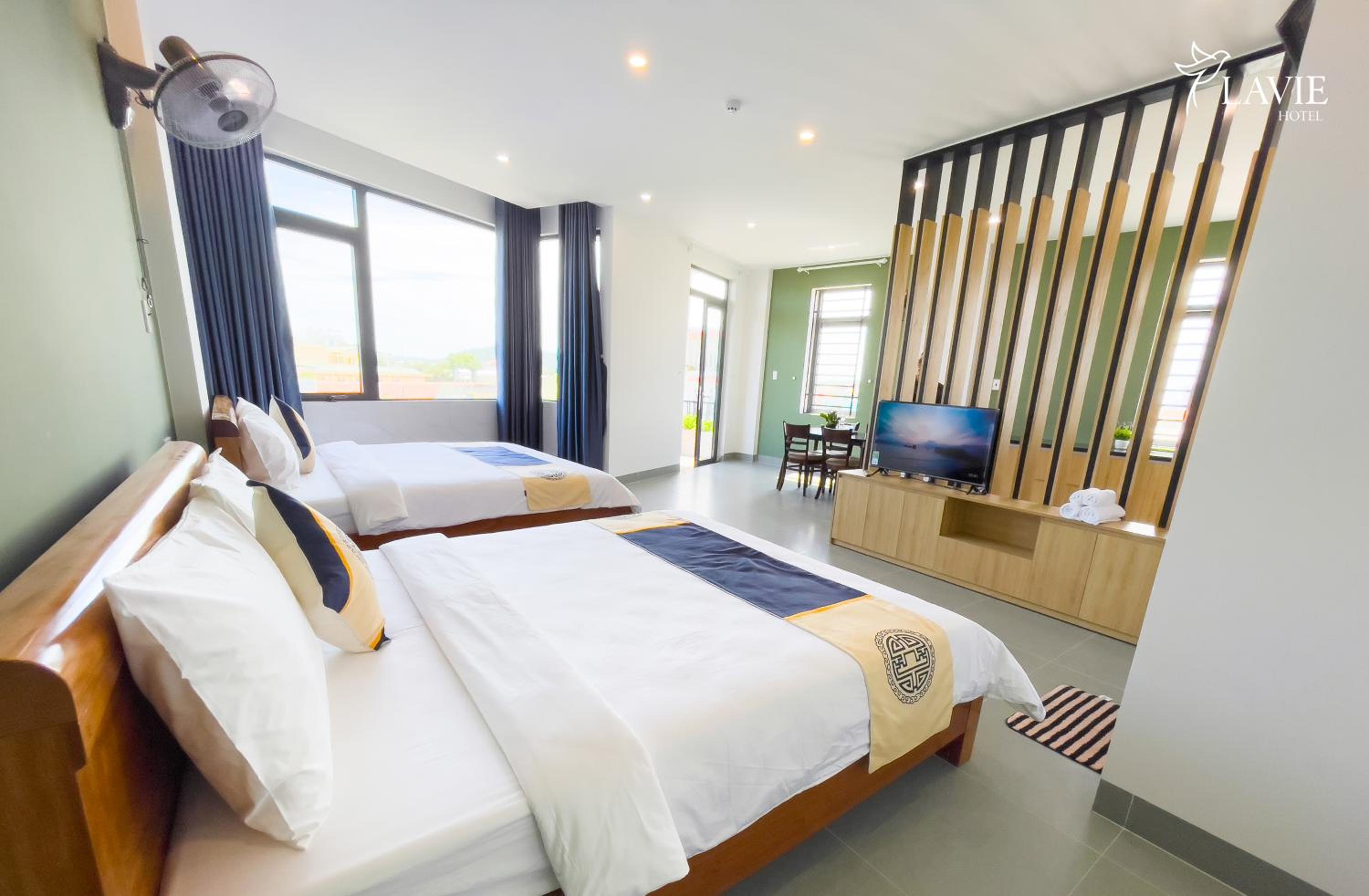 Khách sạn Lavie Hotel Quảng Ngãi offers air-conditioned rooms with modern amenities such as a flat-screen TV, safety deposit box, and private bathroom. Some rooms even feature a convenient kitchenette.