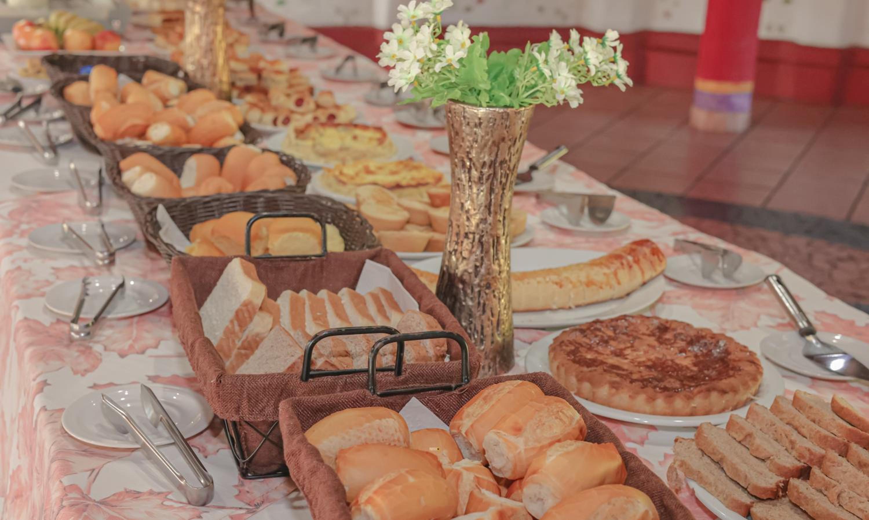 Cafe da manhã com Muita variedade.