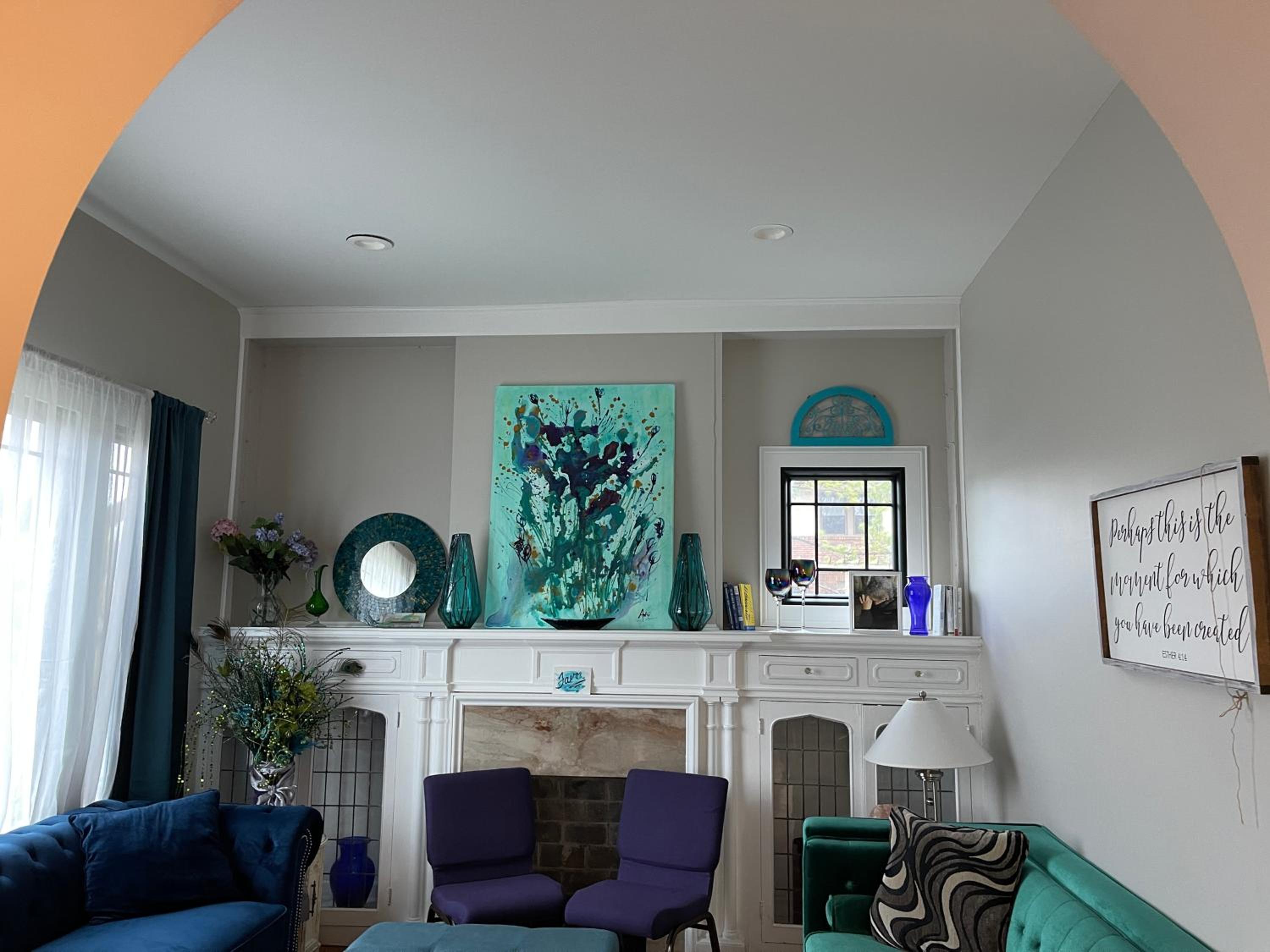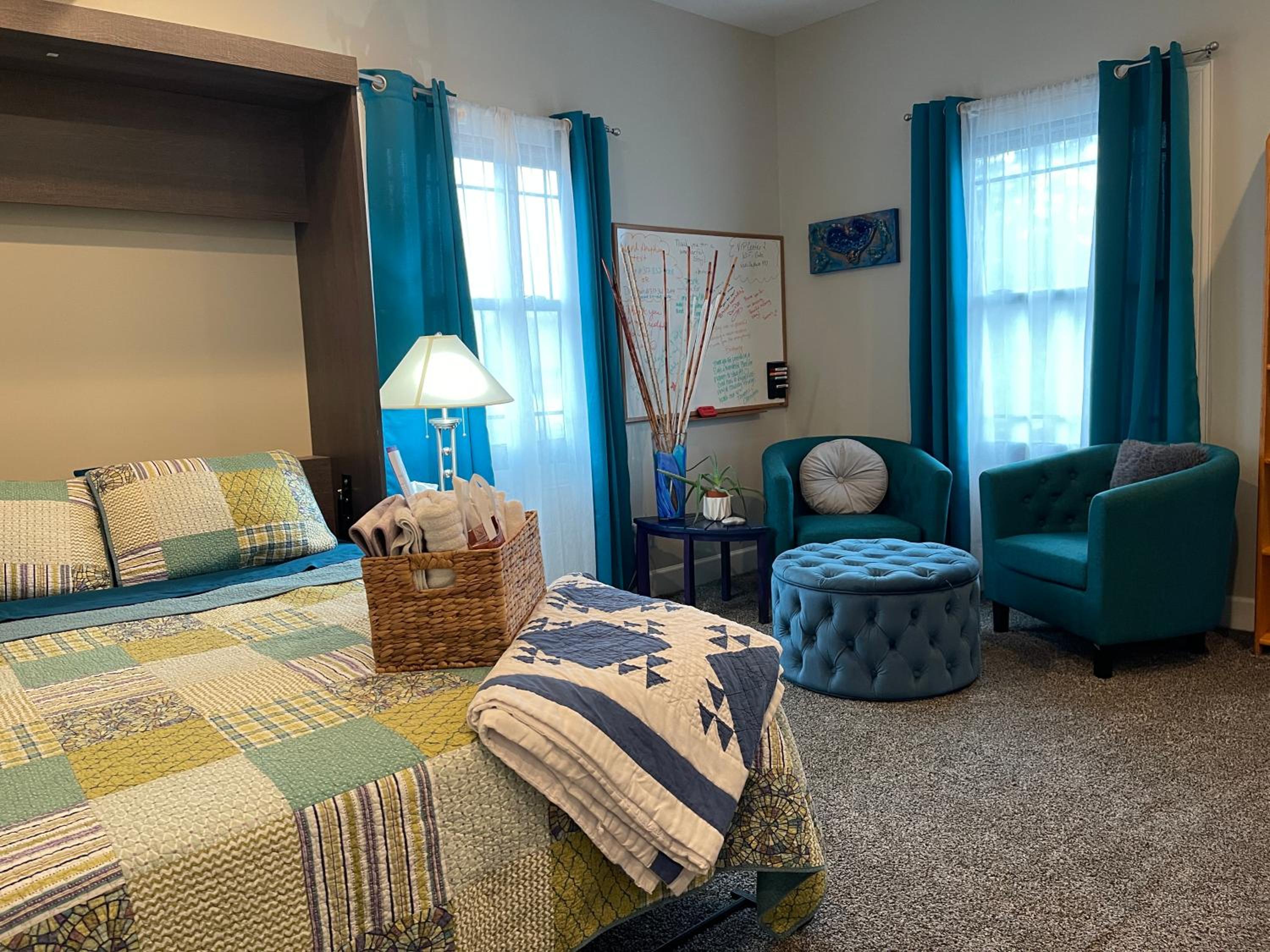 A beautiful room in a beautiful house. Walking into the room was like walking into a hug. It felt safe and private.