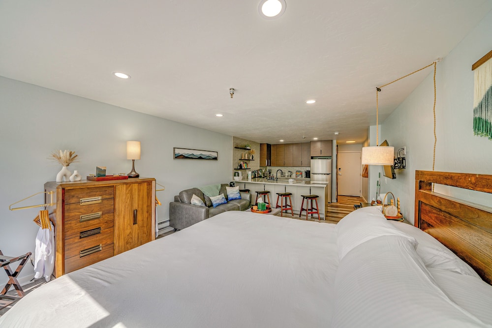 Enjoy the comforts of air-conditioned rooms with fully equipped kitchens and 55-inch flat-screen TVs.