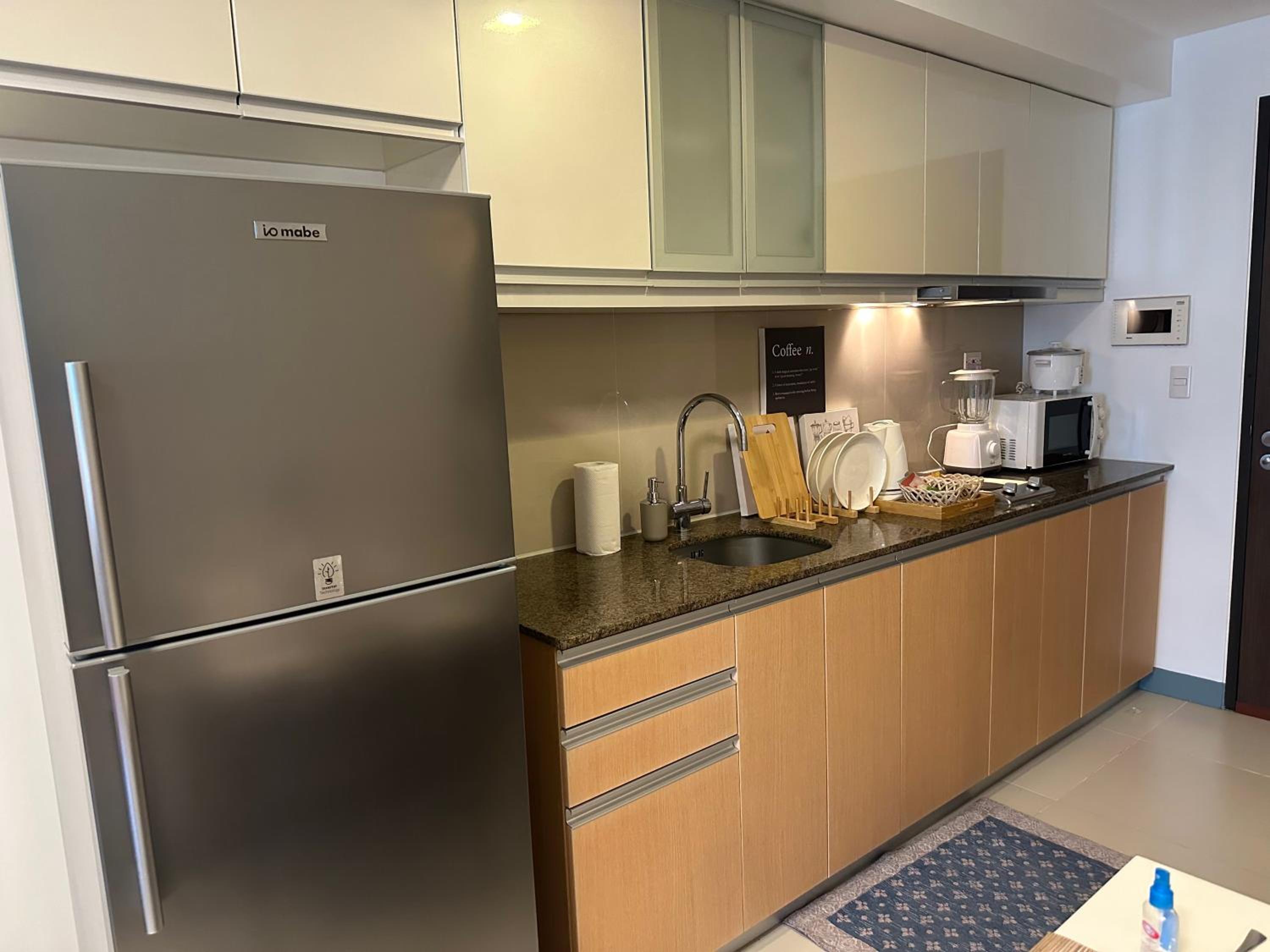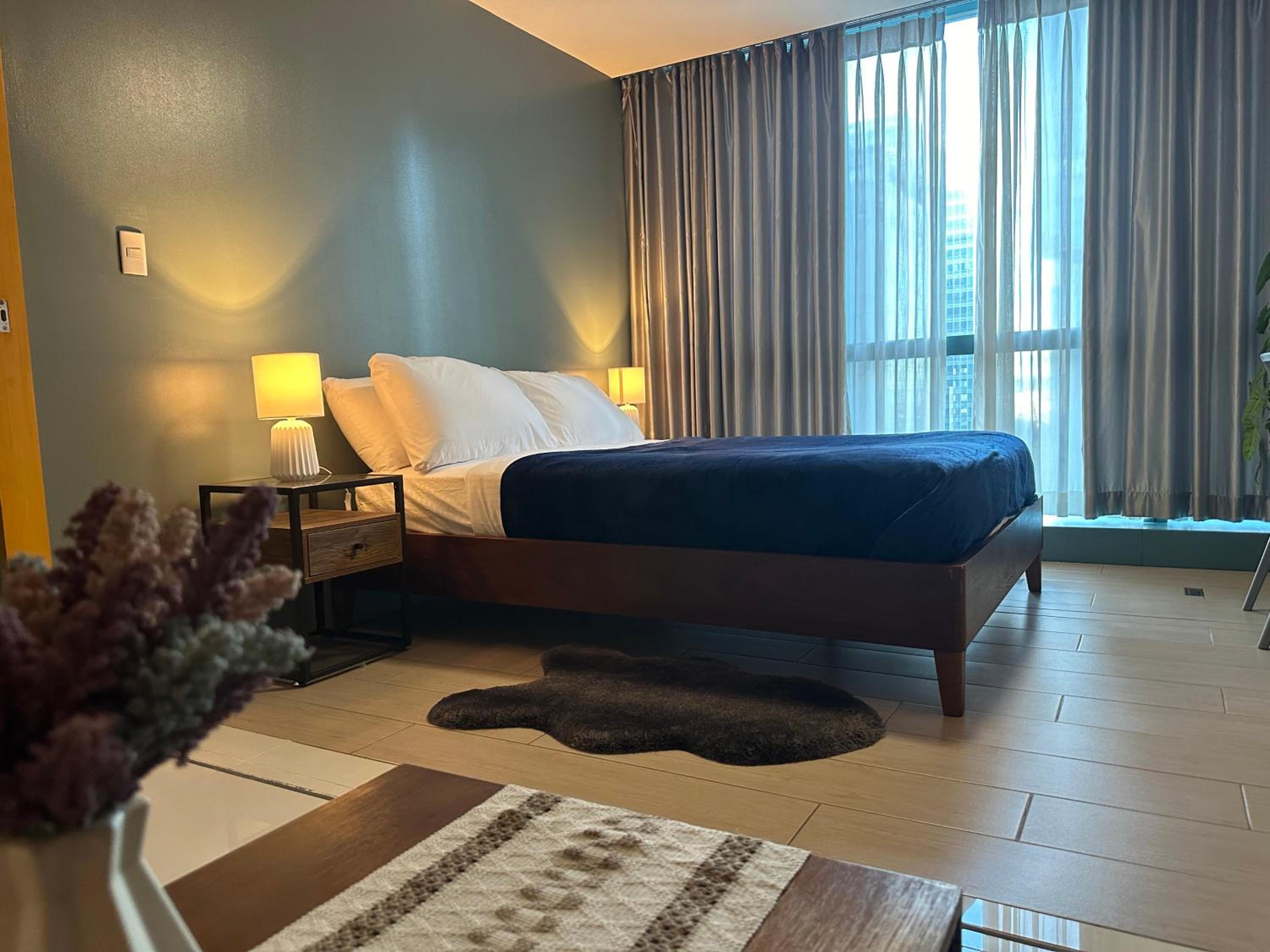 Where to begin the bed had a headboard that doesn't go with the bed and it's not attached to anything, this unit only has one set of sheets and that's on the bed,the blanket was smaller than the bed, the washing machine that is being advertised is so old and out dated that it constantly washing for 6 hours, you can not go to the amminities that is for the residents only the bathroom has mold in the shower horrible experience it's three elevators but only one was working for the size of the building that is not good at all, that unit only has a view that's it , it's not worth the money it's a horrible experience that I learned about renting in that area my advice stay in McKinley hill and take a grab to that area you will come out better, Phillipines is definitely a scam country they prey on forieners fool me once
