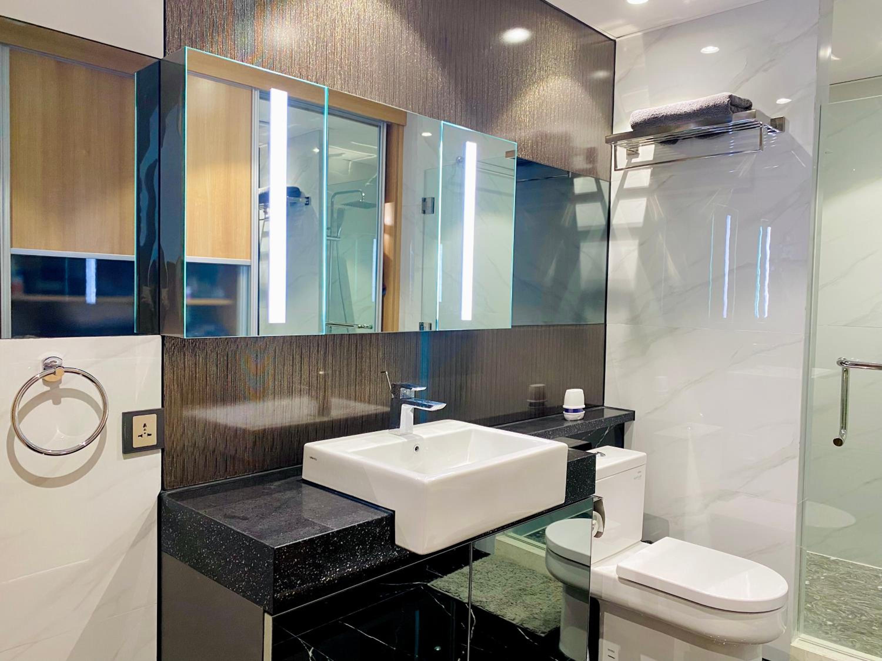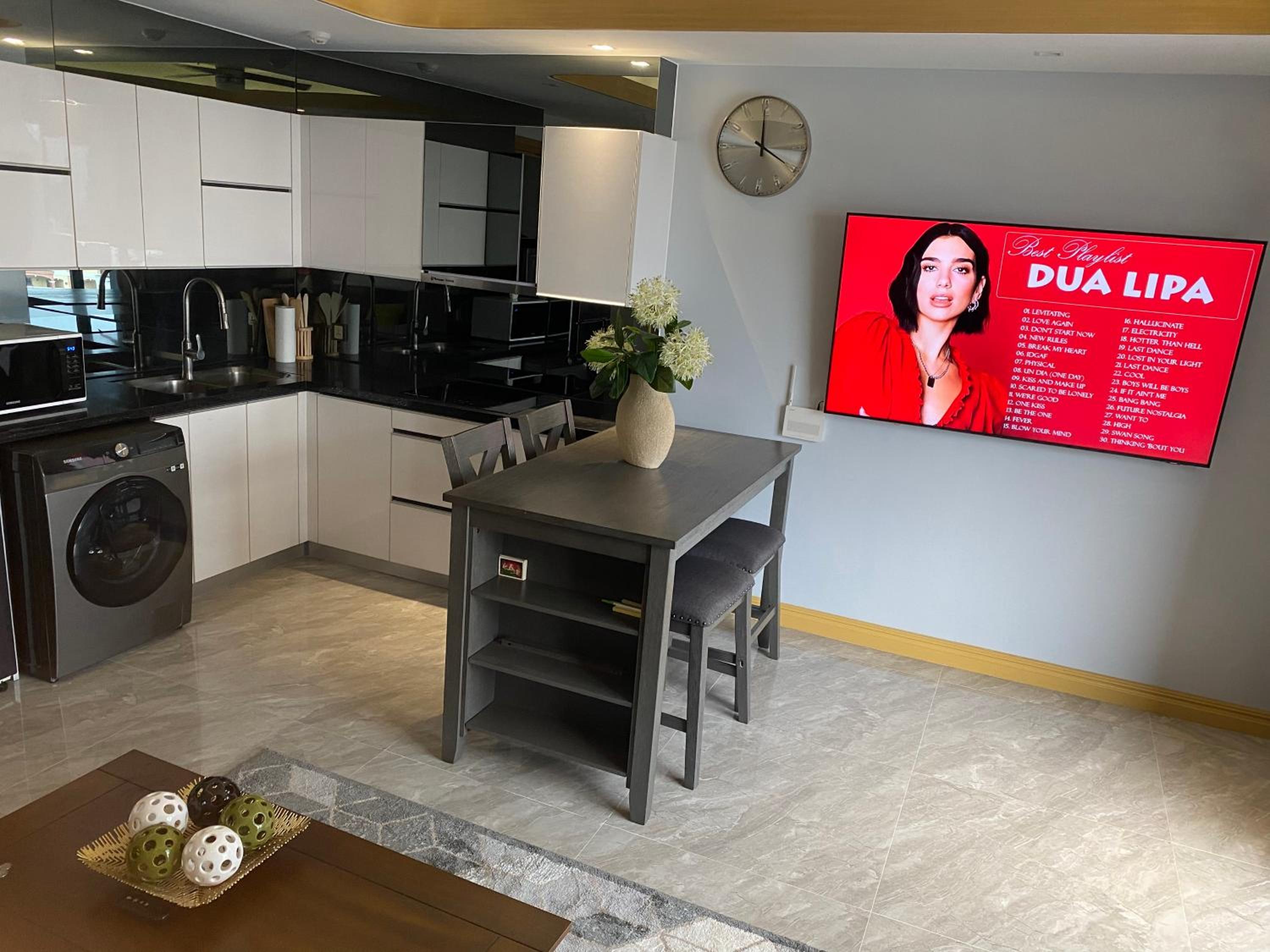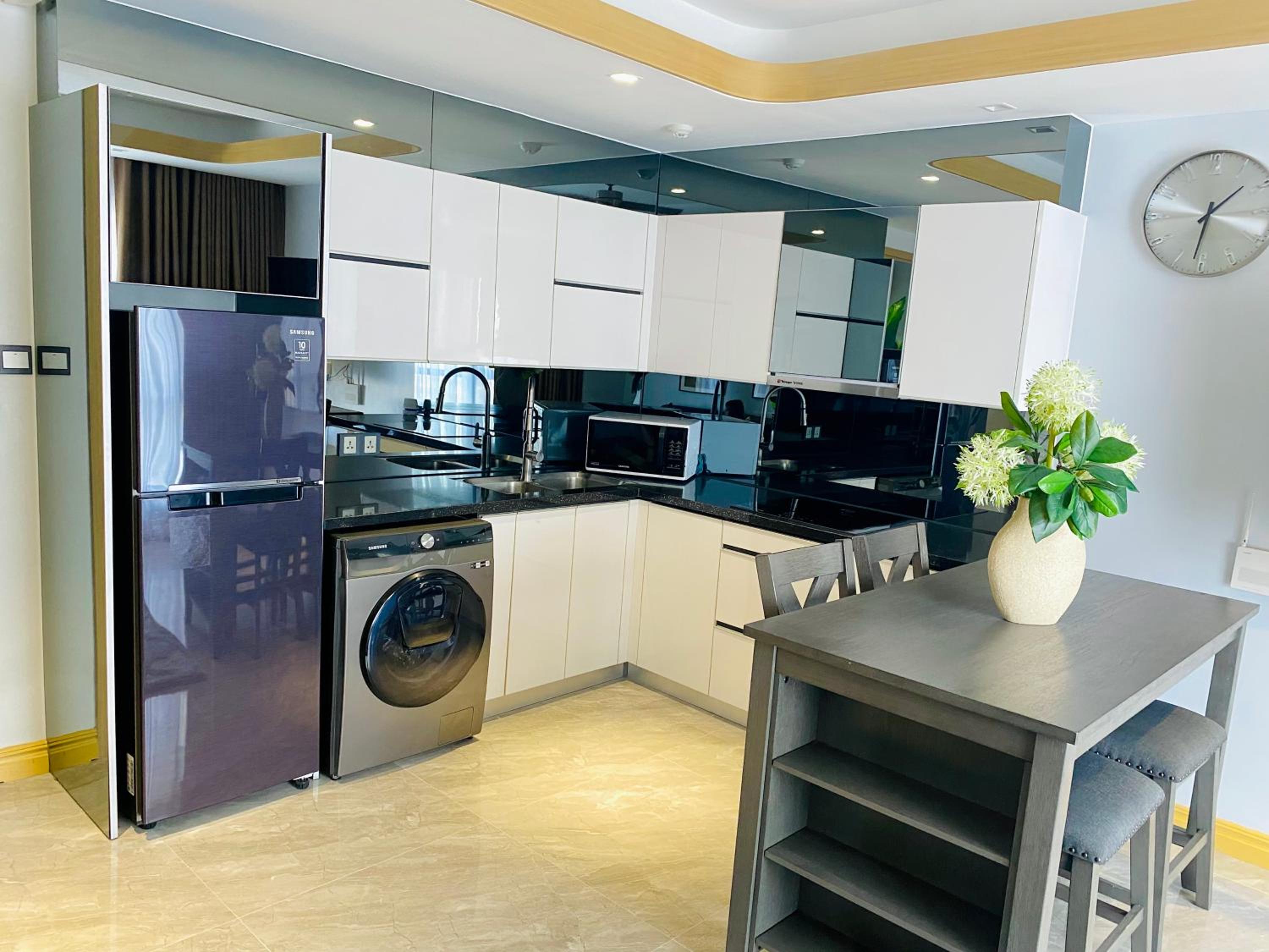 Everything was superlative. Modern apartment located near Walking street. Large rooms with air conditioning and all the equipment you need. Including TVs with Netflix Security personnel at the entrance. Comfortable bed, cleaning, shop in the immediate vicinity..A very pleasant surprise