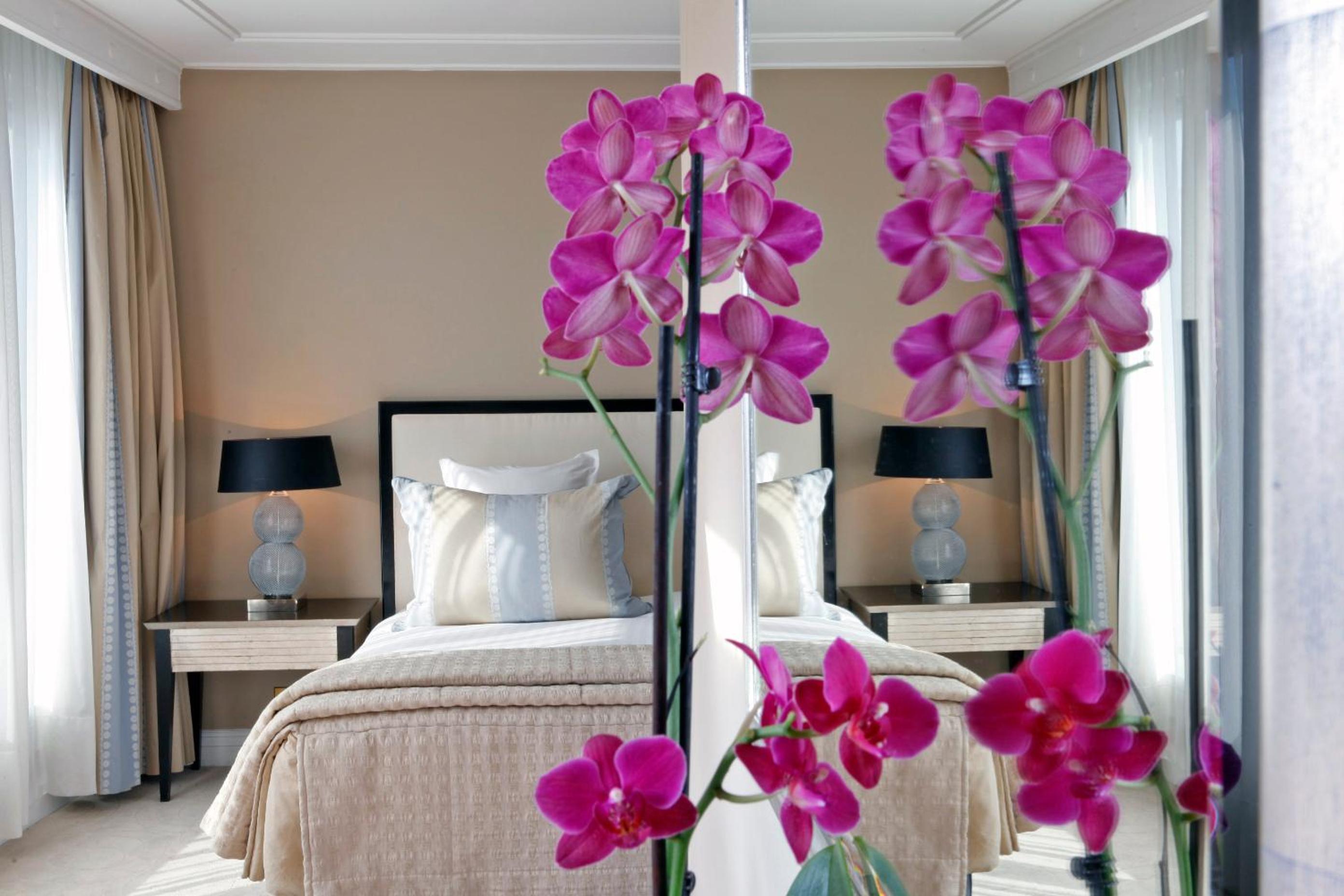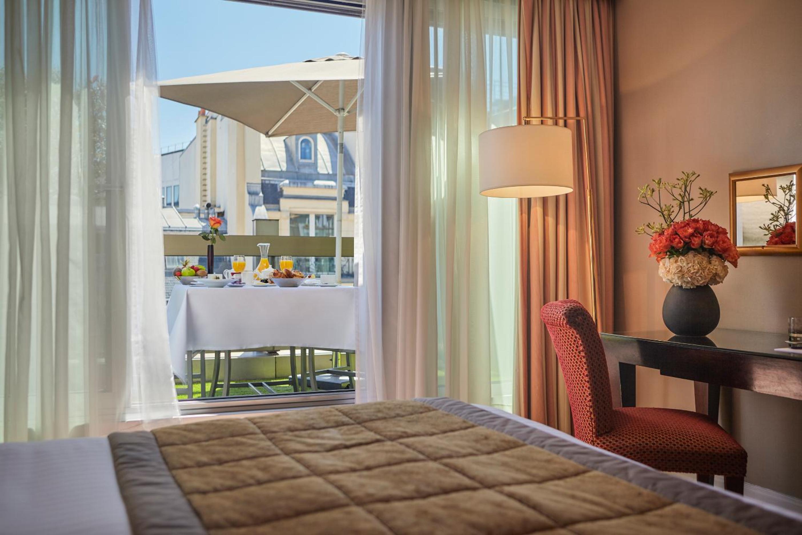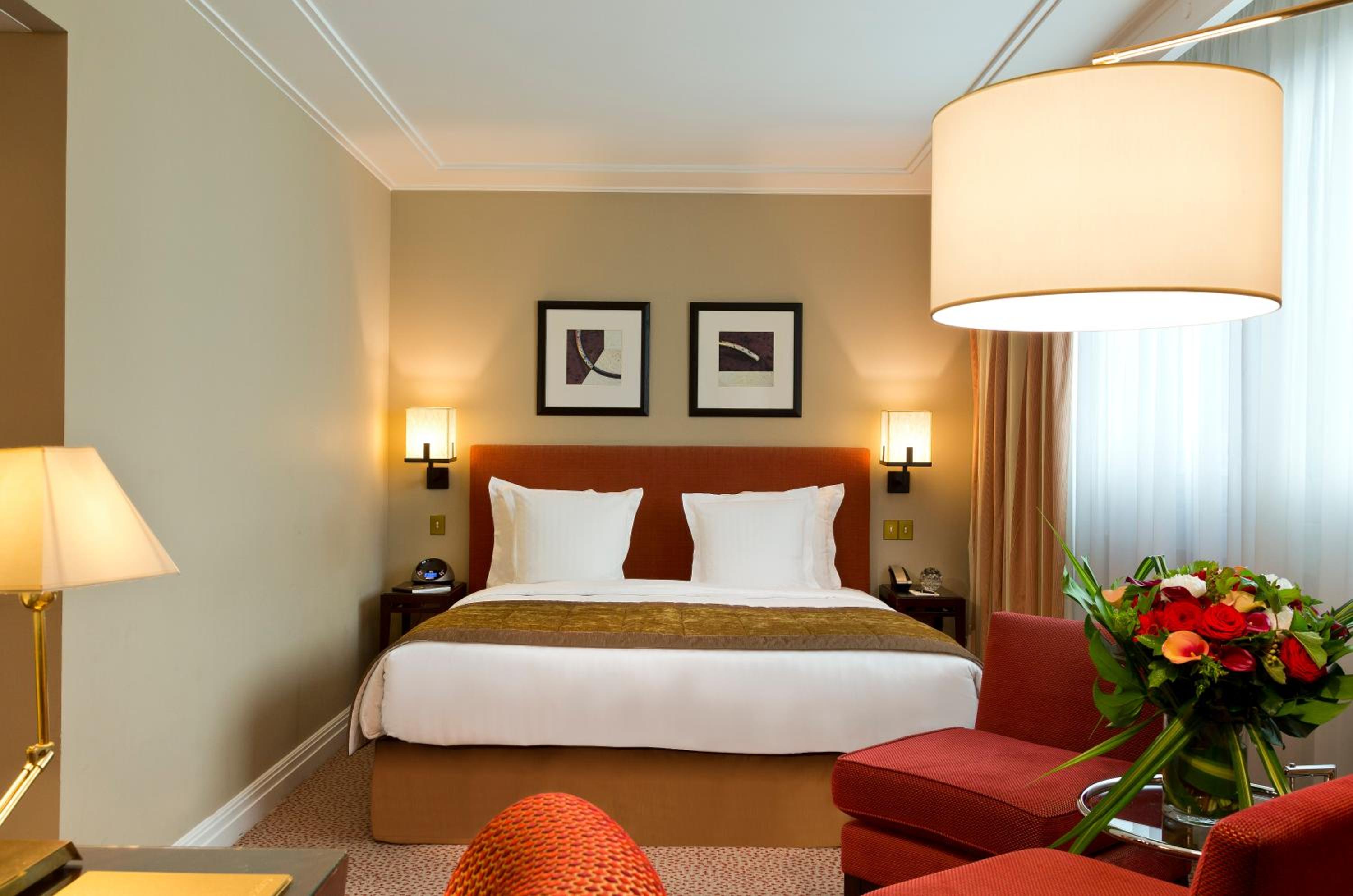 The Warwick Paris, nestled in the heart of Paris near iconic landmarks, offers elegantly decorated rooms with floor-to-ceiling windows providing ample natural light. Enjoy a range of amenities including a flat-screen TV with numerous channels, complimentary slippers, and bathrobes upon request.