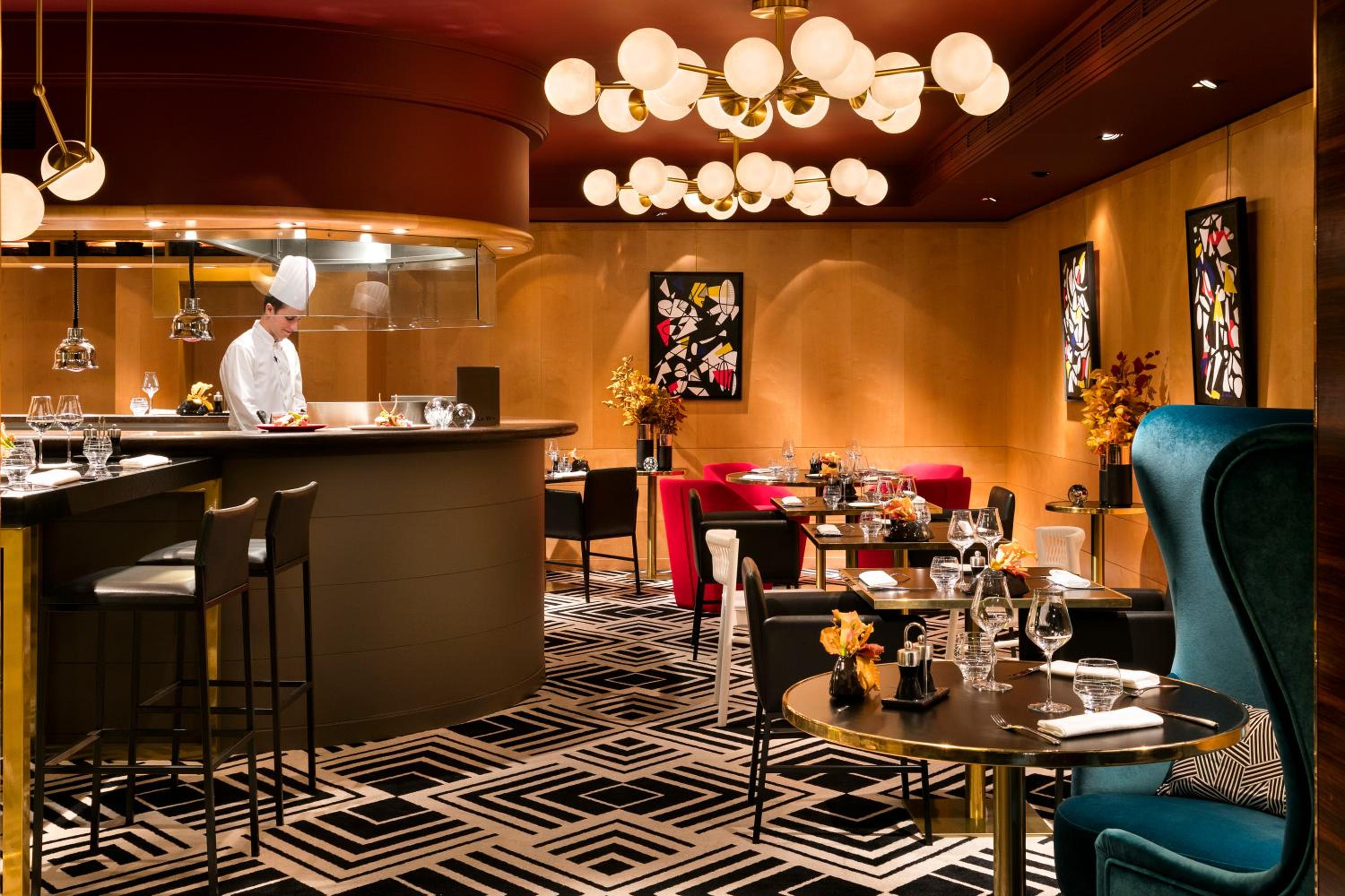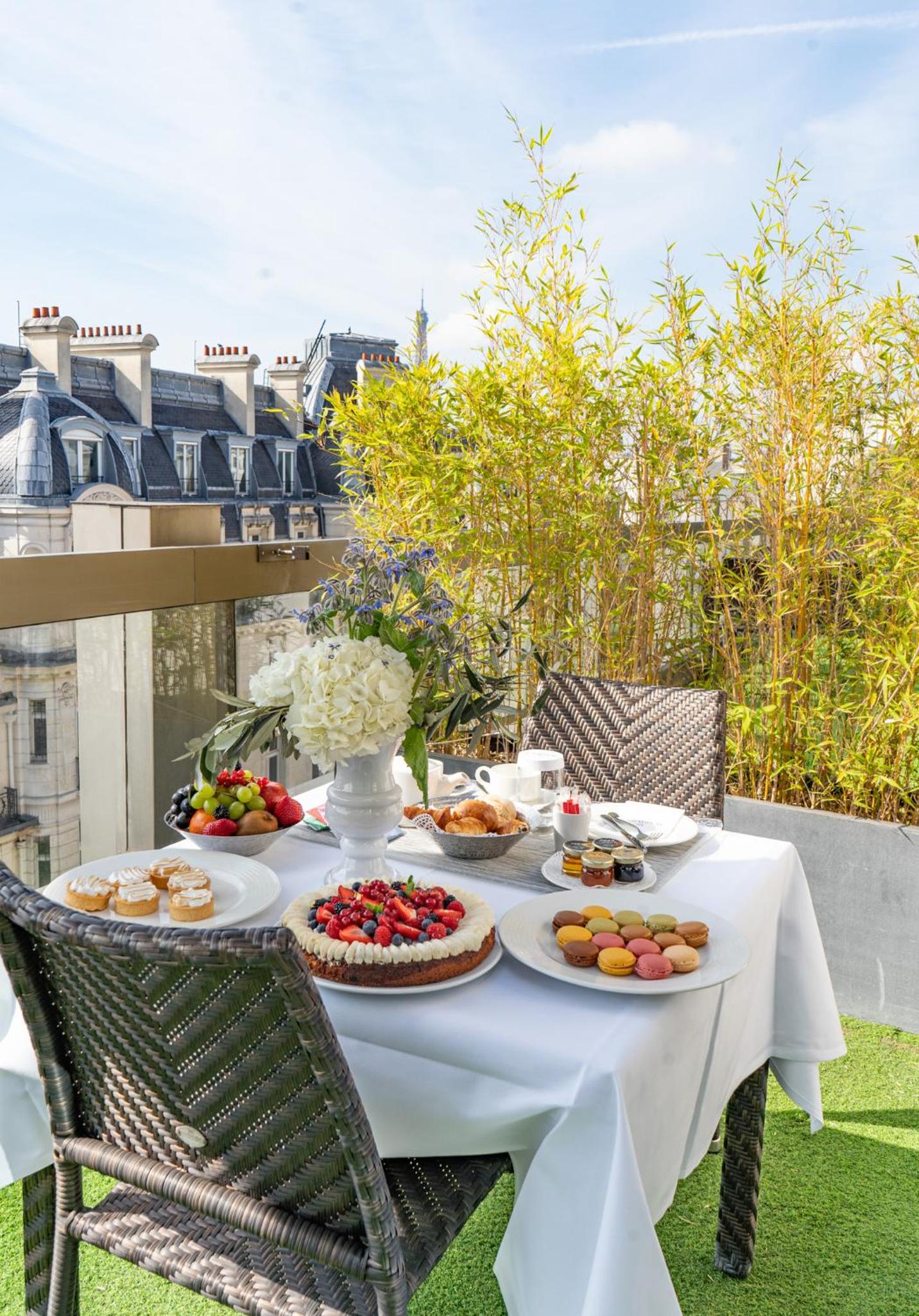 Indulge in seasonal French cuisine at the W Restaurant or unwind at the W Lounge Bar. During summer, savor meals and cocktails on the penthouse terrace with breathtaking views of the Eiffel Tower.