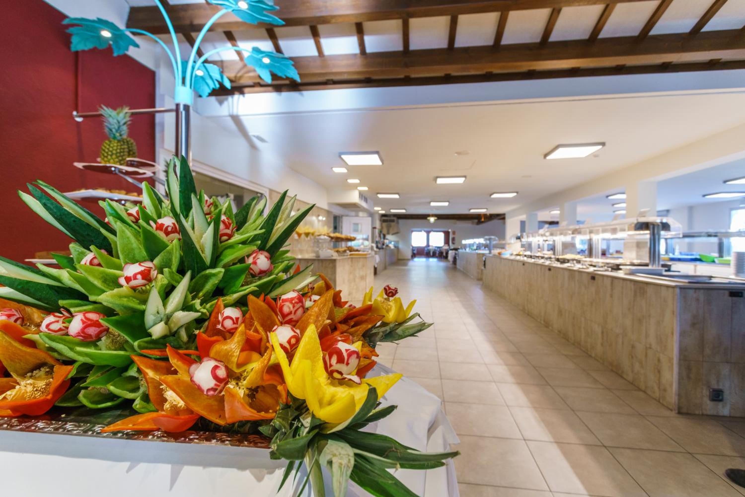 Savor international cuisine at Es Llaüts buffet restaurant, witness live cooking, and enjoy refreshing drinks at the Amurada or Oasis bar. Don't miss the daily evening entertainment at the outdoor stage.