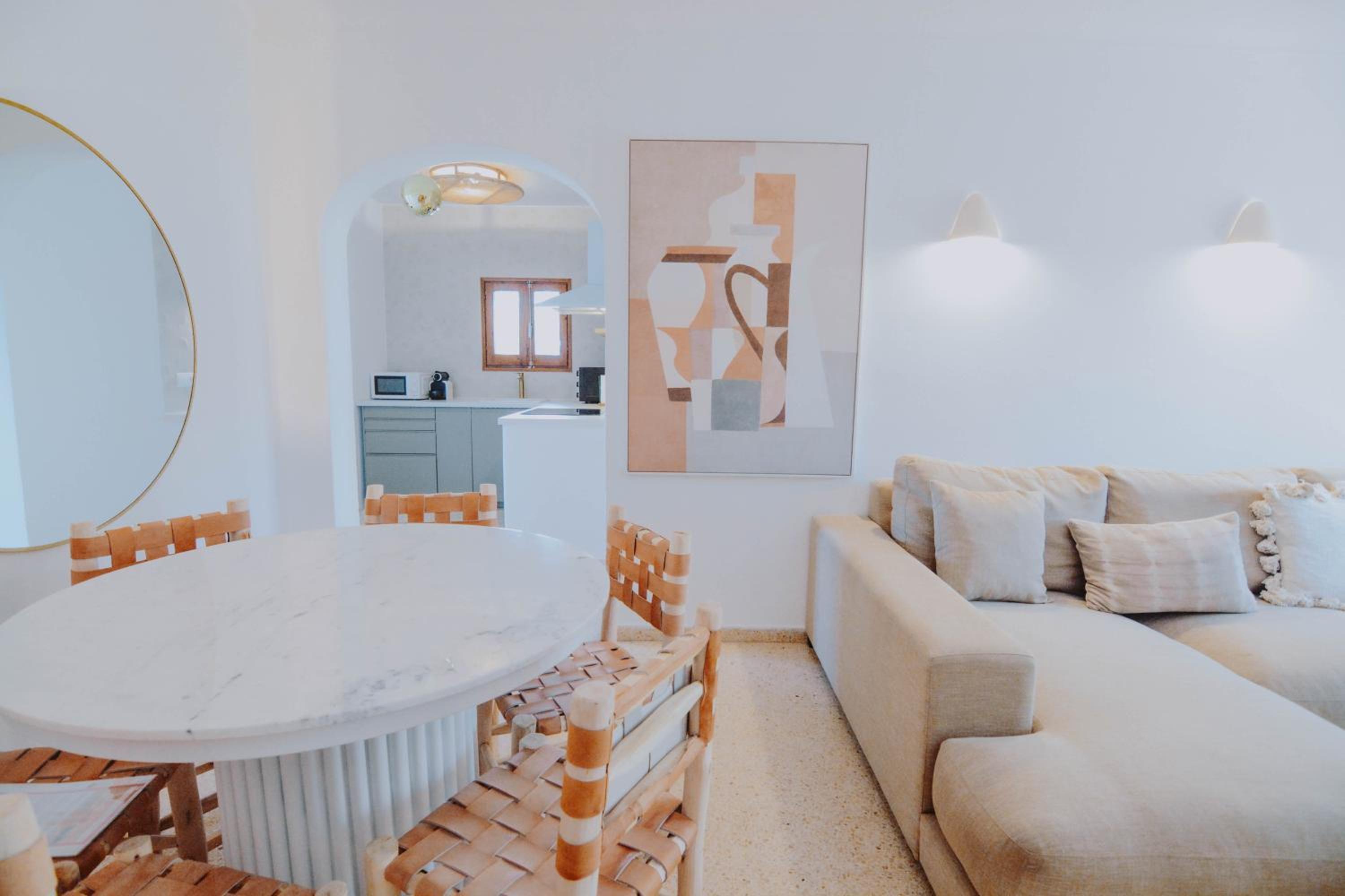 Indulge in the spacious apartments with Ibicencan-style design and modern amenities like a fully equipped kitchen and a flat-screen TV.
