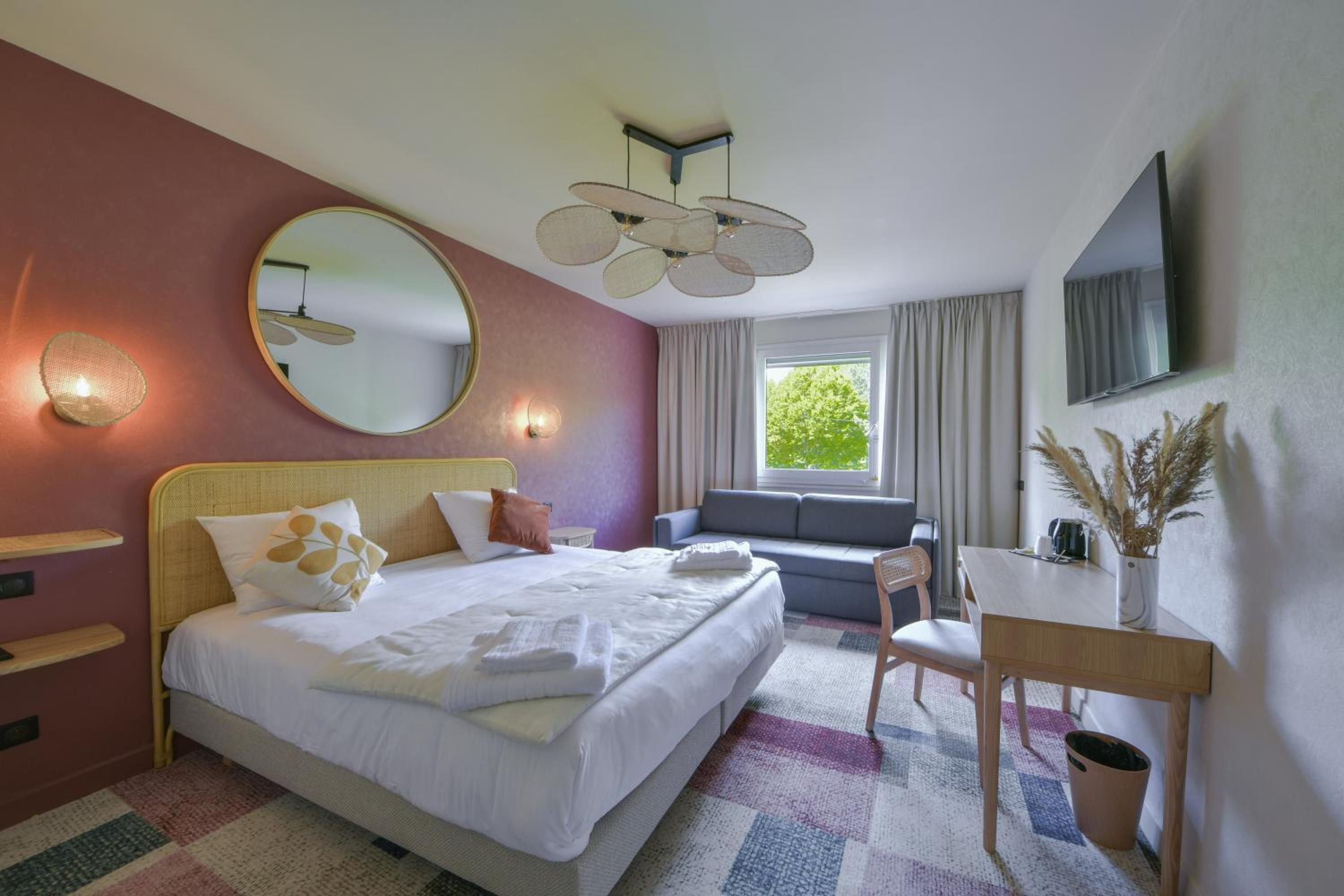 Chambre très agréable, bien décorée. Calme. Nous y avons très bien dormi. Canapé lit dans la chambre pour les enfants. Le matelas y était moins confortable que le double lit.