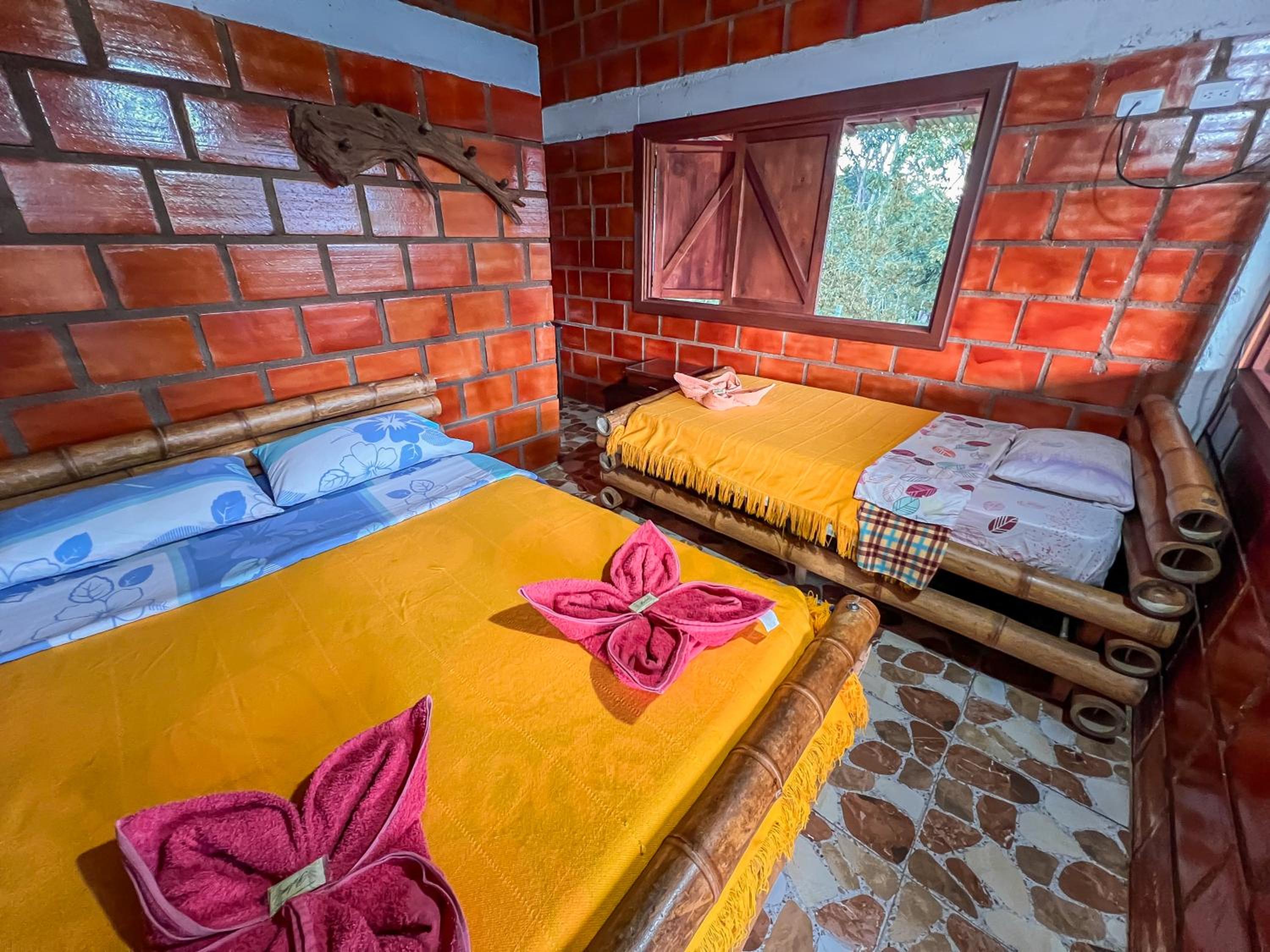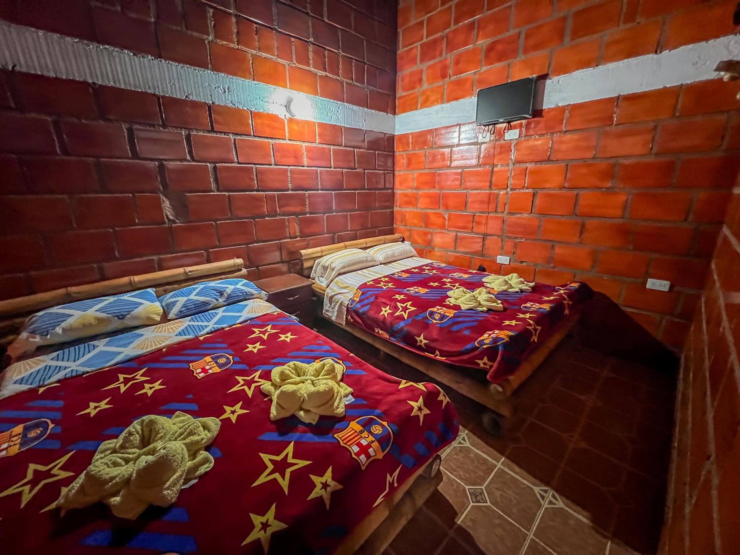 Los colchones estaban duros, la habitación estaba estrecha no habia suficiente espacio entre las camas, el televisor no tenia señal y era muy pequeño