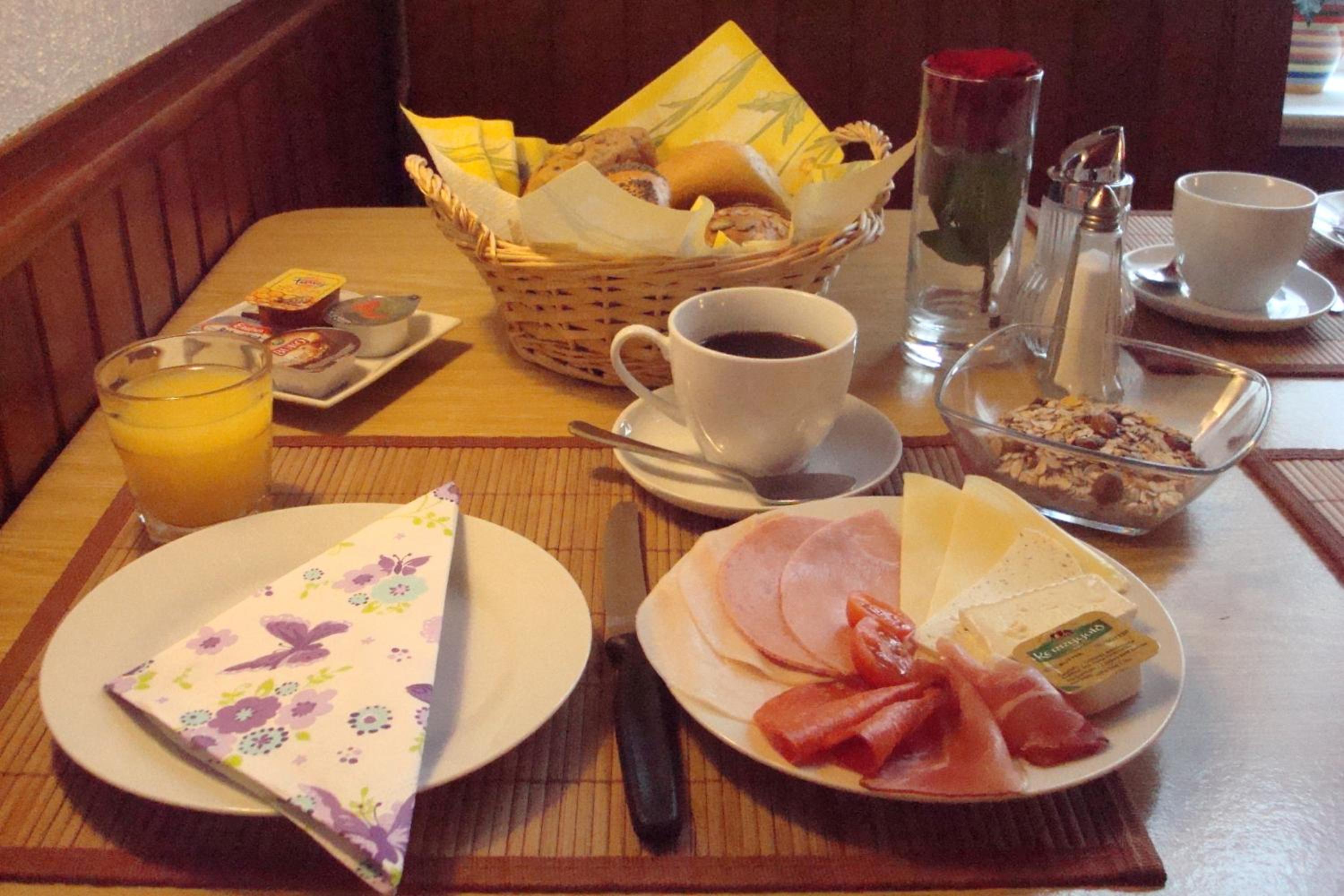 Das Frühstück habe ich nicht ausprobiert. Der Gesellschaftsraum sah aber ganz OK aus.