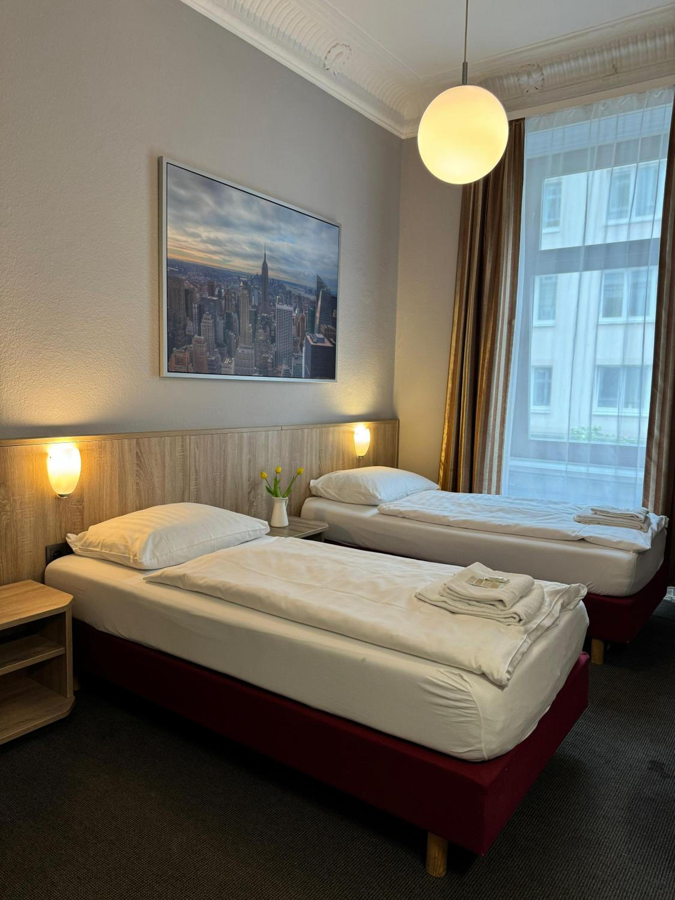 Experience the elegance of Art Nouveau design at our hotel in Hamburg's St. Georg district. Our bright rooms, though non-smoking, offer comfort and style with shared showers and/or toilets.