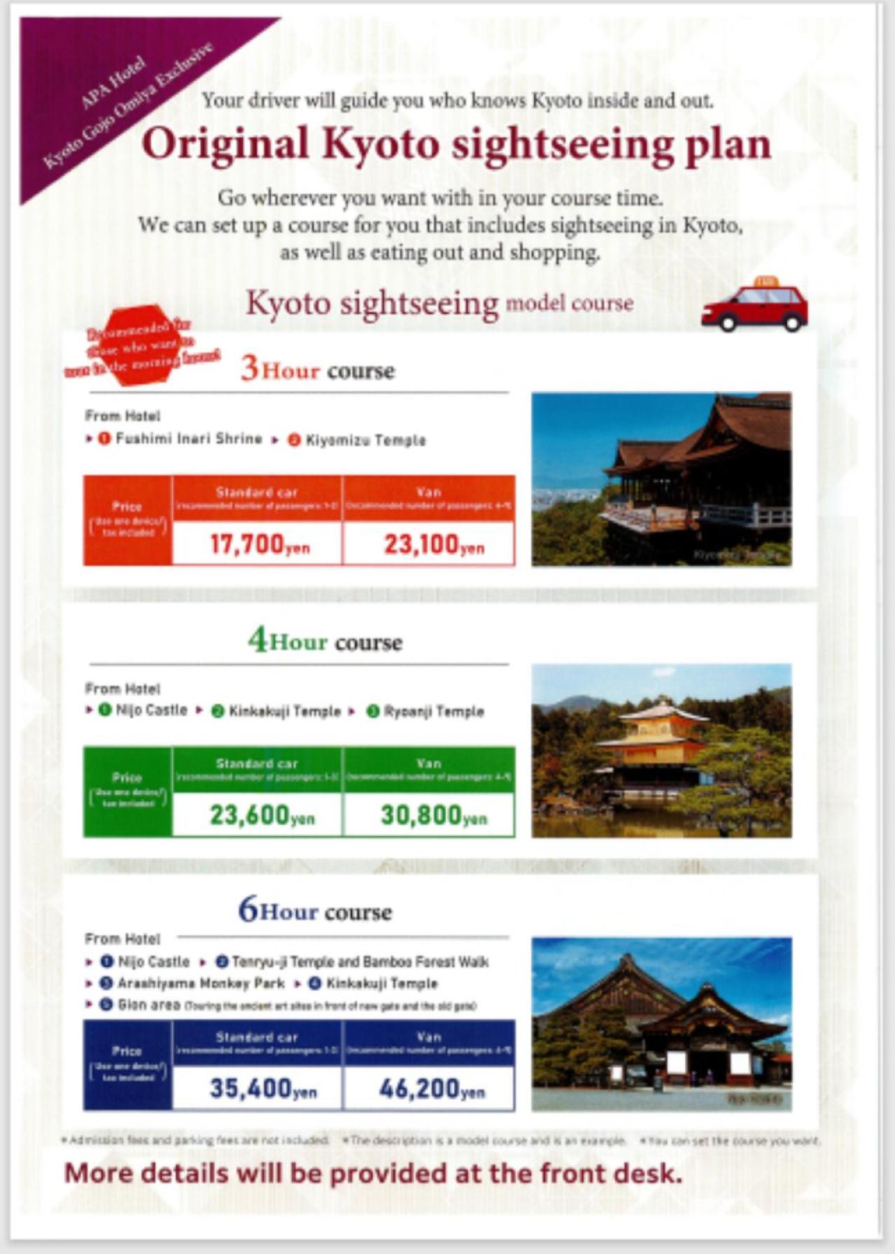 ホテルのバーキングはありませんが、ホテル前の交差点近くにコインバーがあり、便利です。インバウンドの外国人(特に中国政策)も少なく、雪の古都京都を楽しく十分に堪能させていただきました。