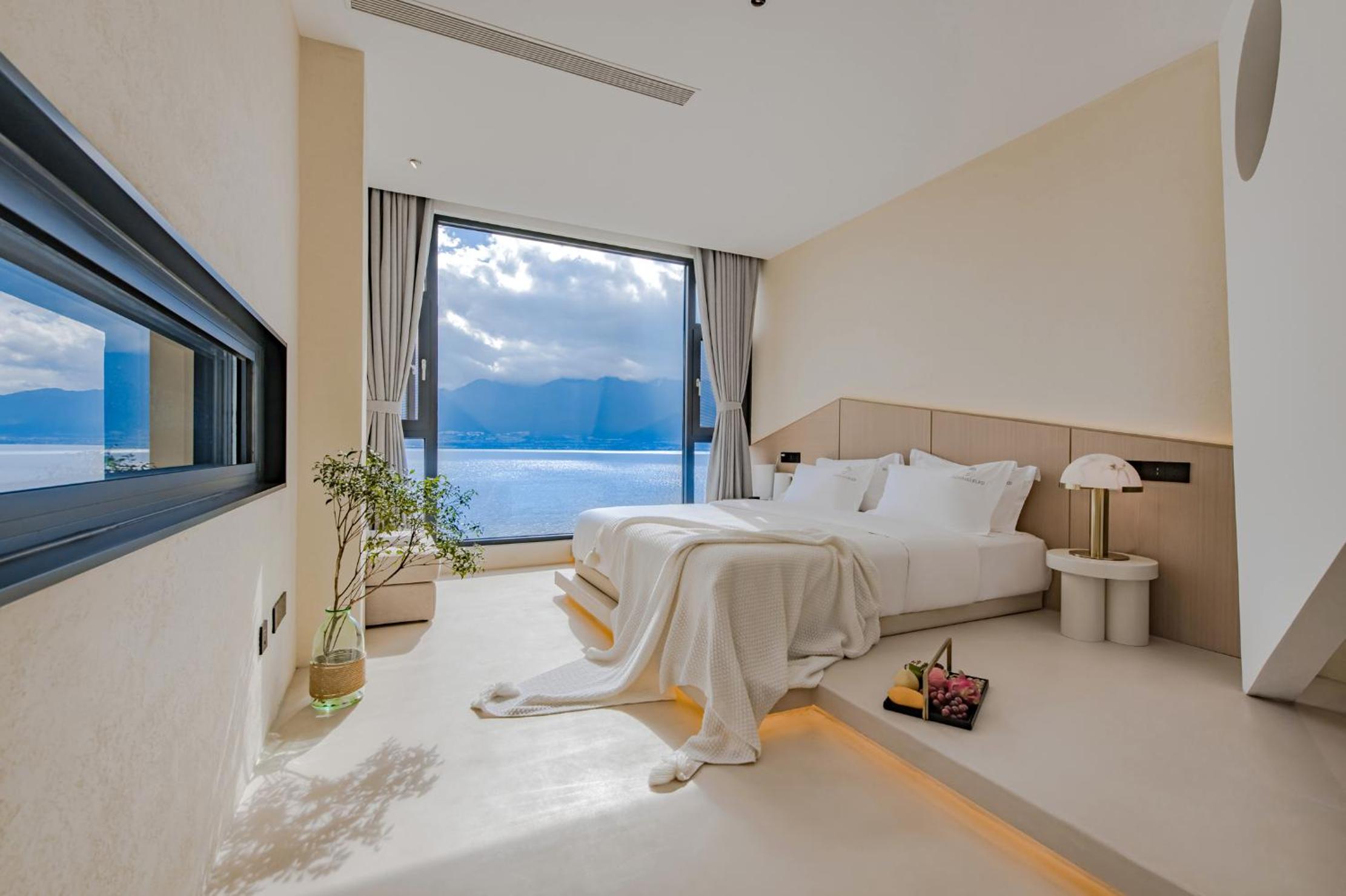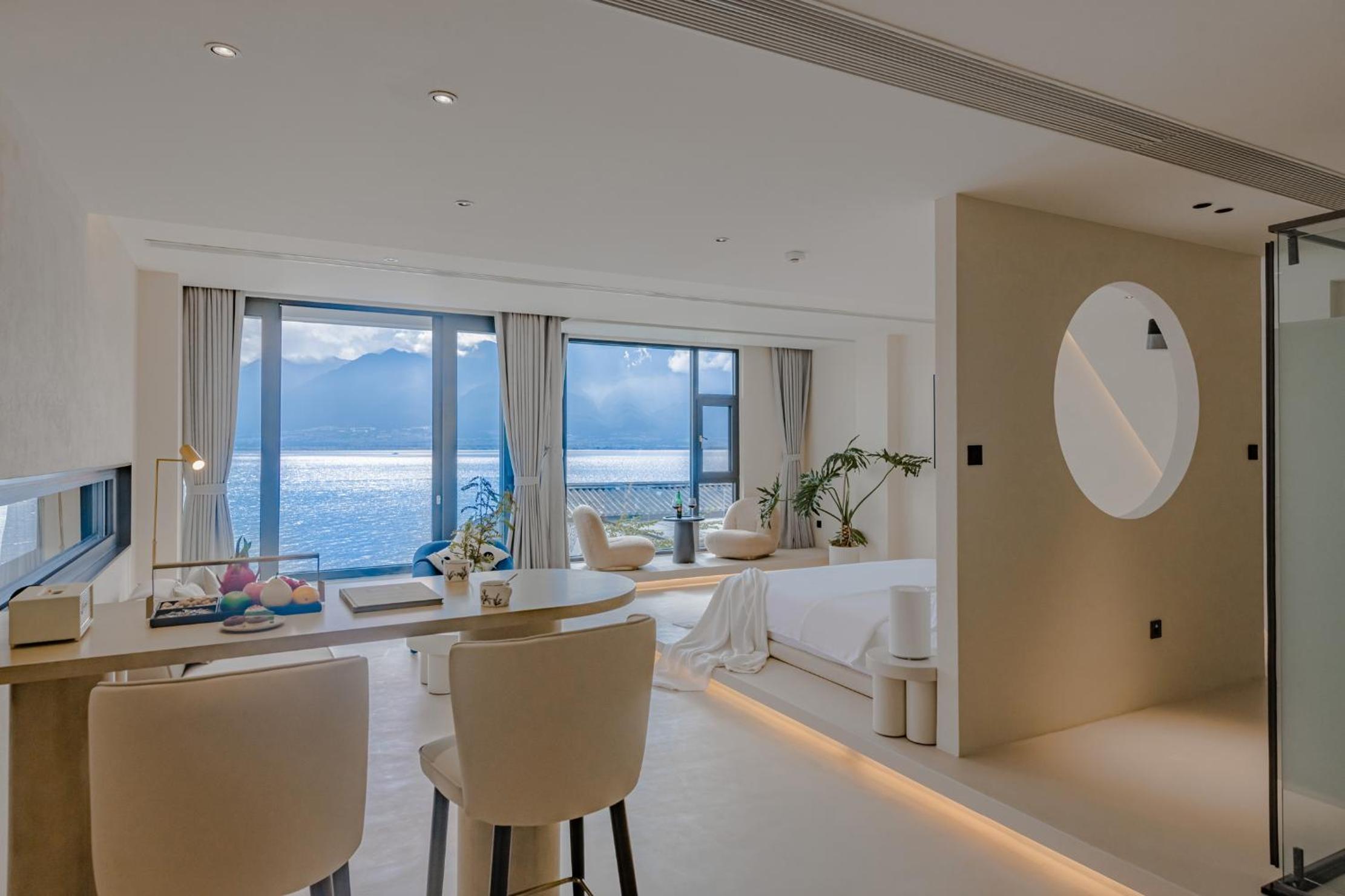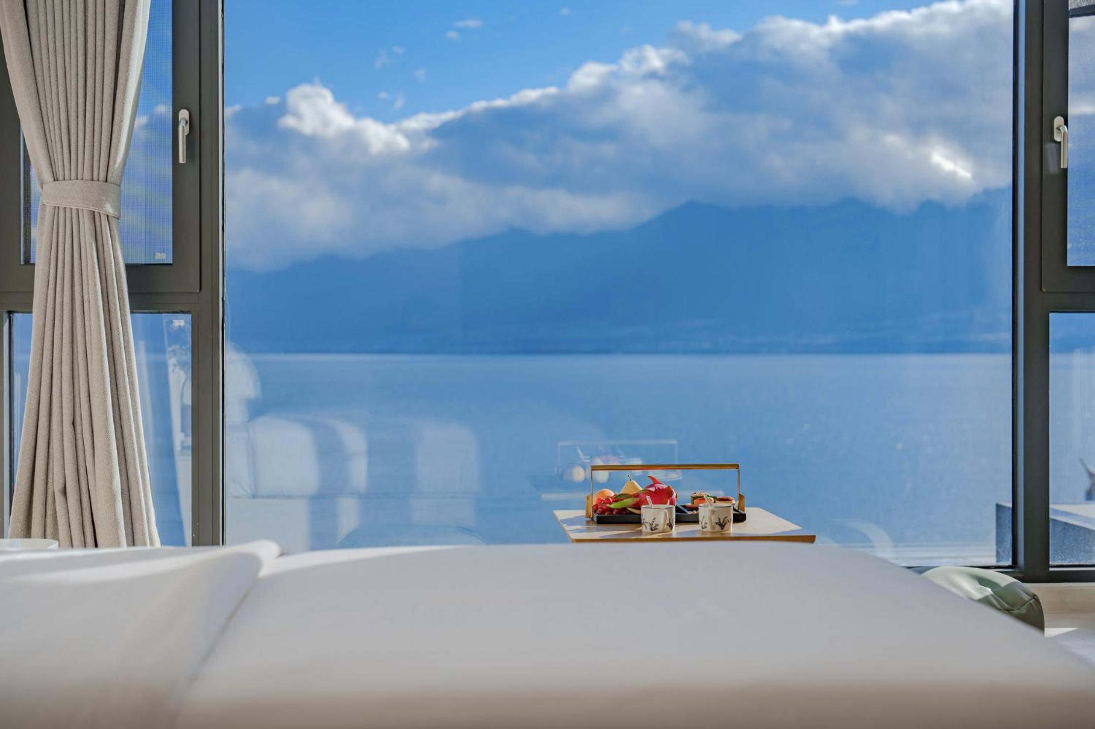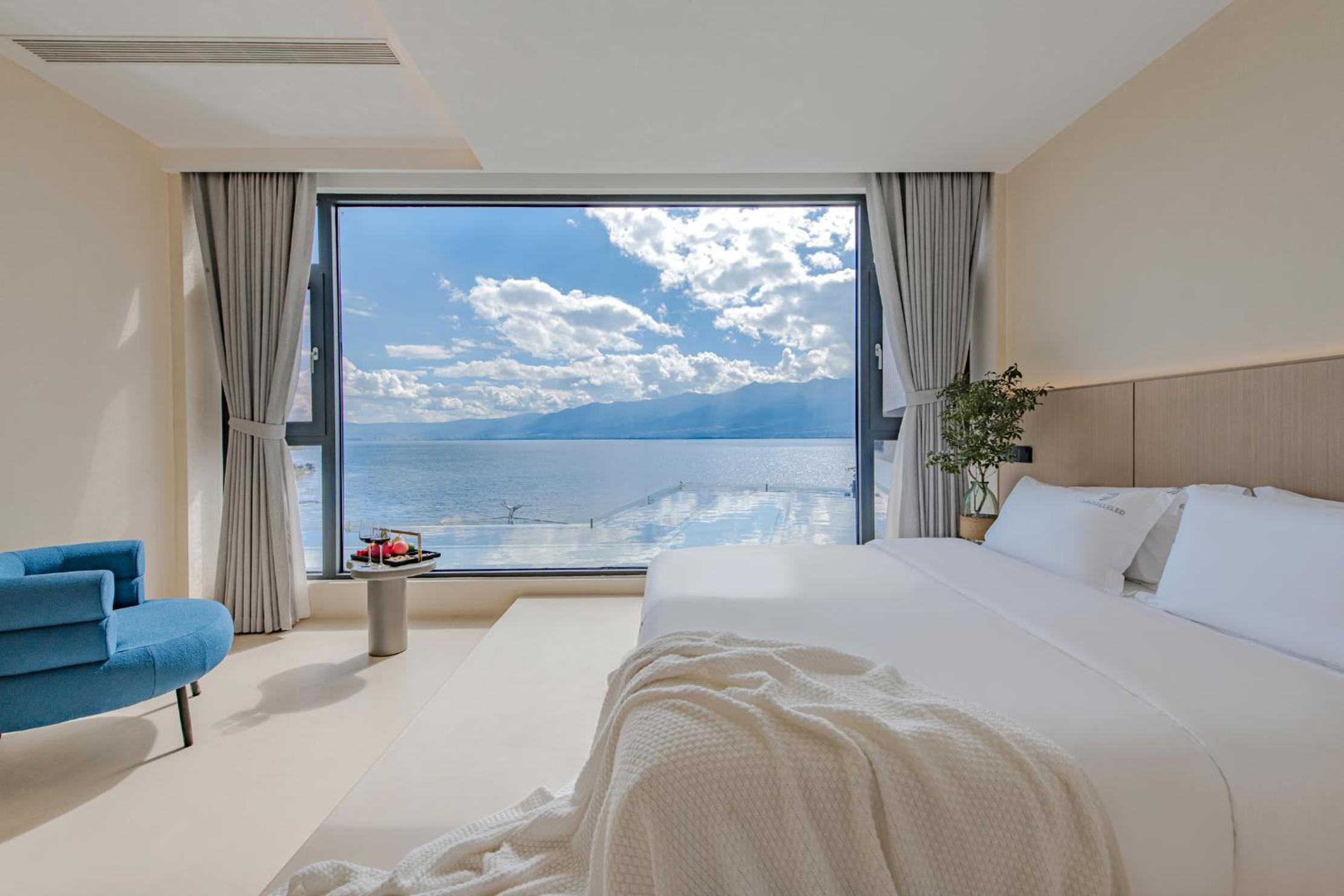 面对洱海,躺在床上就可以看见洱海和苍山,很美,最满意的是酒店的服务,工作人员态度很人情,我们自驾去的,车停下就有工作人员主动帮我们提行李并且办完入住后让我们先回房间休息然后把行李送进房间,早餐时间是8:30-11:00对我来说人性化,并且酒店还提供下午茶和晚安甜汤,会很贴心的主动问你是不是需要,并且你外出就餐或者不太远的打卡点酒店也提供接驳车服务,比较意外的是在我们出去玩经过大堂的时候工作人员主动送了一小袋小食品,说怕我们玩的路上渴了饿了,让我们需要时垫一下,就觉得很贴心。如果再来洱海还是愿意选择这家酒店。
