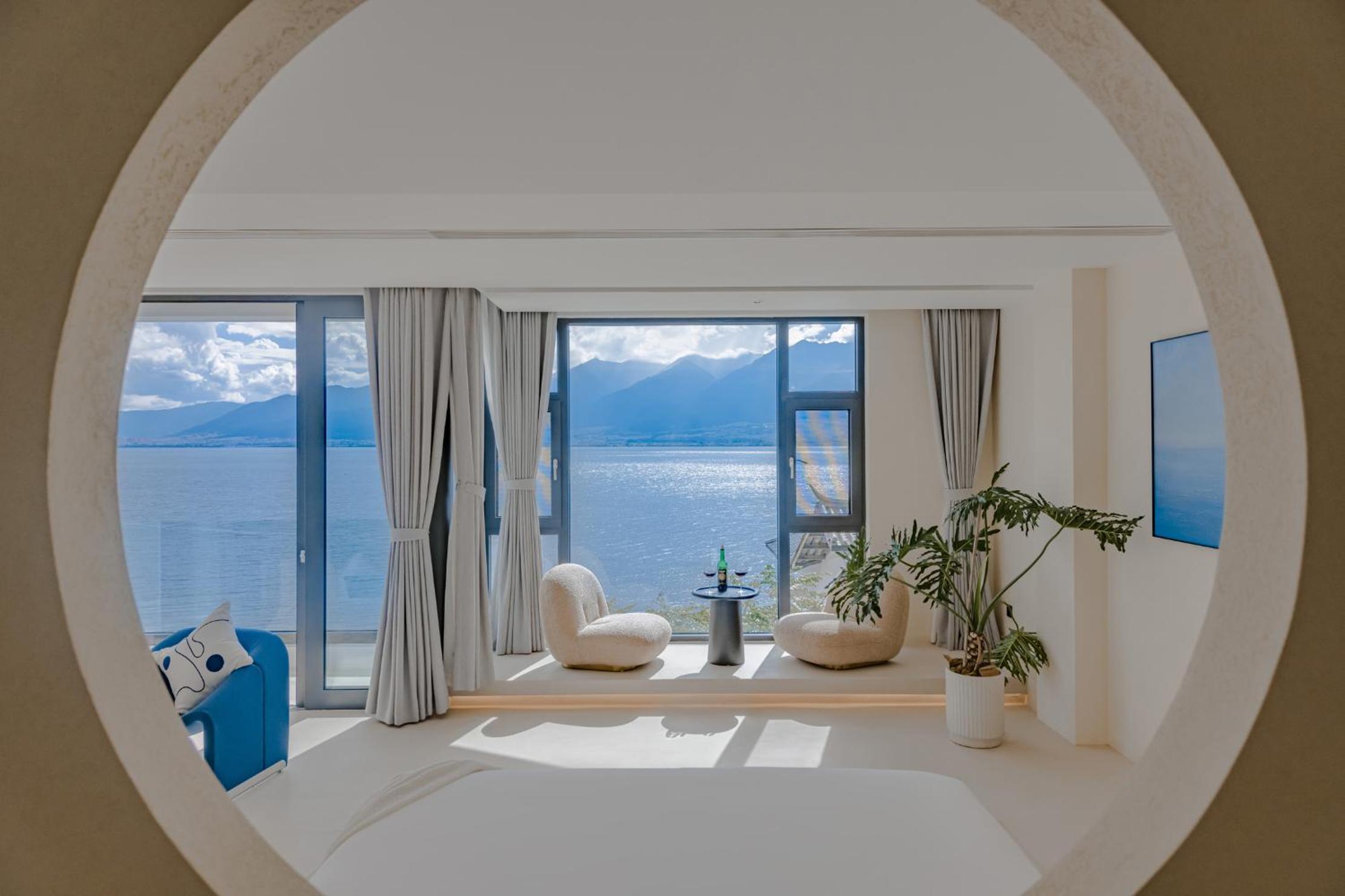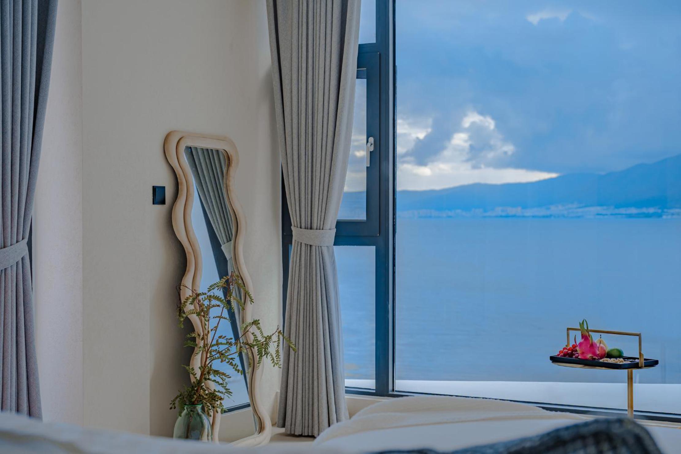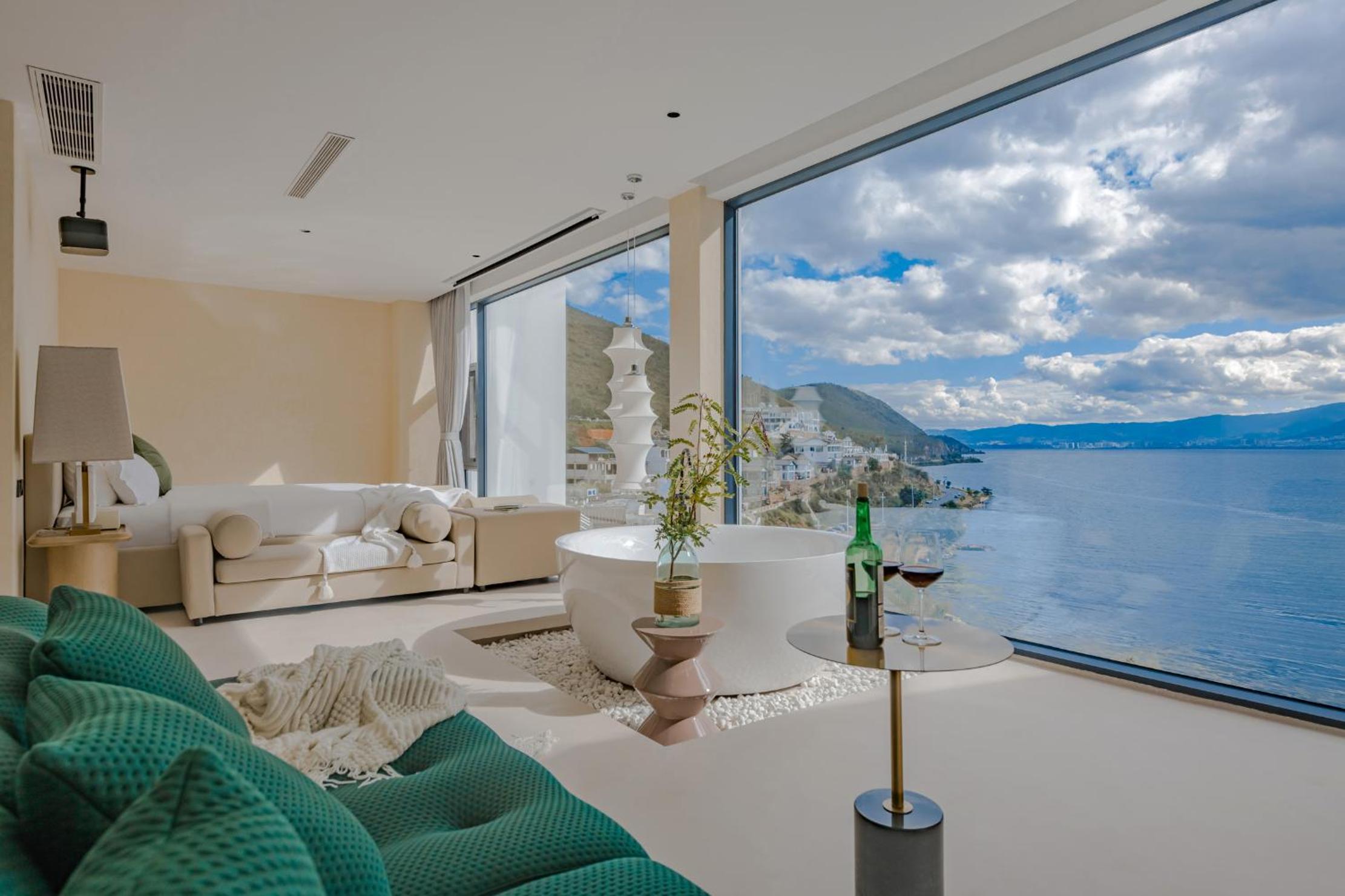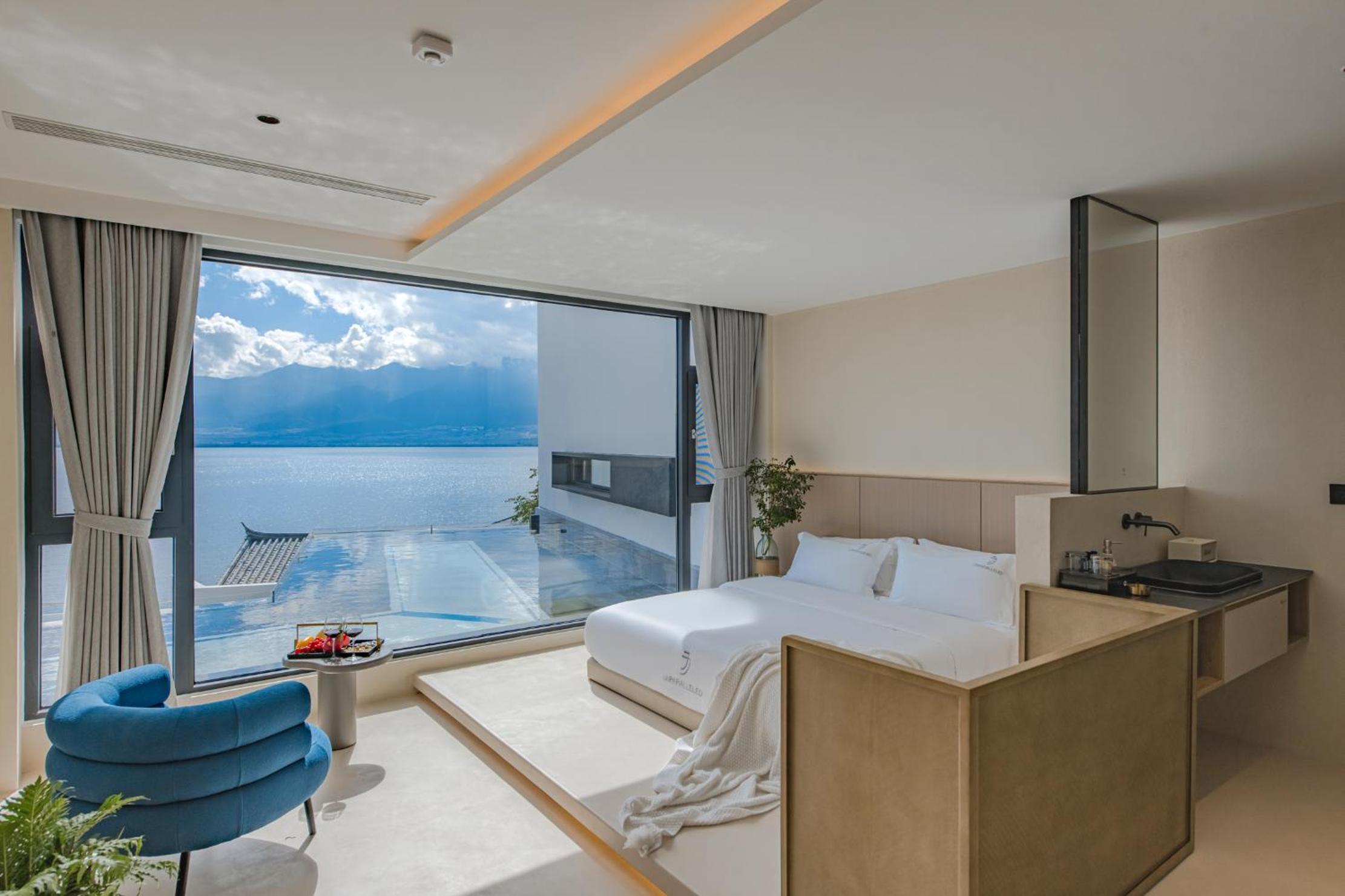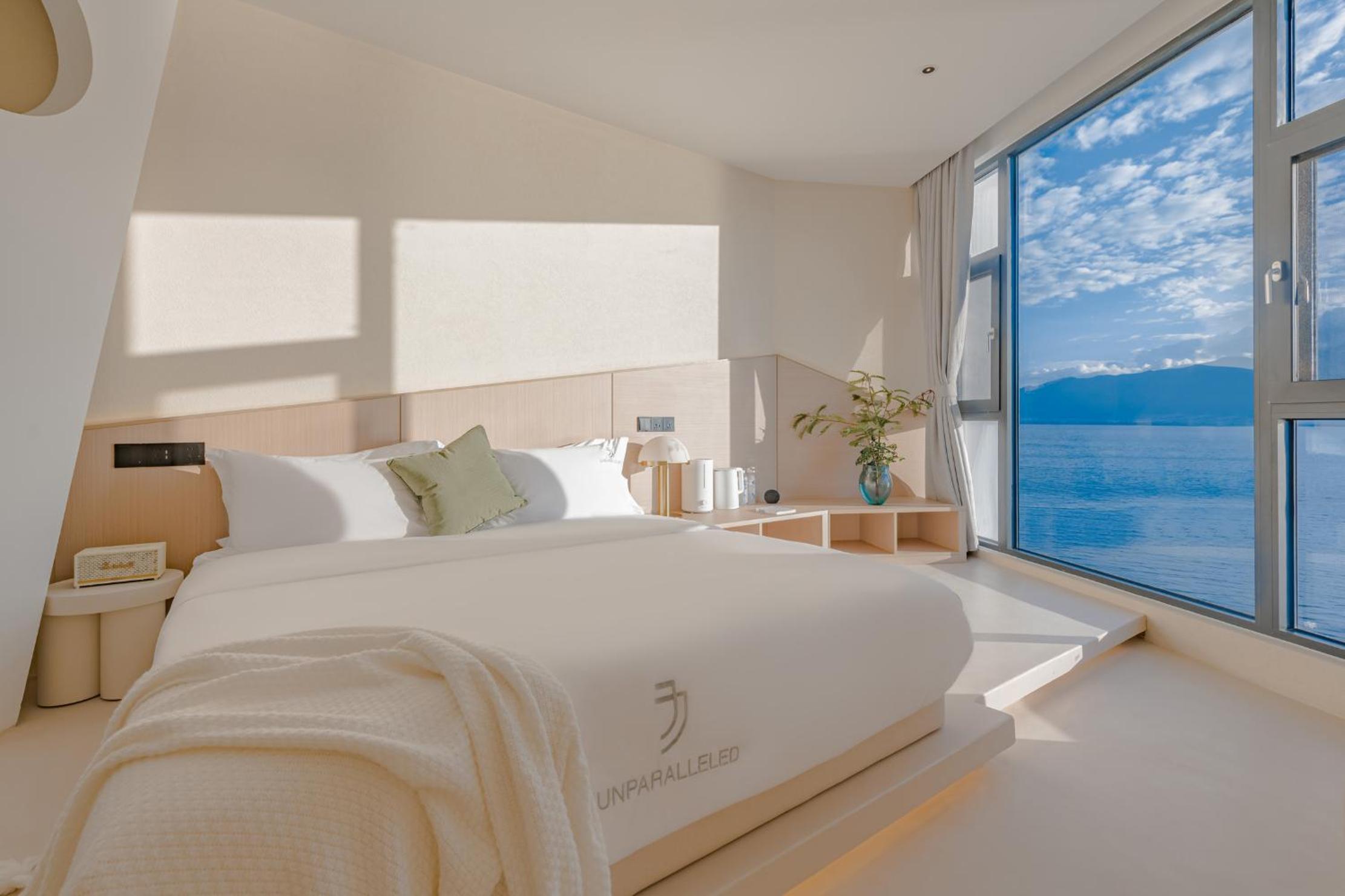 面对洱海,躺在床上就可以看见洱海和苍山,很美,最满意的是酒店的服务,工作人员态度很人情,我们自驾去的,车停下就有工作人员主动帮我们提行李并且办完入住后让我们先回房间休息然后把行李送进房间,早餐时间是8:30-11:00对我来说人性化,并且酒店还提供下午茶和晚安甜汤,会很贴心的主动问你是不是需要,并且你外出就餐或者不太远的打卡点酒店也提供接驳车服务,比较意外的是在我们出去玩经过大堂的时候工作人员主动送了一小袋小食品,说怕我们玩的路上渴了饿了,让我们需要时垫一下,就觉得很贴心。如果再来洱海还是愿意选择这家酒店。