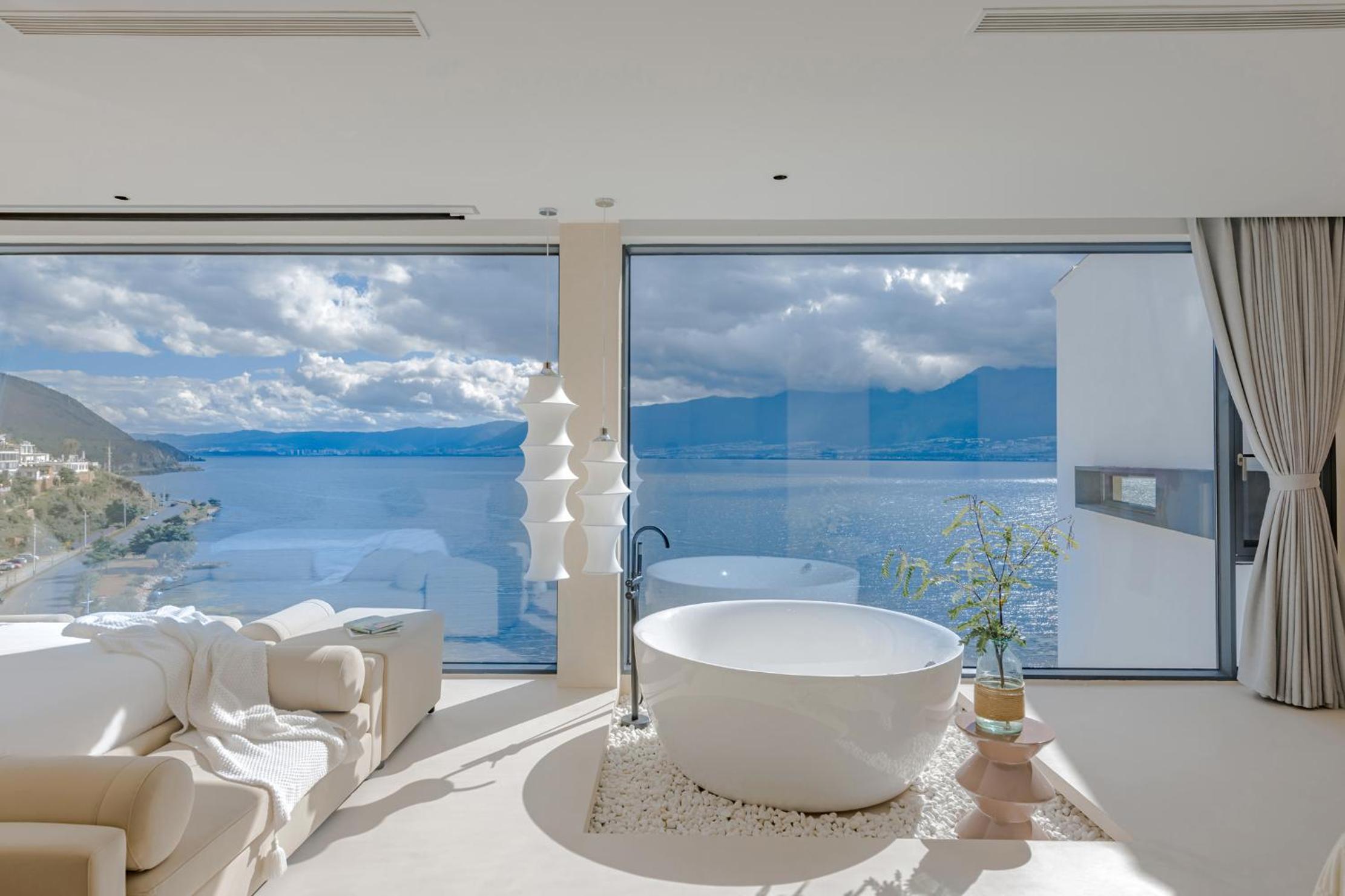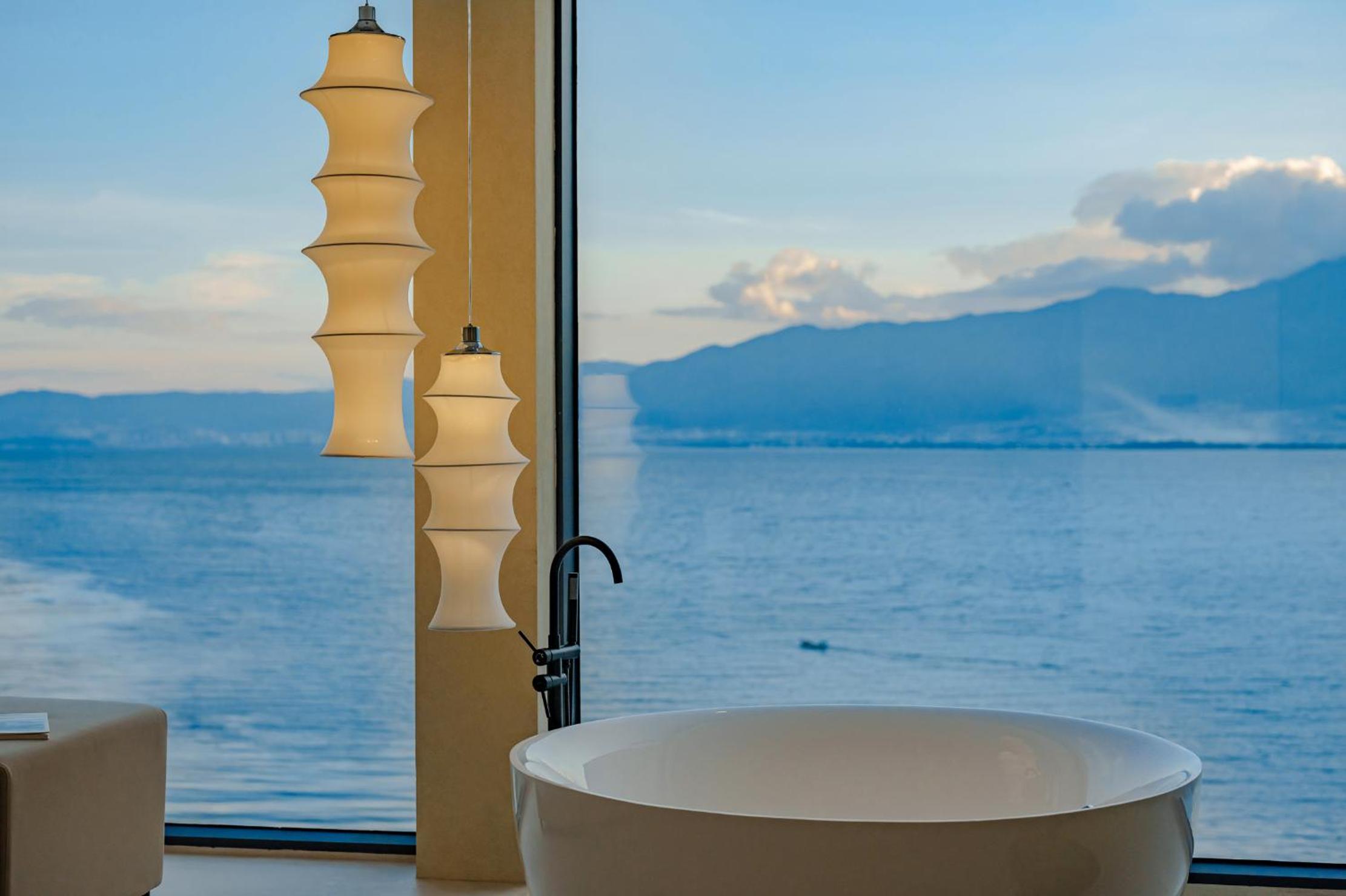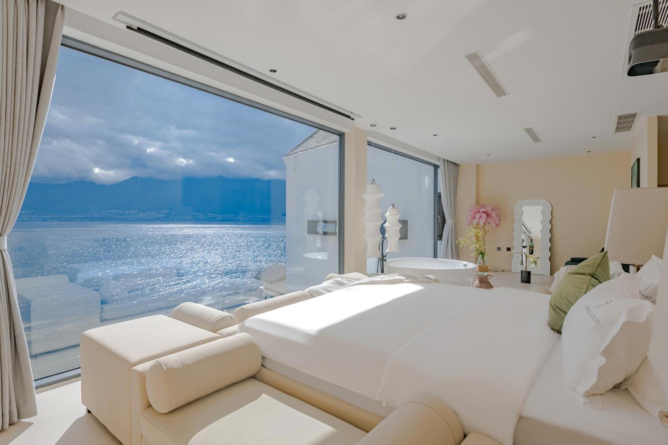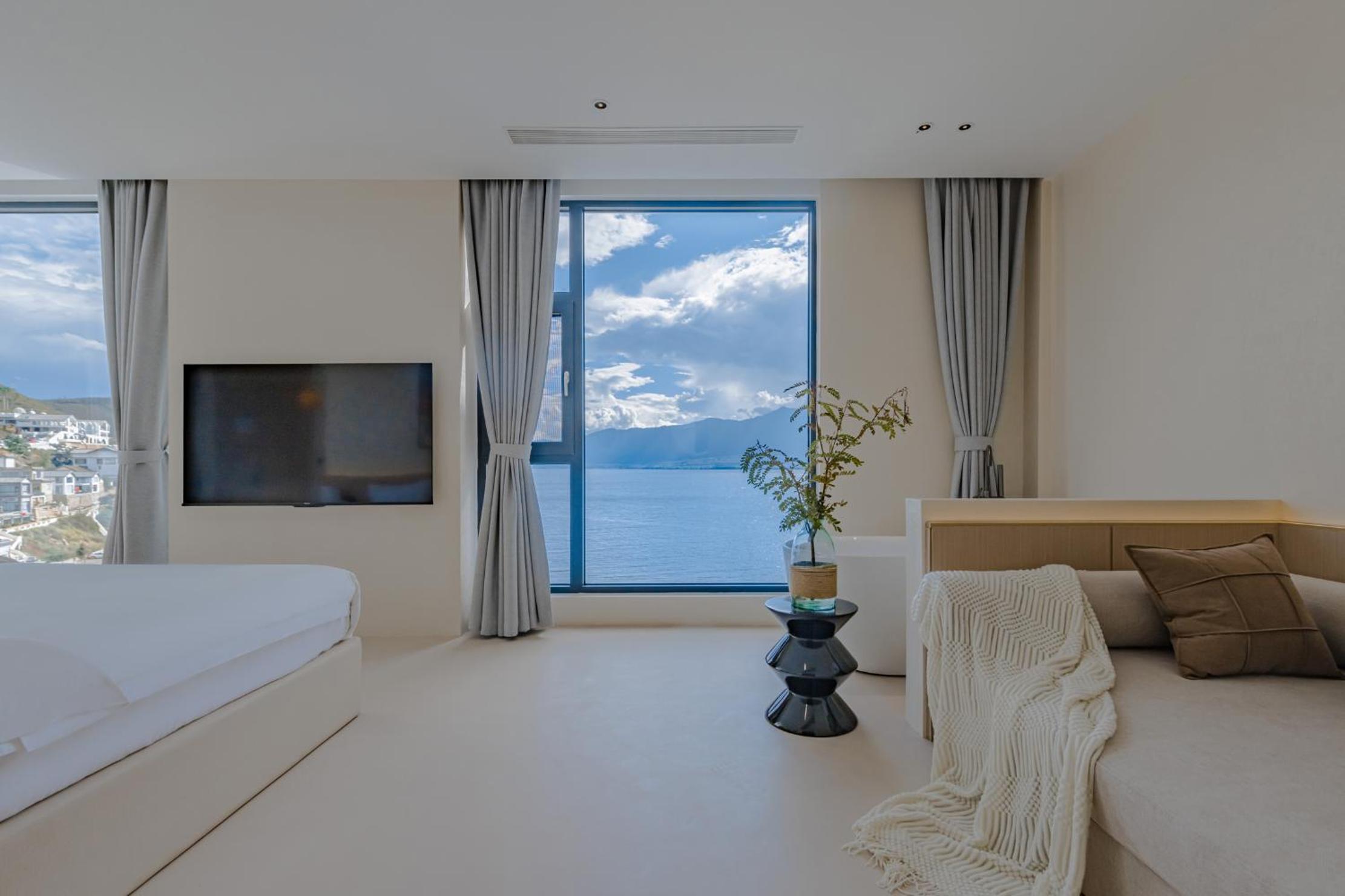 面对洱海,躺在床上就可以看见洱海和苍山,很美,最满意的是酒店的服务,工作人员态度很人情,我们自驾去的,车停下就有工作人员主动帮我们提行李并且办完入住后让我们先回房间休息然后把行李送进房间,早餐时间是8:30-11:00对我来说人性化,并且酒店还提供下午茶和晚安甜汤,会很贴心的主动问你是不是需要,并且你外出就餐或者不太远的打卡点酒店也提供接驳车服务,比较意外的是在我们出去玩经过大堂的时候工作人员主动送了一小袋小食品,说怕我们玩的路上渴了饿了,让我们需要时垫一下,就觉得很贴心。如果再来洱海还是愿意选择这家酒店。