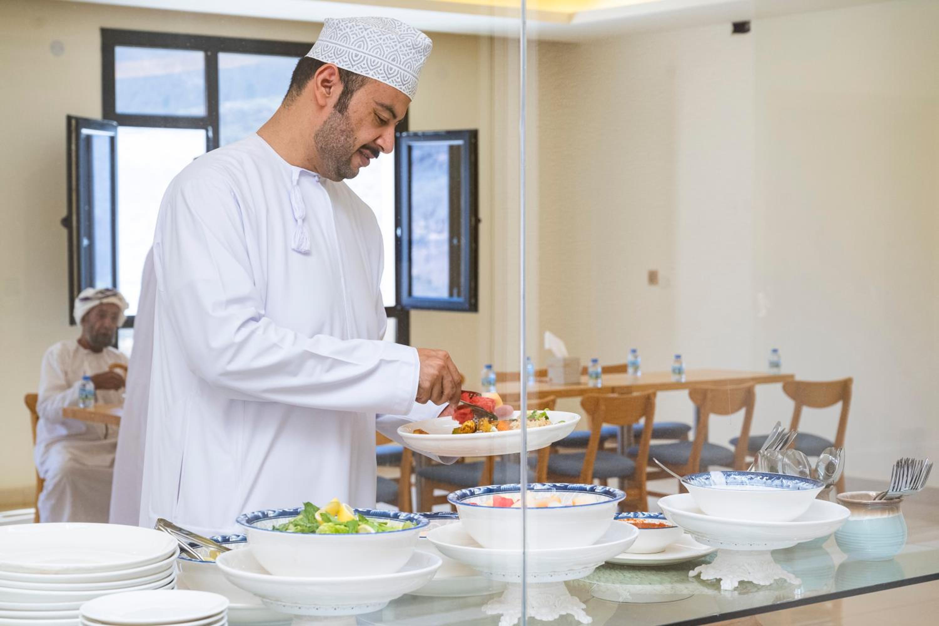 Vue imprenable sur le village, très agréable de se poser sur leur terrasse. La chambre était propre, confortable avec balcon et vue sur le village encore. Ils ont un petit café à côté de la terrasse de l’hôtel qui propose les meilleurs Iced coffees qu’on a pu boire à Oman ! Le personnel était très agréable. Ils proposent un restaurant le soir qui était très bon et très pratique car il n’y a pas de restaurant au village.