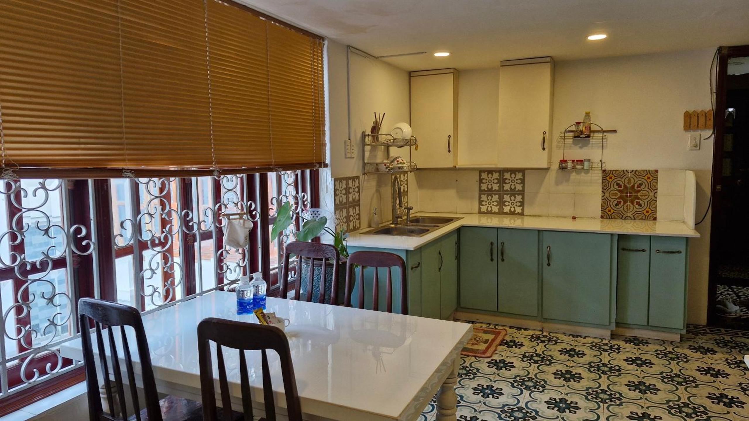 -Phòng bếp không có gia vị, thiết bị cần thiết phải hỏi xin ( nhưng cũng phải chờ người giúp việc tới mới có) hoặc được hướng dẫn tự sang phòng khác lấy.