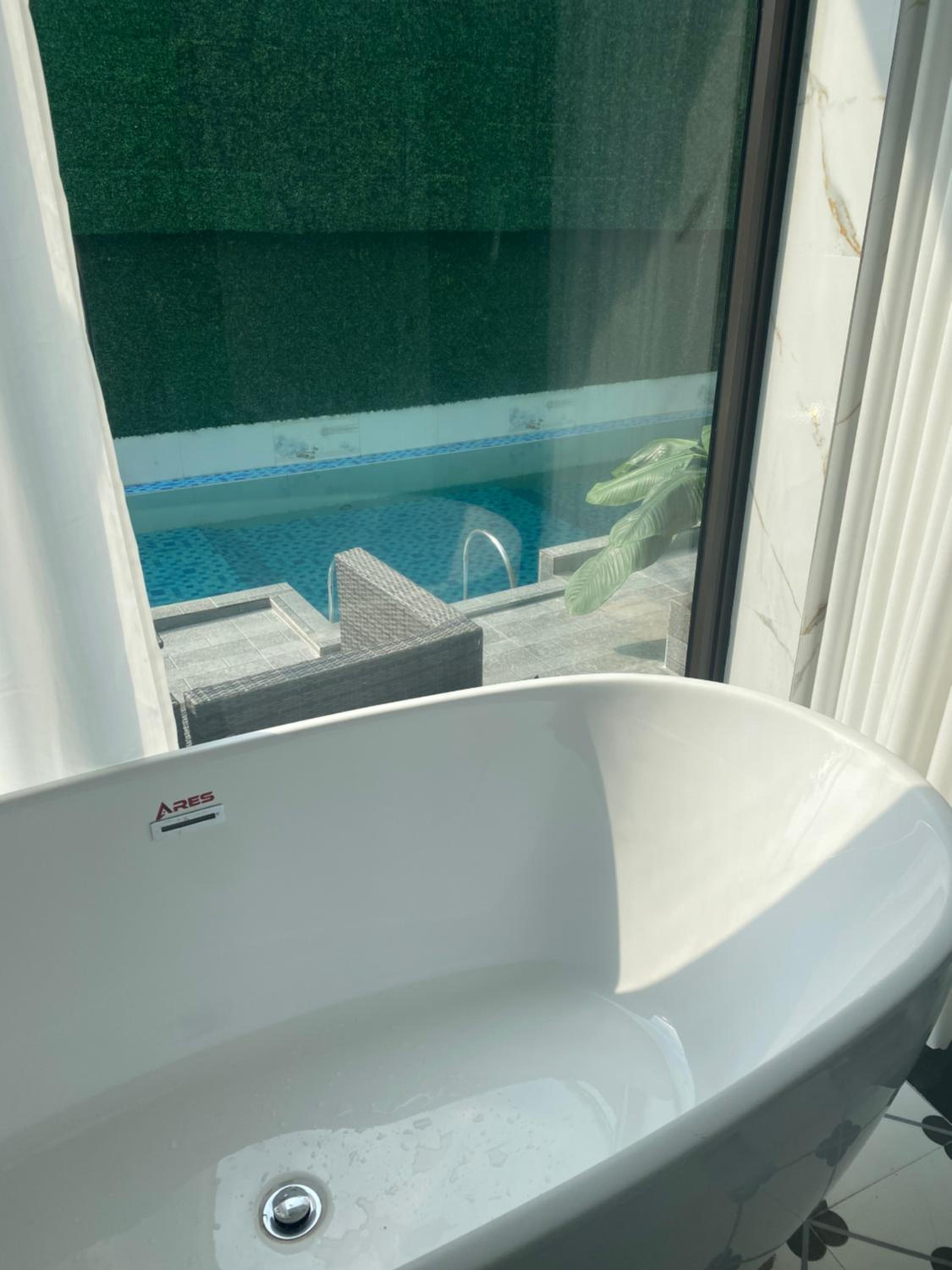 Clean, new, beautiful and the host was exceptional. We booked the room with pool view and it was perfect. Big comfy bed, big shower room and strong A/C. When we left the host even sent us off with a few more waters which we were very thank for since we were pretty dehydrated from being on the motorcycle in the heat.