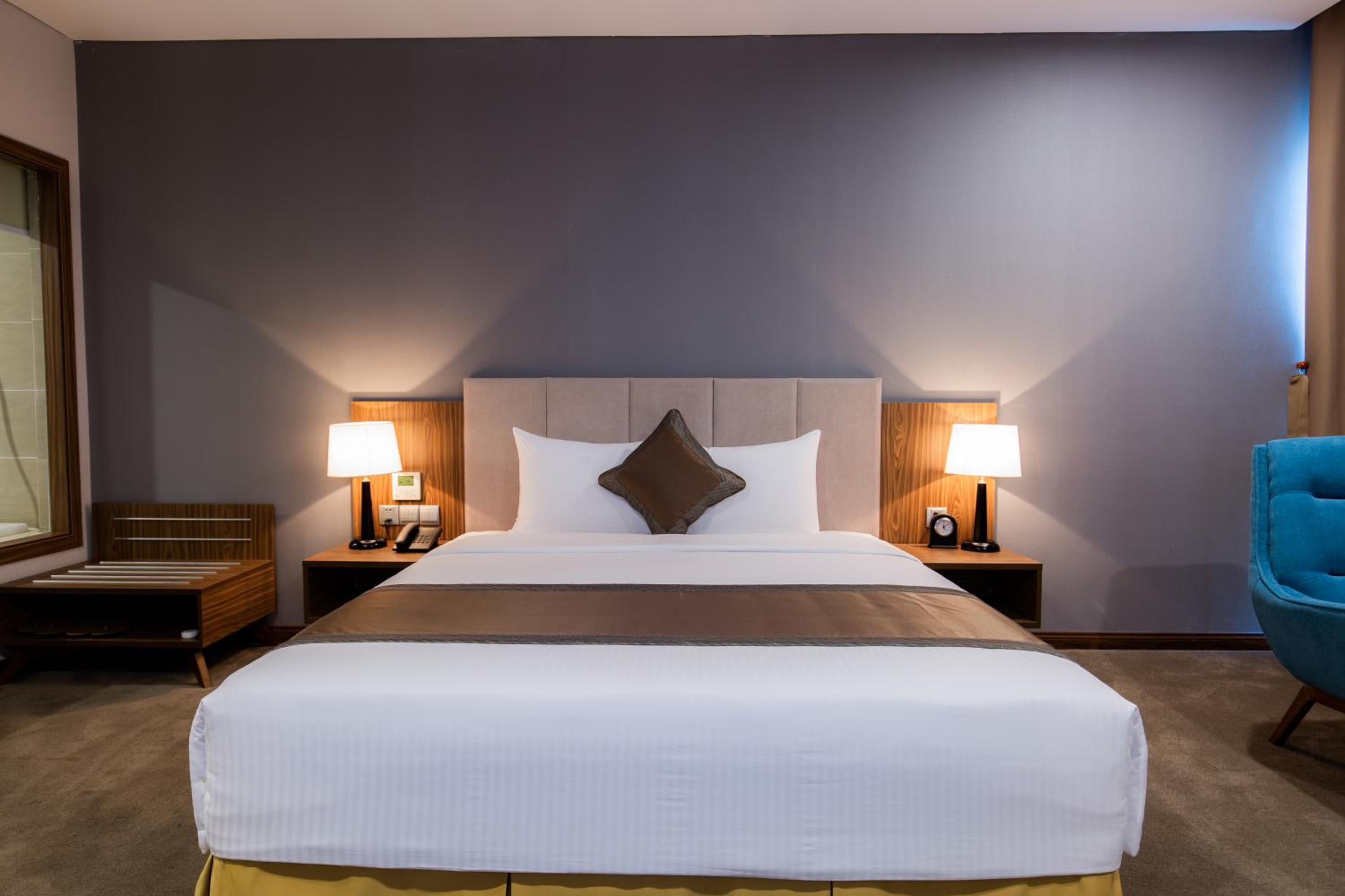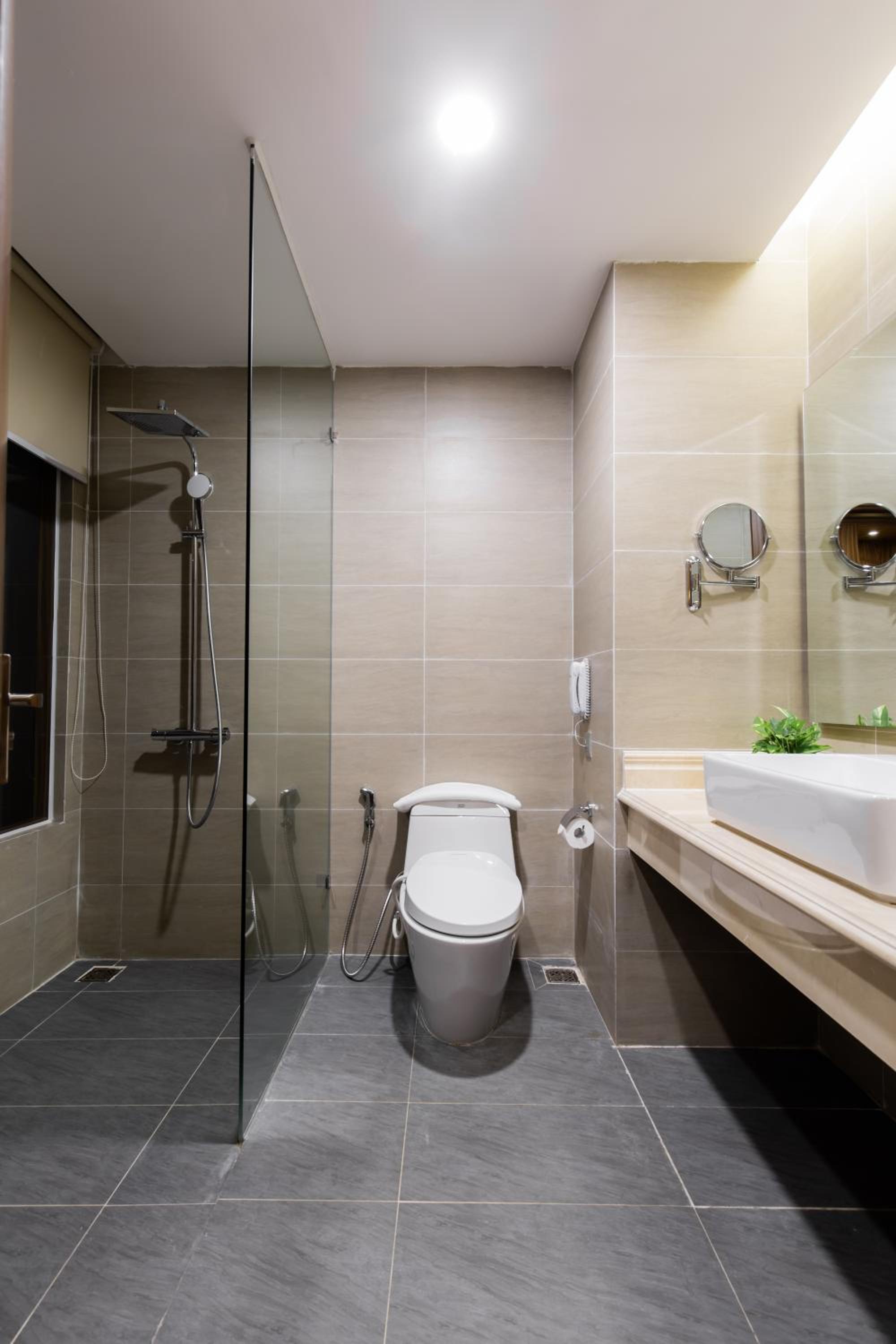 Phòng rộng, sạch sẽ nhưng có 1 toalet có mùi, đồ ăn sáng đa dạng, phong phú, phòng ăn rộng rãi