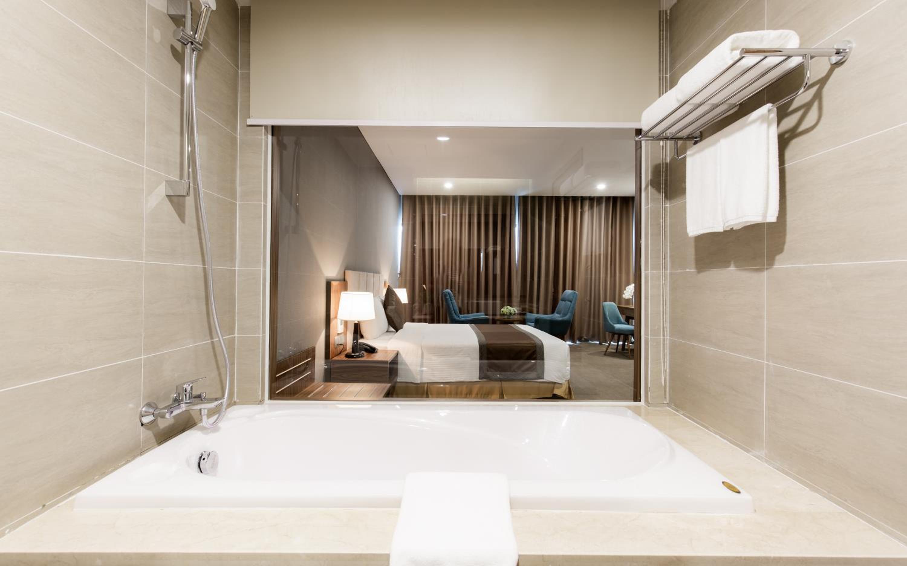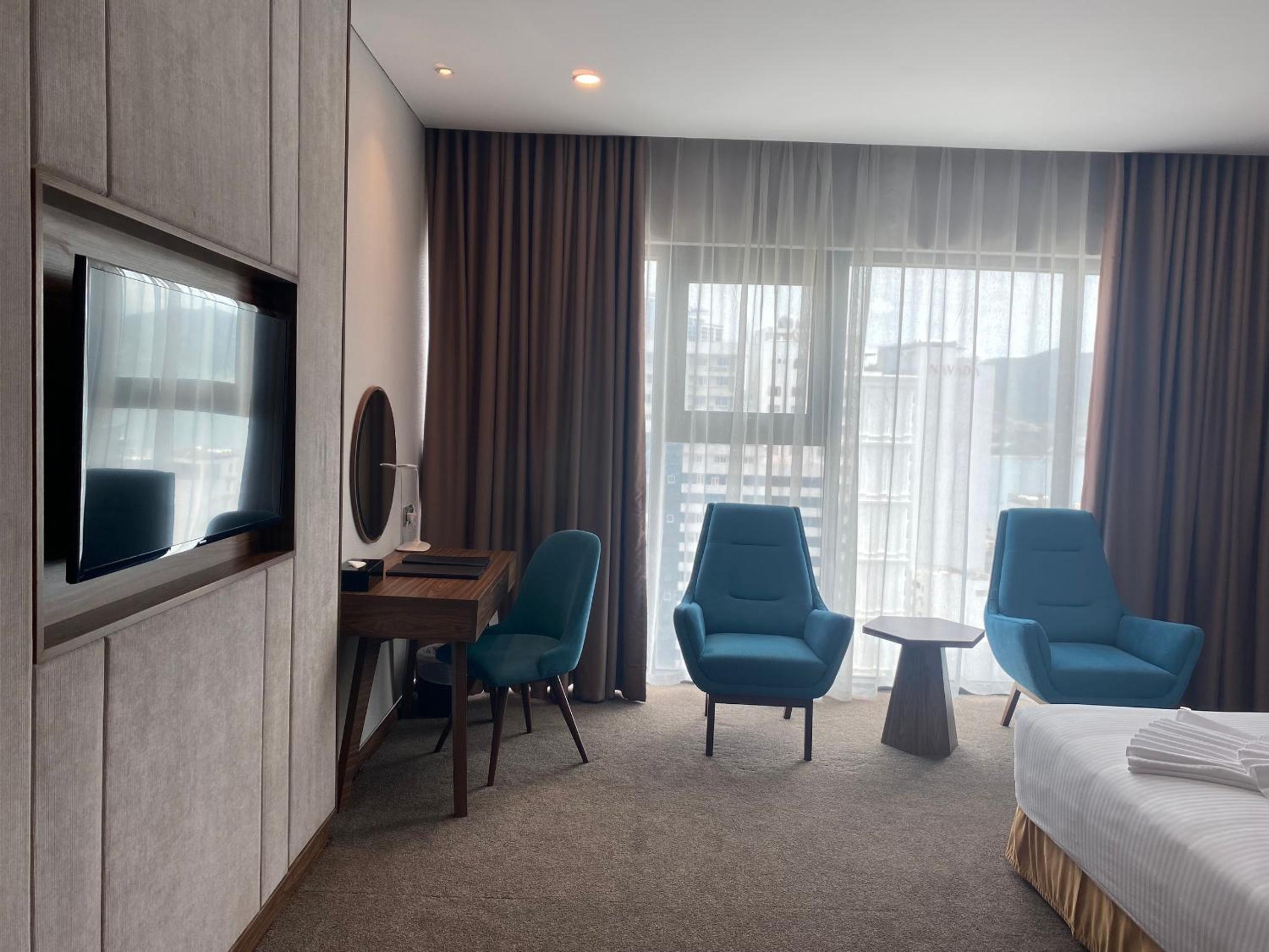 We stayed 8 nights at Muong Thanh Luxury and luckily got an upgrade for a discounted price. The Executive Suite on the 30th floor graced us with an wonderful view of Nha Trang Beach and mountains. The room is spacious and the furnitures and amentities are of great quality. We especially loved the jacuzzi tub! The hotel itself has a lot to offer: swimming pool, gym, karaoke, bar, massage etc. The breakfast buffet has a wide variety of vietnamese and european dishes. All the restaurant and reception staff are professional and provided the best service - always very helpful and friendly. Thank you Muong Thanh for a great time!