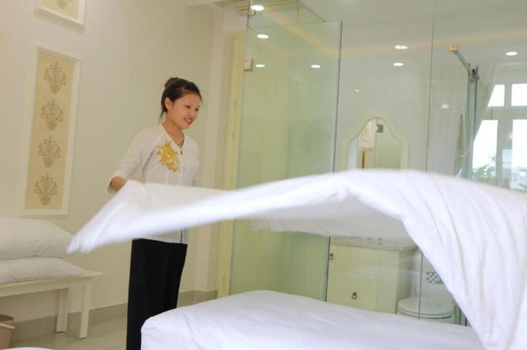 This is only an option if you don't have anything else to rent. The cleaning lady was exceptionally rude. She only cleaned after we put the trash outside. There was constant trouble closing and opening the door. The toilet seat fell off. And honestly, something strange was happening in the room across the street. Here, for a change, the lady was constantly cleaning. There were strange people hanging around. The Vietnamese are incredibly nice people, so I don't think we should support someone who isn't.