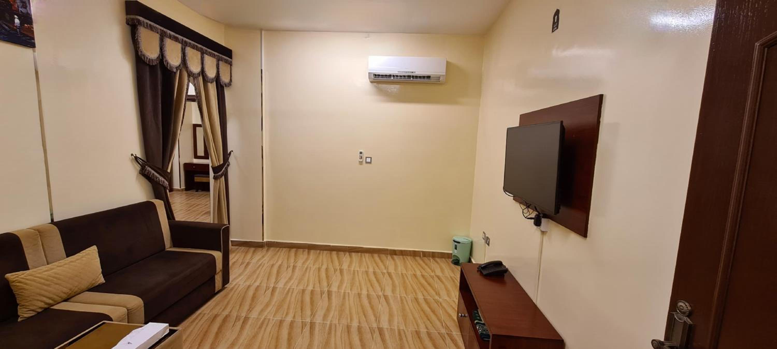الارضيات بدون فرش والكنب يحتاج الى تبديل ولاكنه ينفع لمن يرغب للمبيت فقط