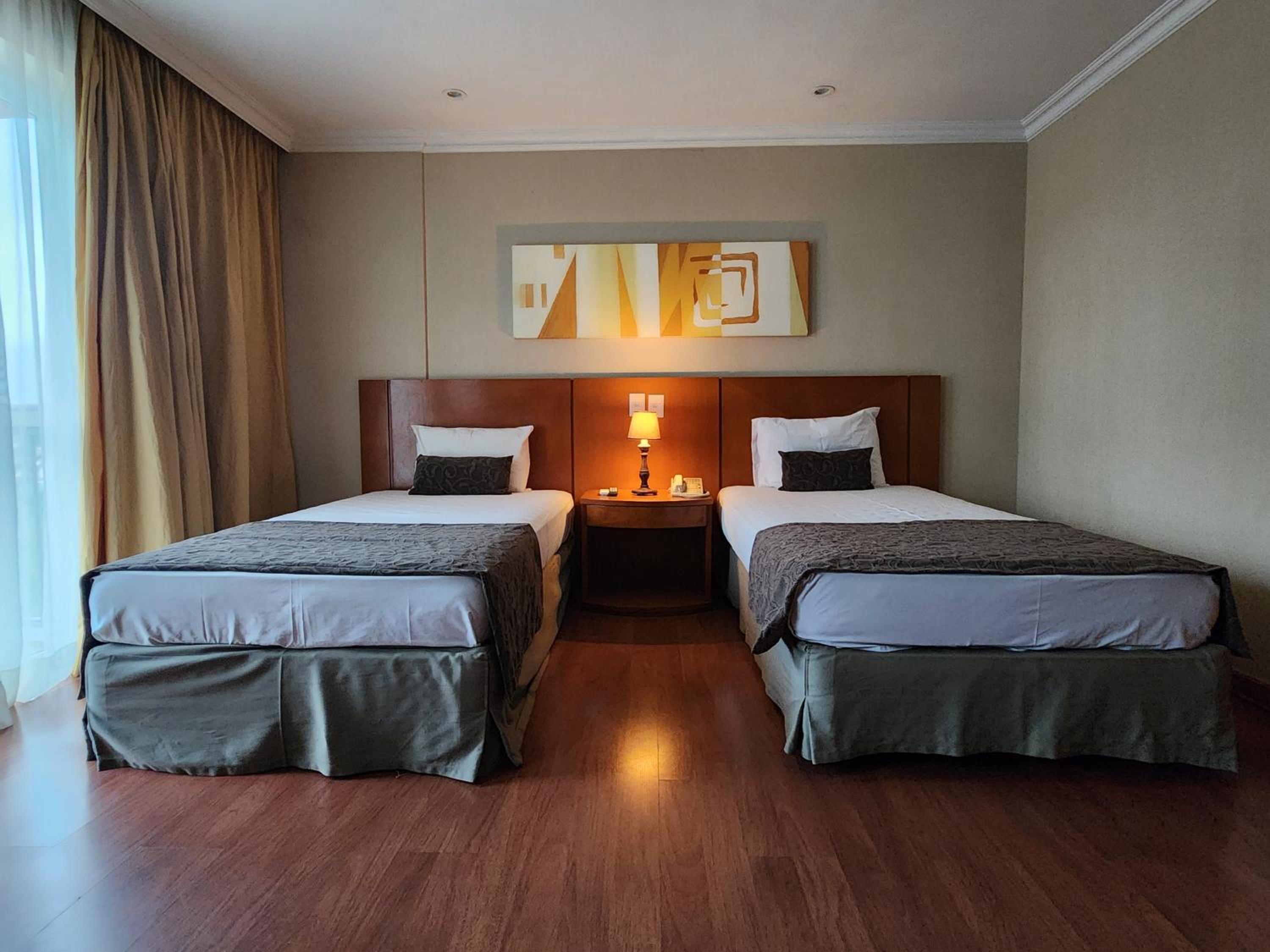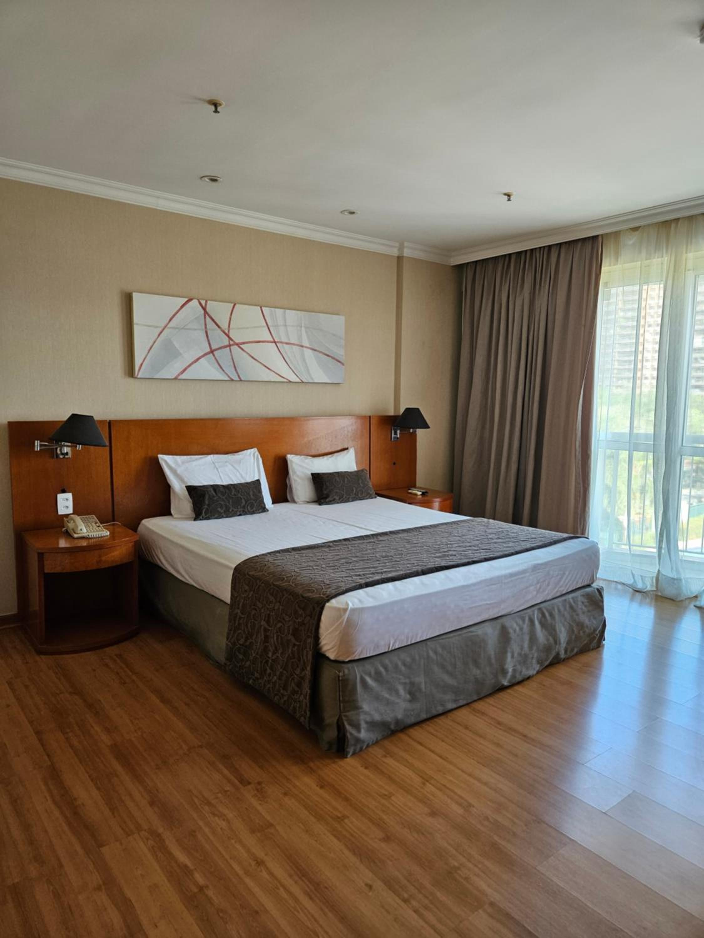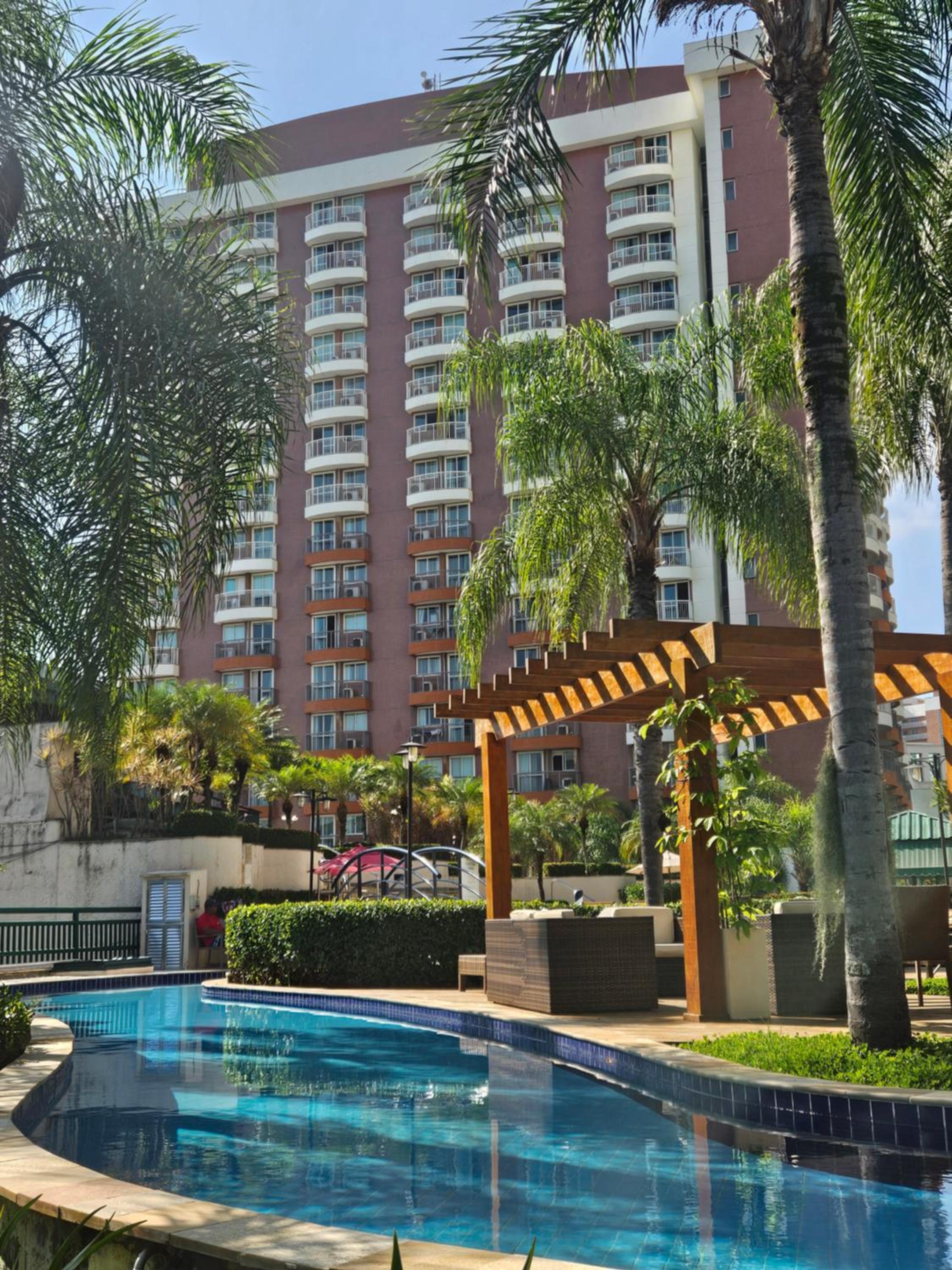 Quarto amplo, hotel bem localizado, bom serviço de transferência, área de piscina agradável.