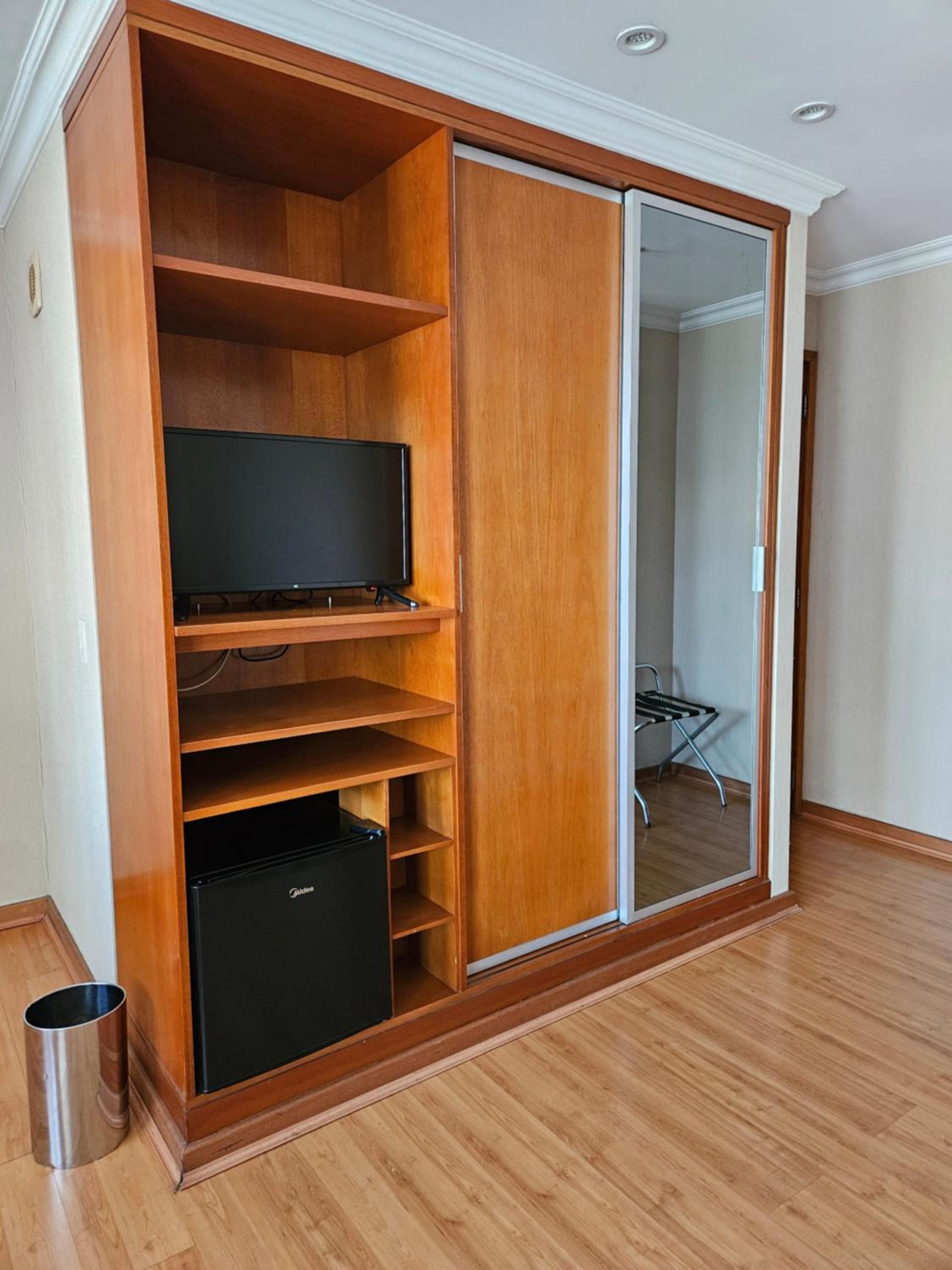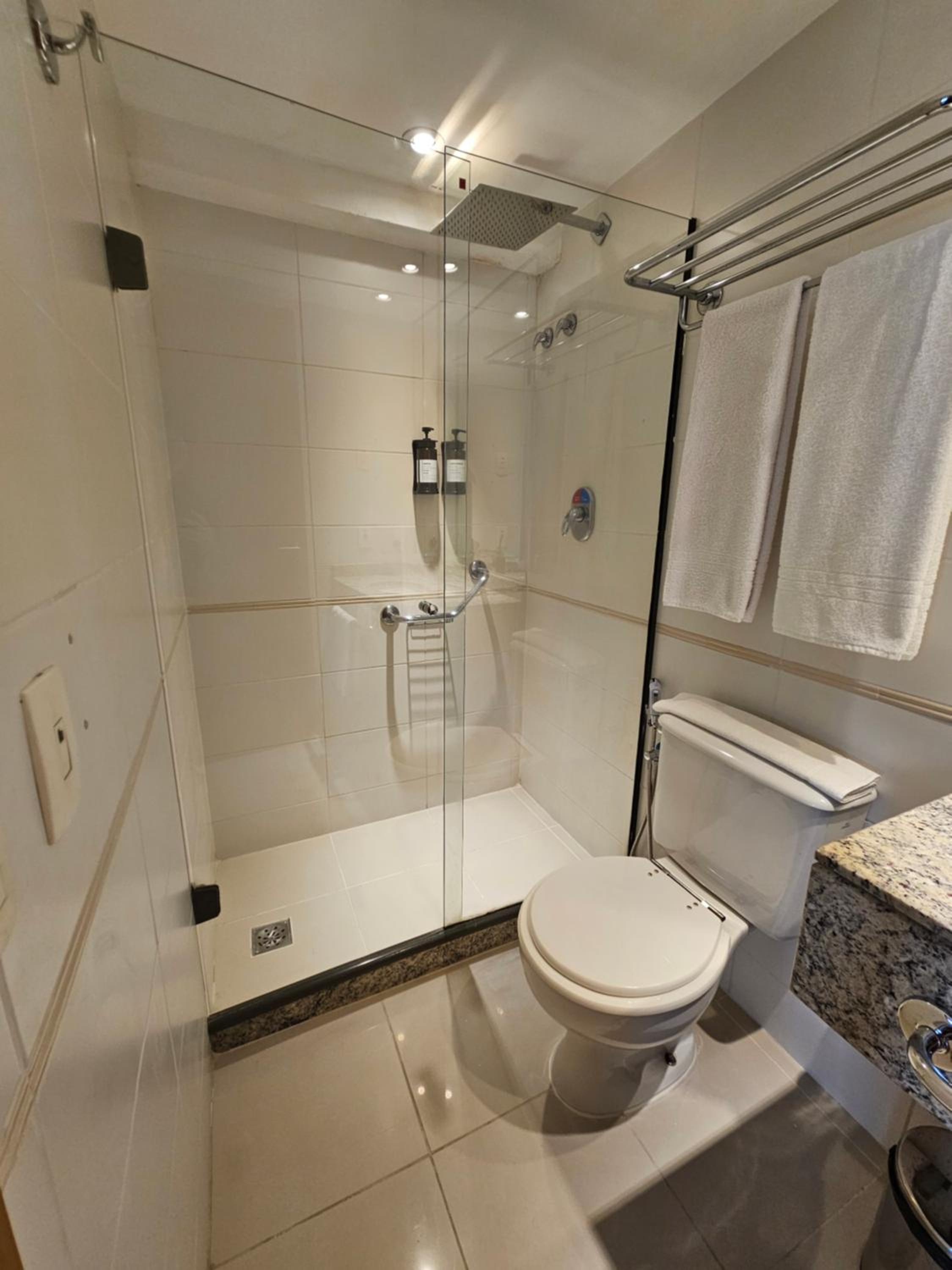 Box de banho muito pequeno. Sem ventilação e o aparelho de centrifugação para ventilar sem funcionar. TV sem internet e muito pequena.