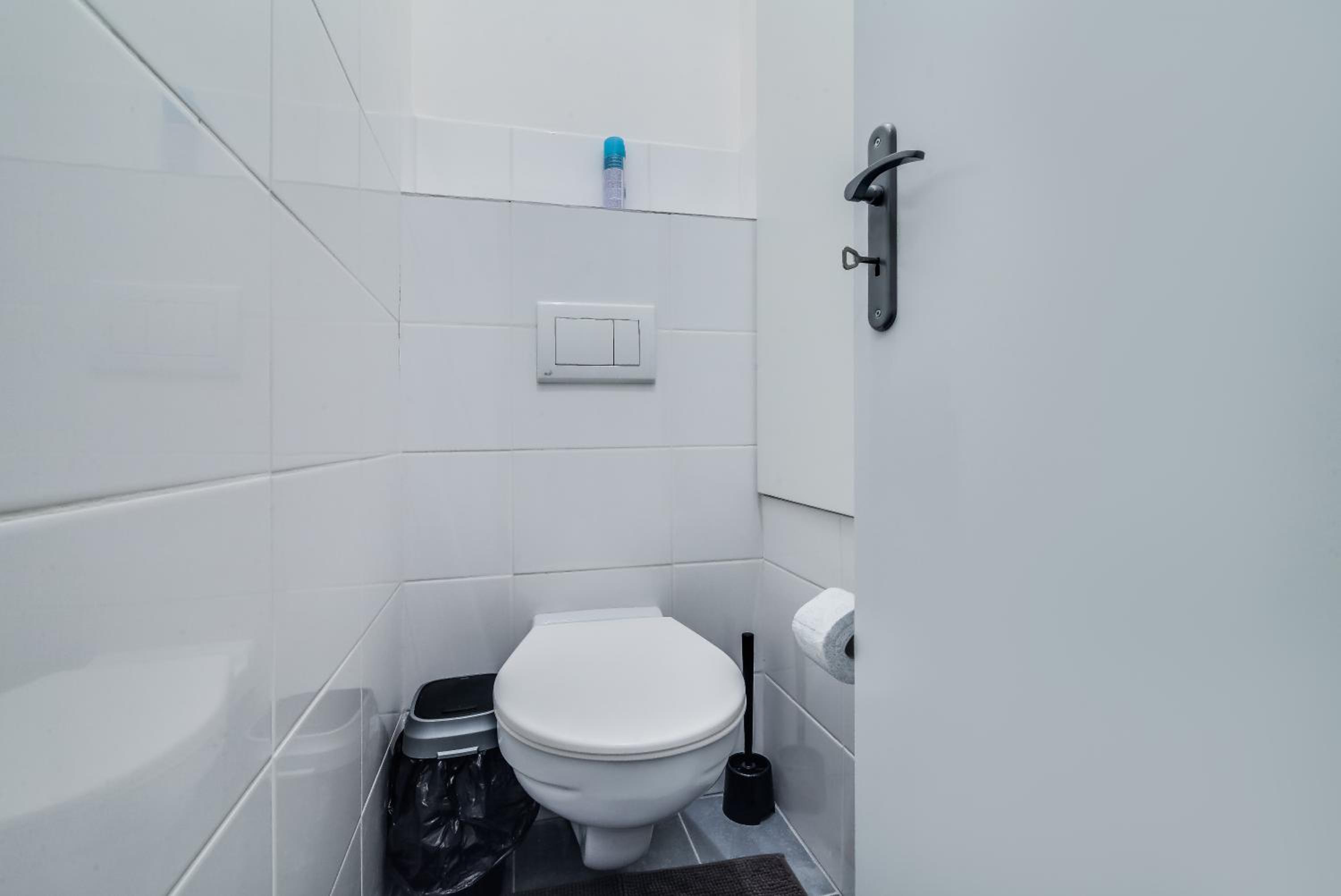 Le sol des parties communes n’était clairement pas nettoyé avant qu’on arrive. Il y avait très régulièrement une odeur de cigarette à la fenêtre, même si on donne intérieur cour. Il n’y avait pas de torchon pour essuyer la vaisselle (qui se fait dans l’unique lavabo dans la salle de bain).