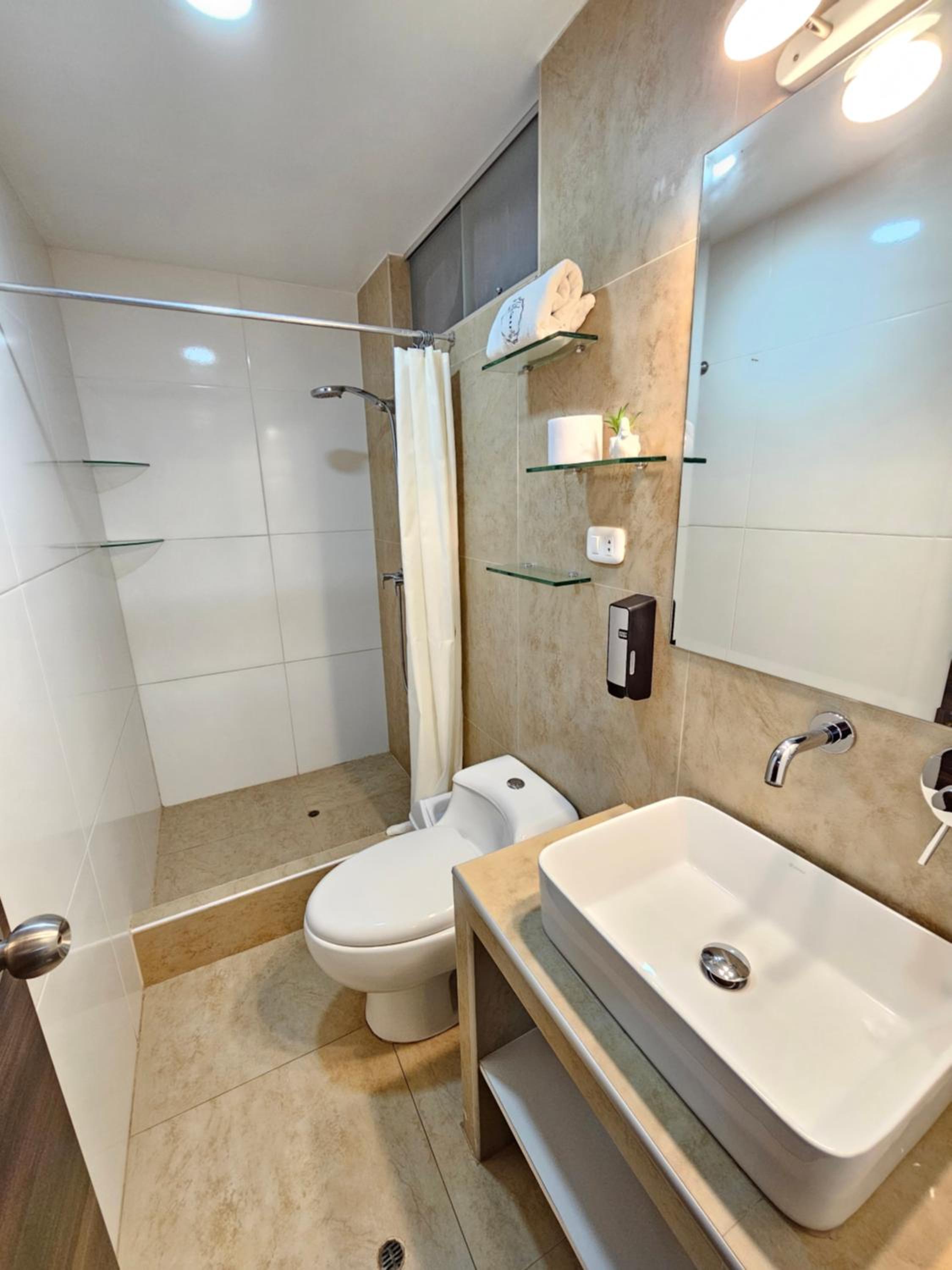 -No hay jabón de manos propiamente, te dicen que utilices el que está en el dispenser de la ducha (incómodo)