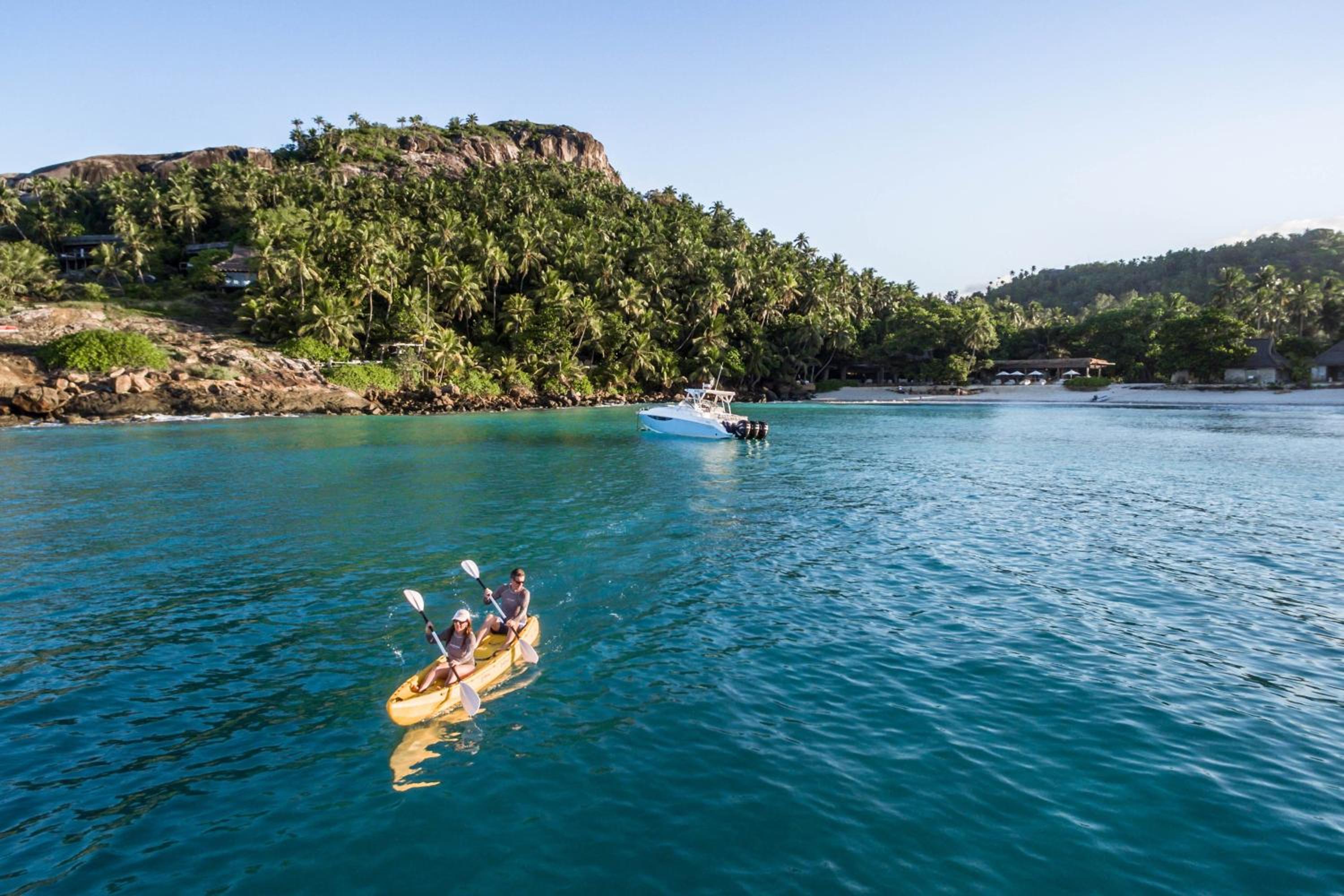Relaxation and Activities: Indulge in rejuvenating spa treatments at La Vie by Golden Hands, explore the granite boulders and ocean views, or partake in various complimentary activities like scuba diving, snorkeling, and yoga classes.