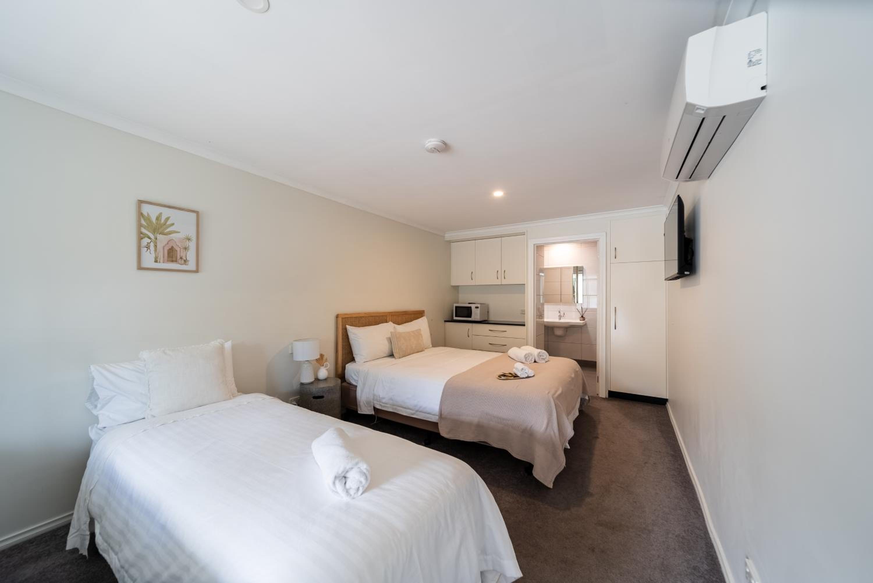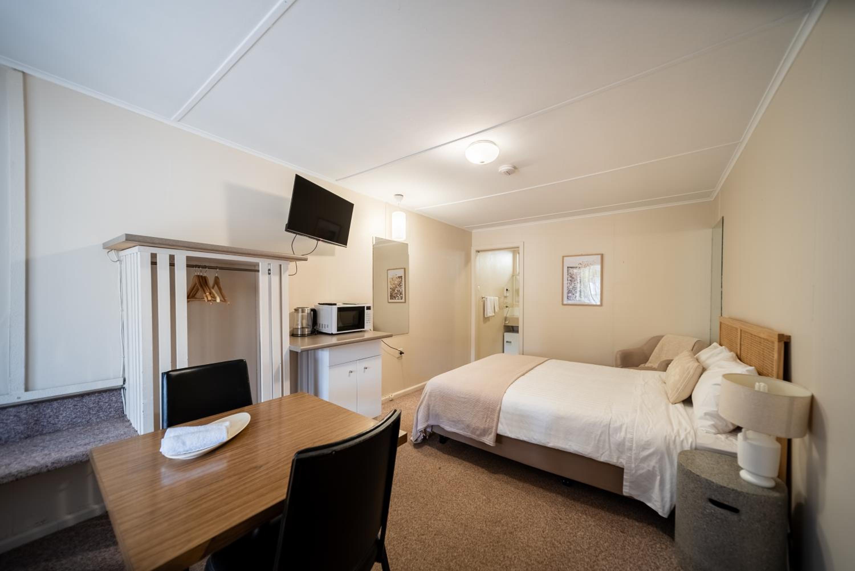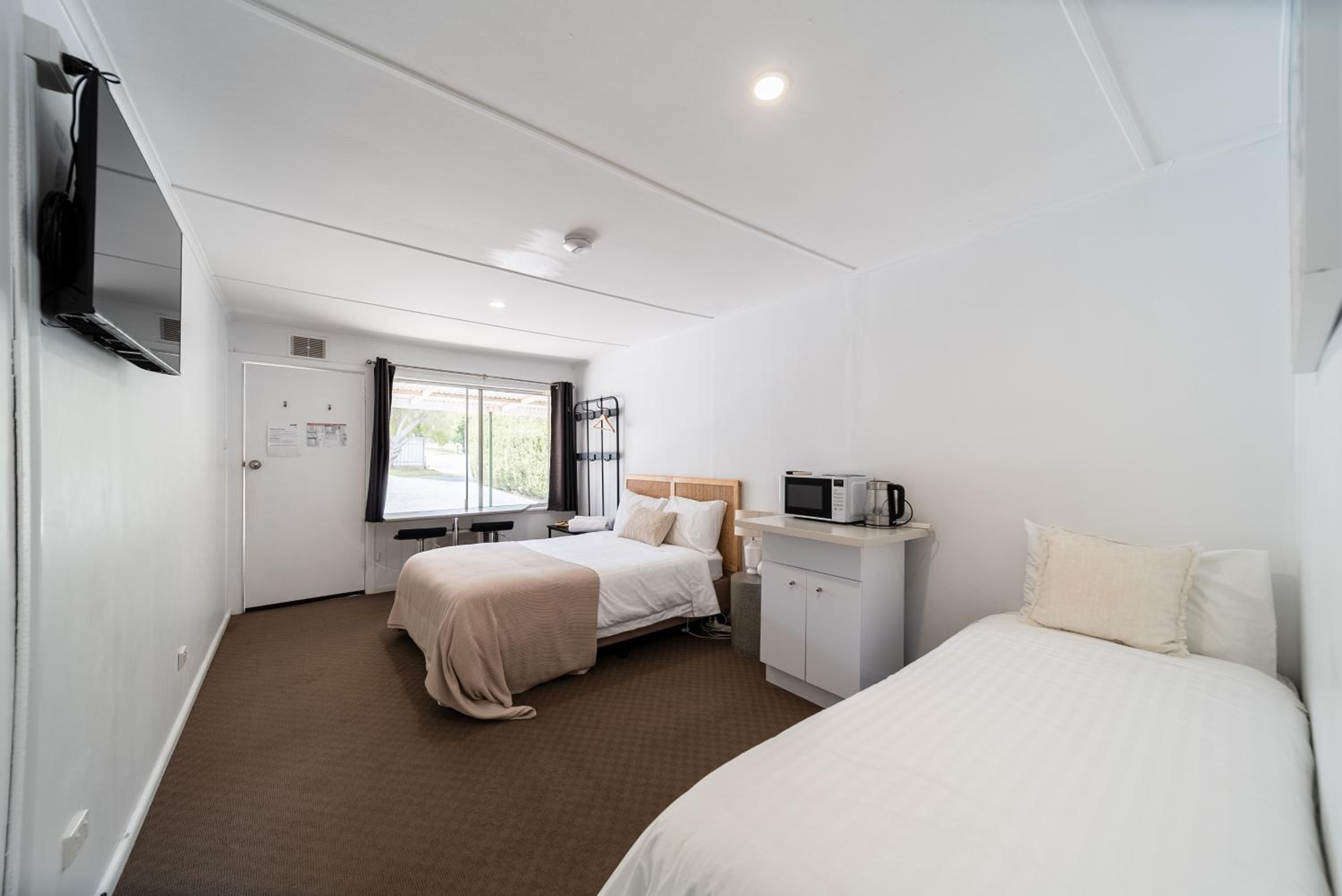 The motel really needs renovating. The outside particularly is very unkempt, with no visible effort made to keep it clean and tidy. We recognise Tallangatta is a bit off the beaten track and Renos are expensive, but some of the room could do with a serious makeover. They are very tired, especially the bathrooms. A simple and inexpensive detail would be new hairdryers. The current ones are barely useable. The fridge is on the small side but ok for a night.