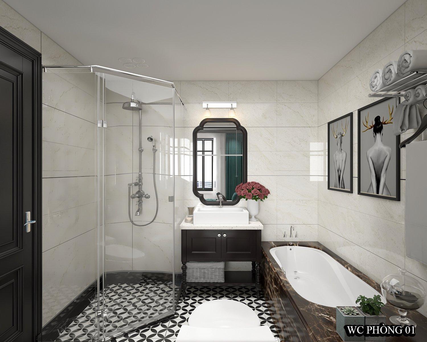 Phòng tắm không có móc treo quần áo. Tắm nước chảy tràn khắp phòng tắm mặc dù đóng kín cửa.