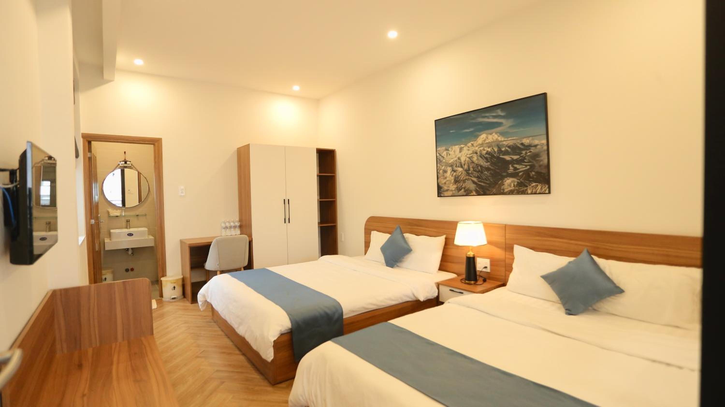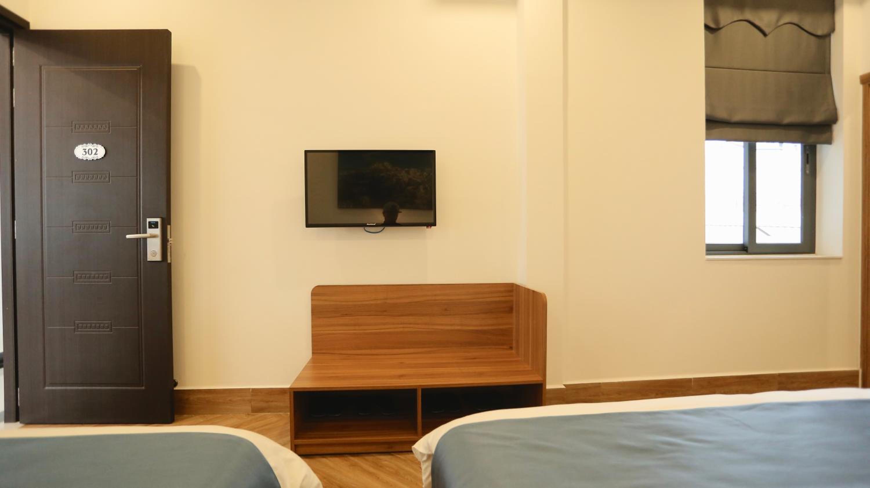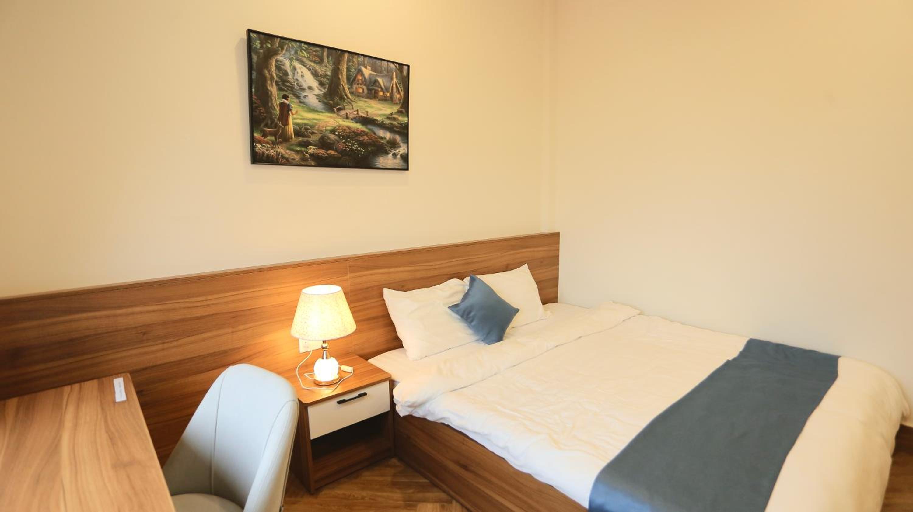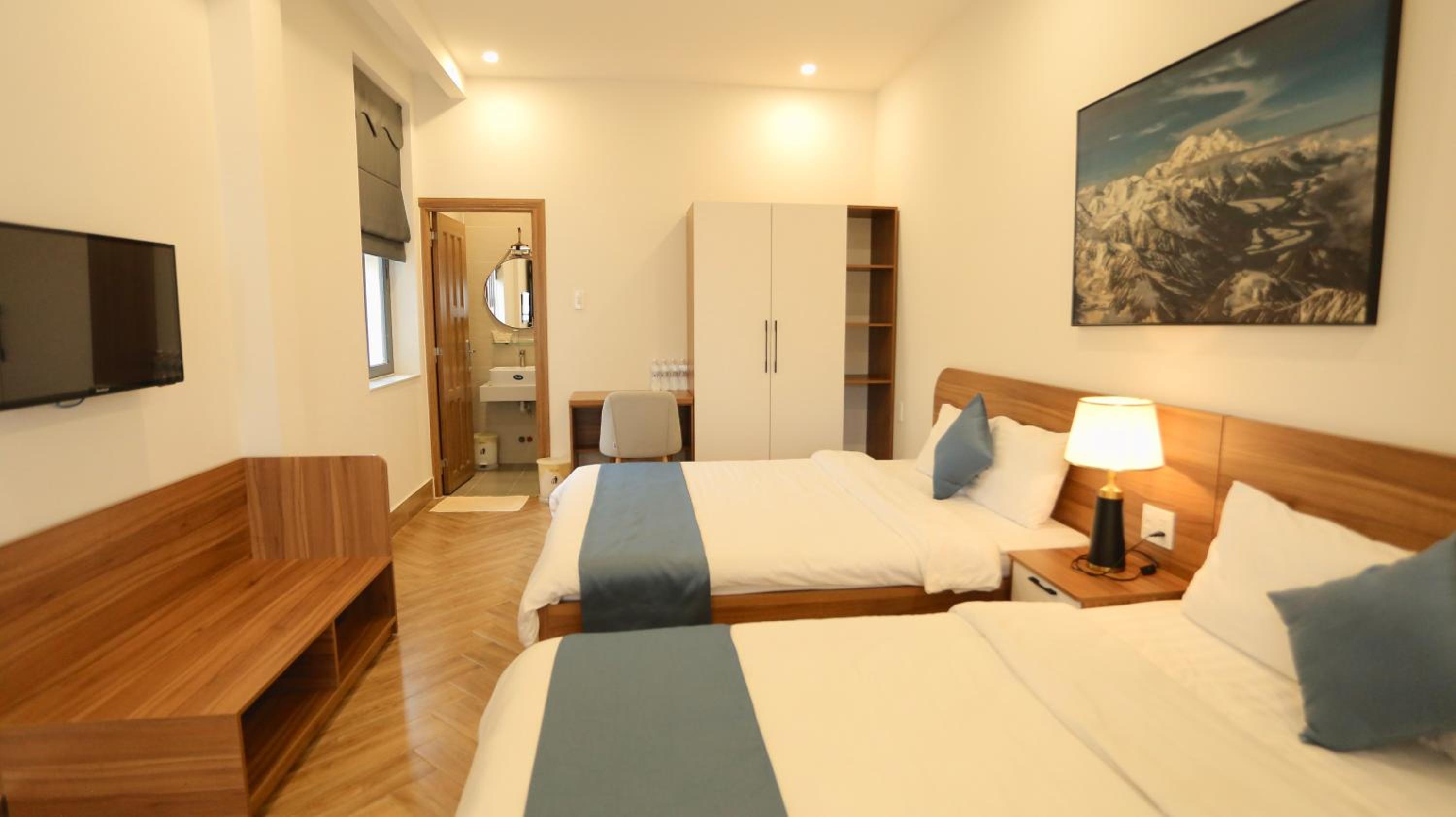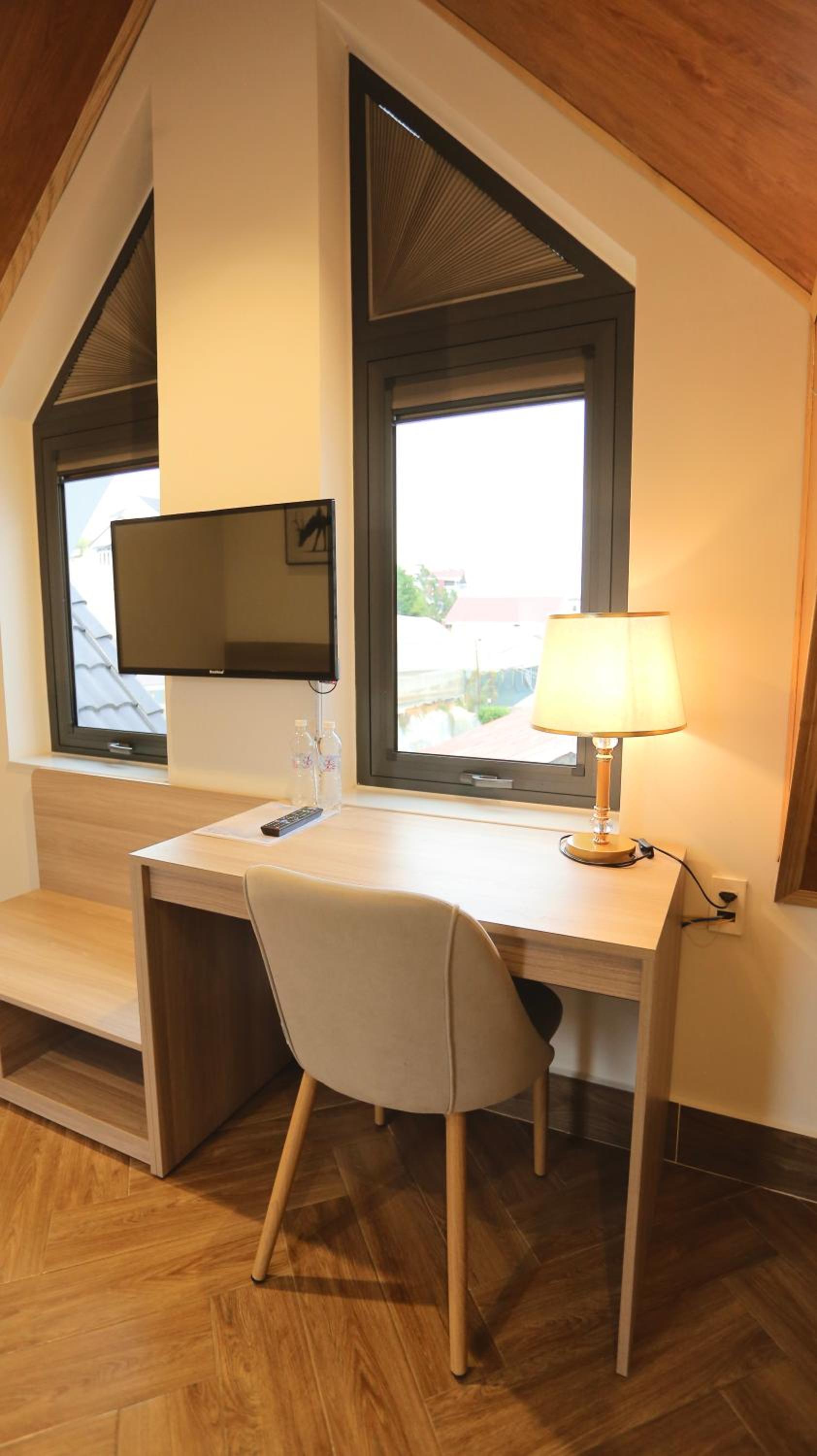 Each room is equipped with a desk and a flat-screen TV for your convenience.
