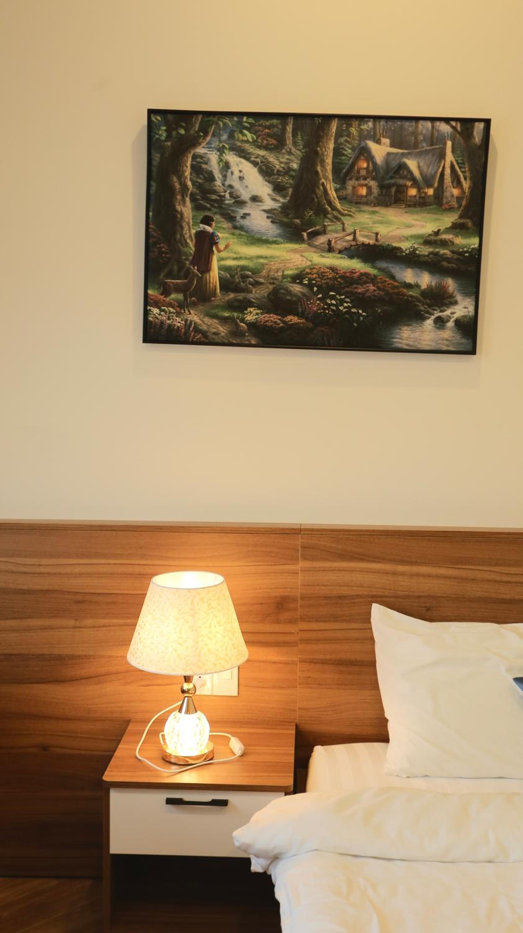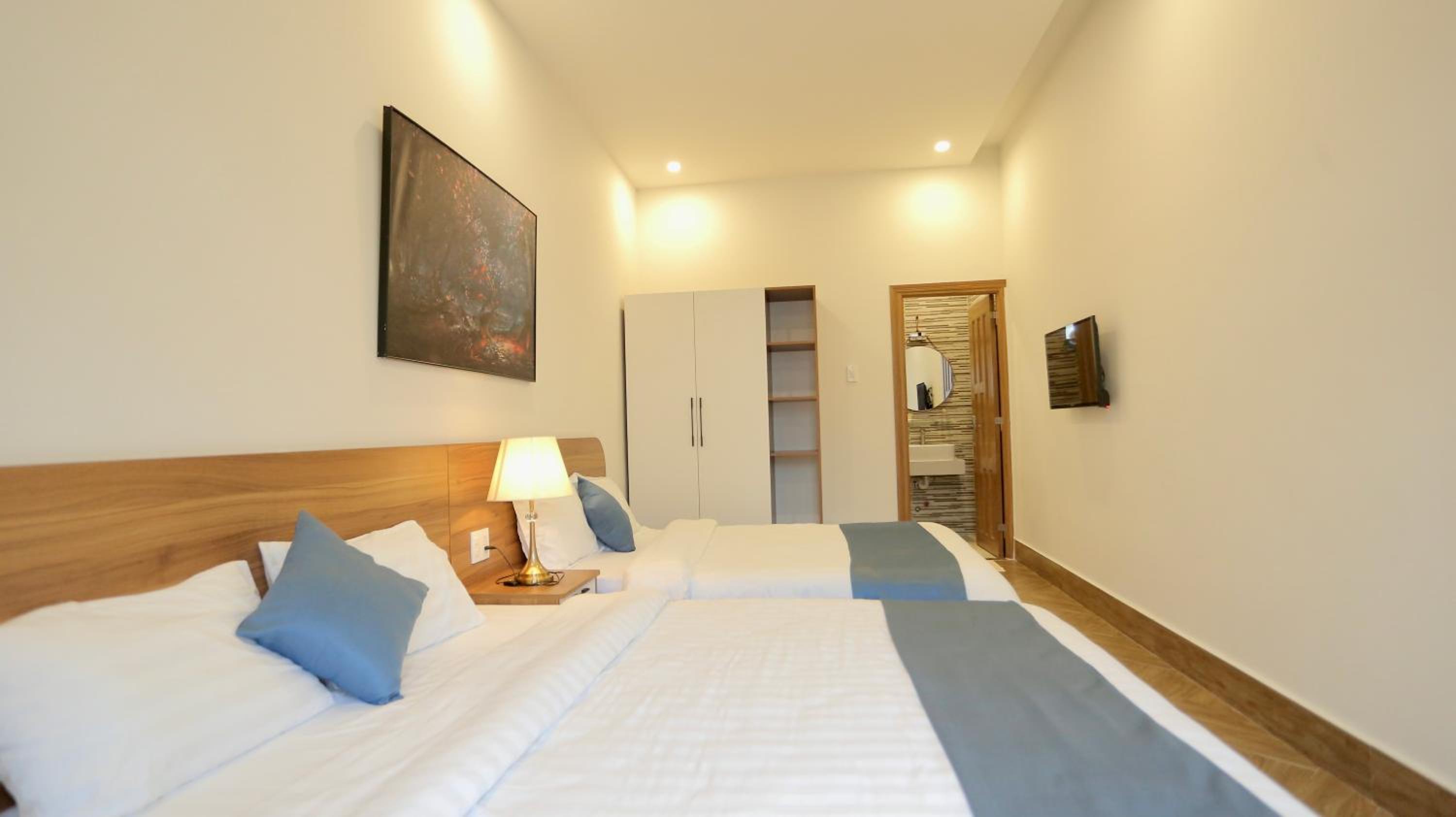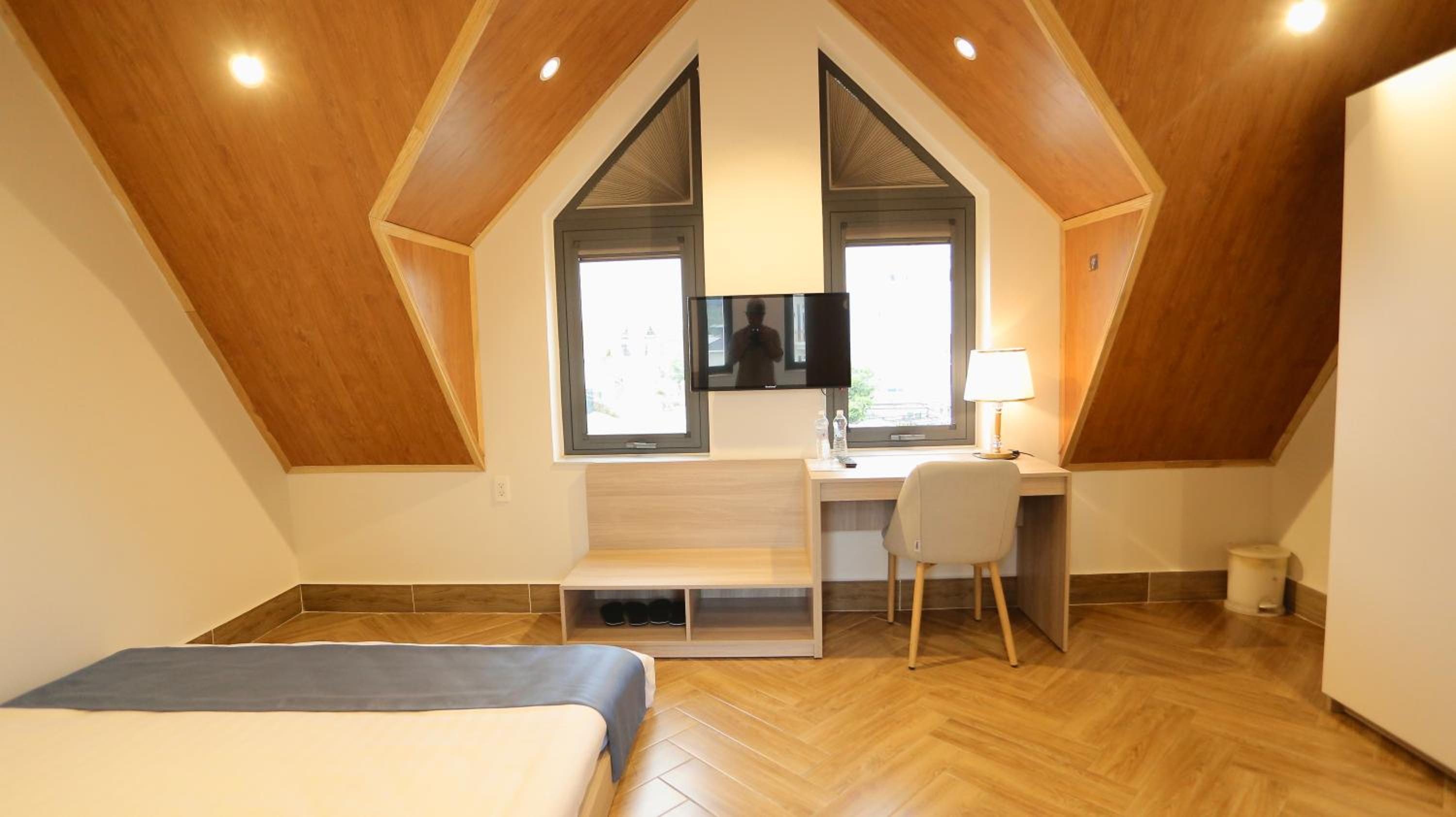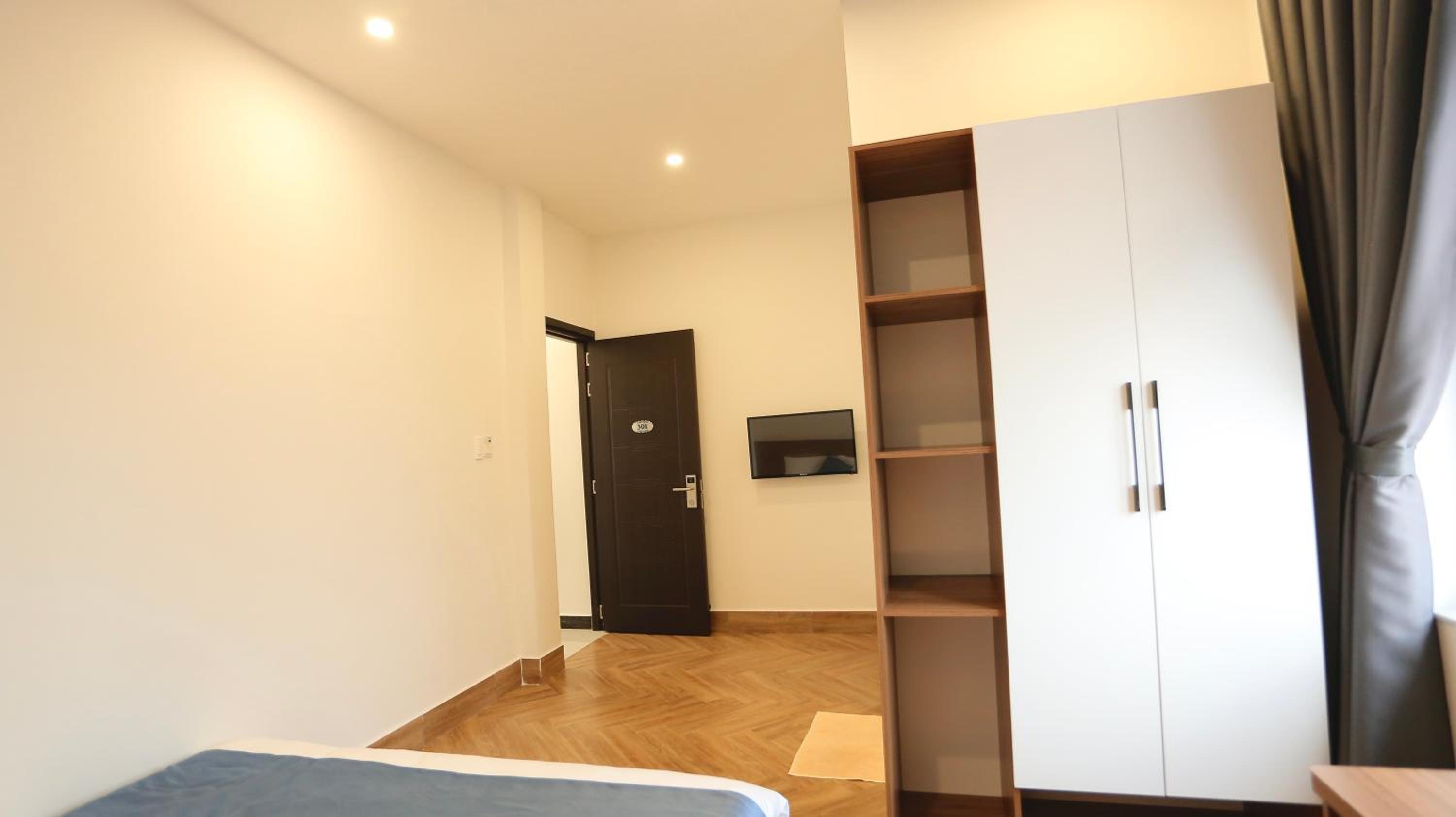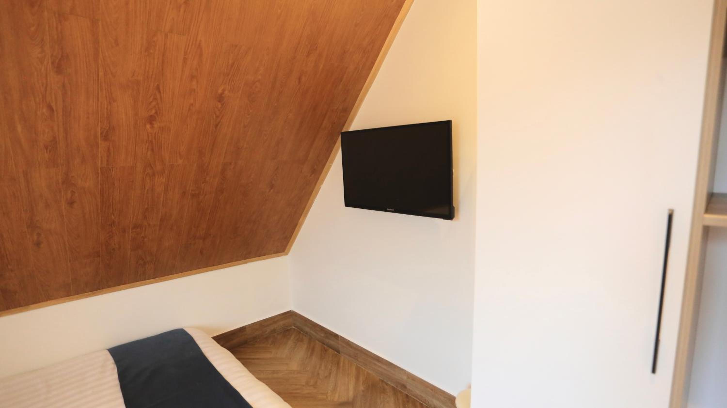 Each room is equipped with a desk and a flat-screen TV for your convenience.
