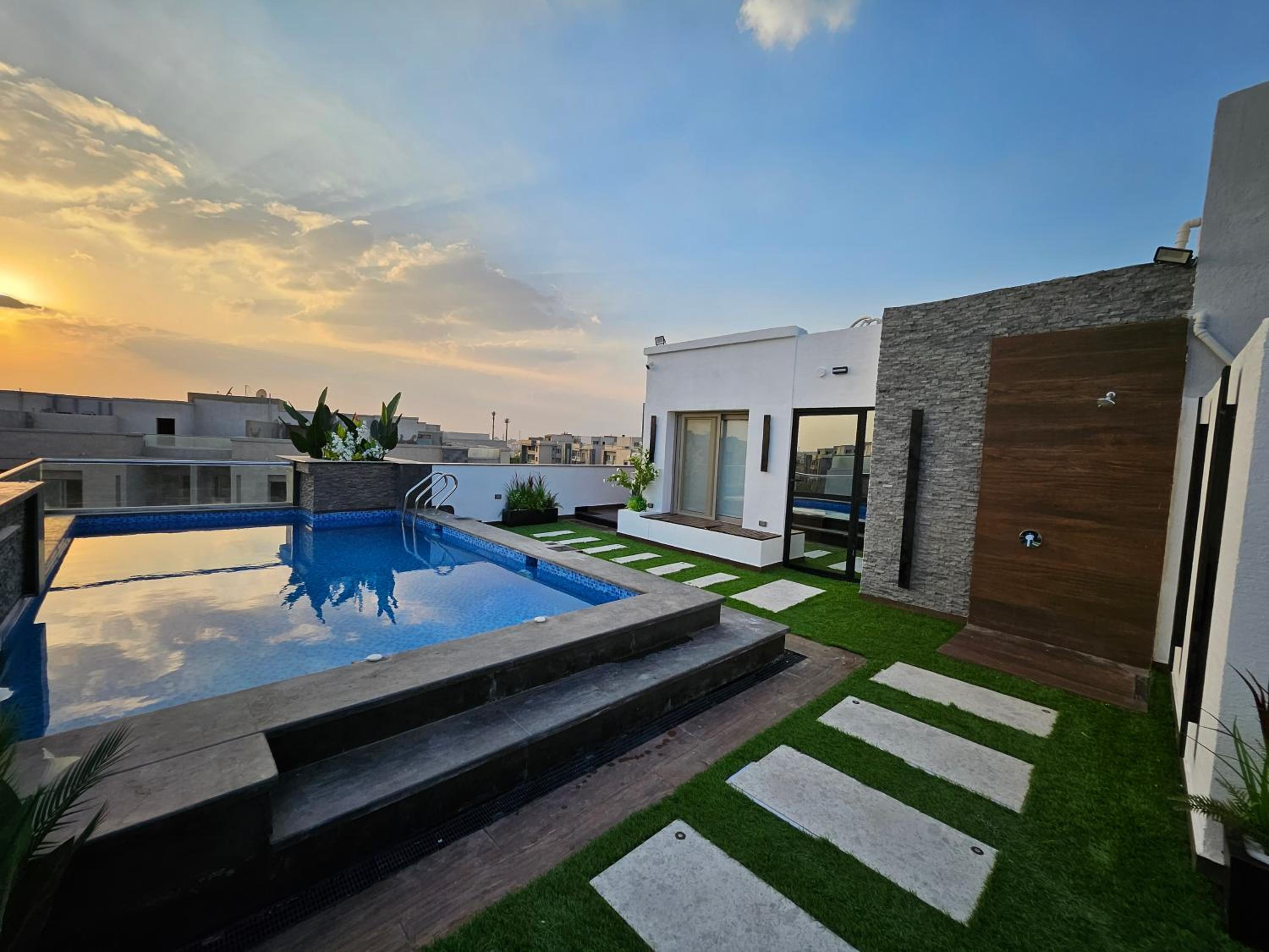 Book now for a memorable stay at New Cairo's Poolside Oasis.