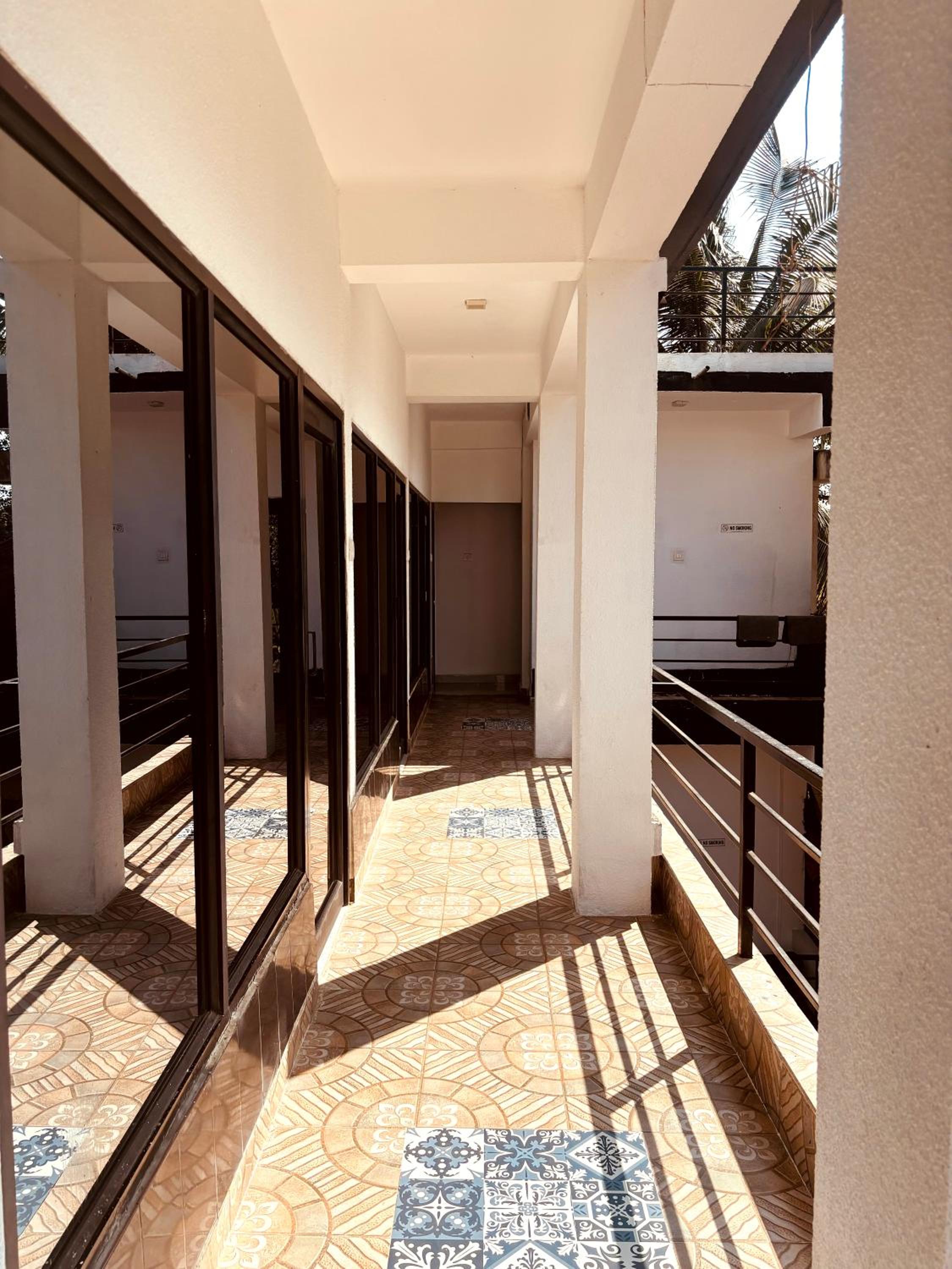 The photos shown online and the rooms are miles apart, rooms dimly lighted, electrical fixtures broken, tv not in working condition, wall colors off, metal beds with old mattress. No hot water in rooms. In all the money you charge and the rooms given is the big scam