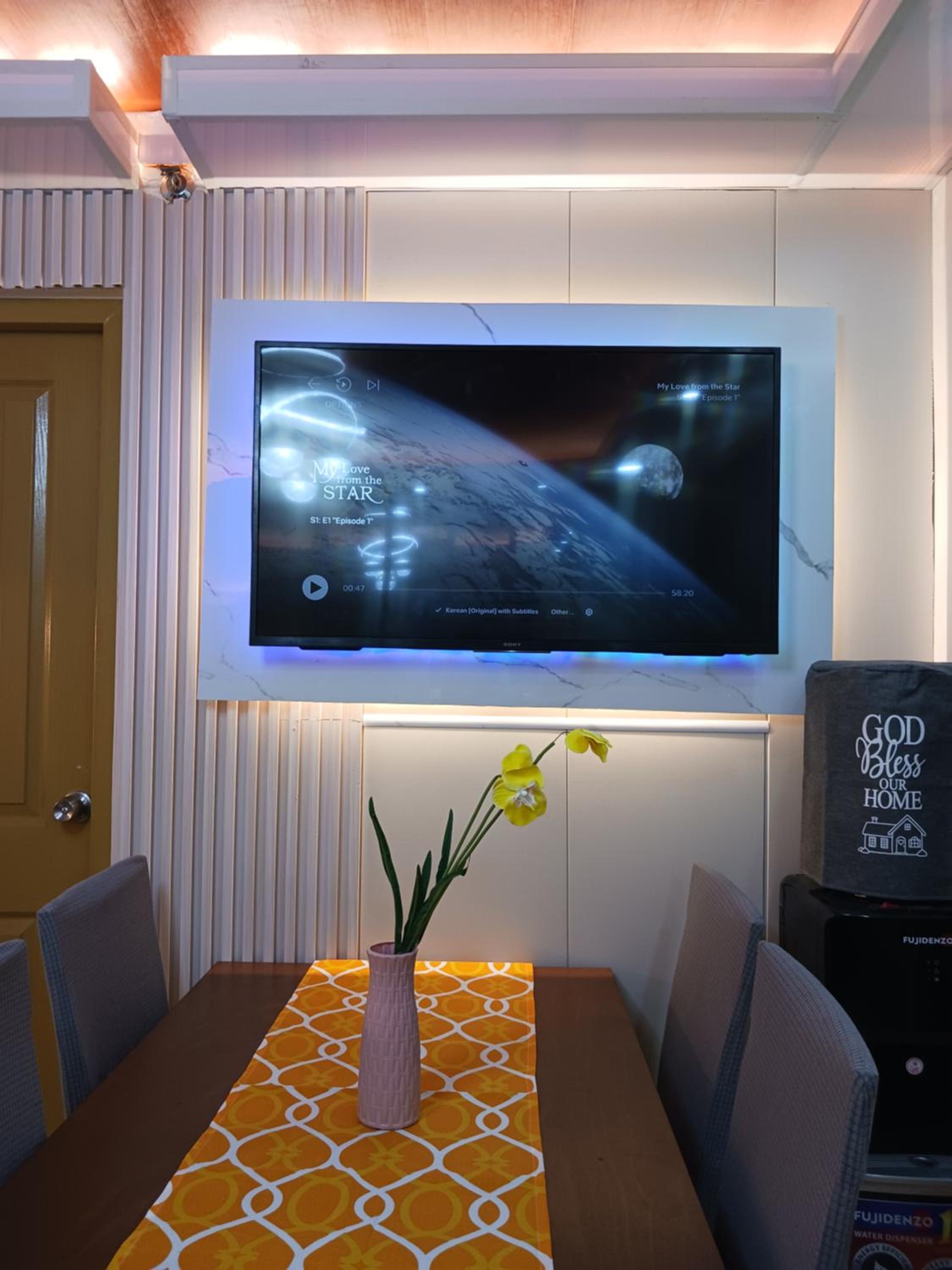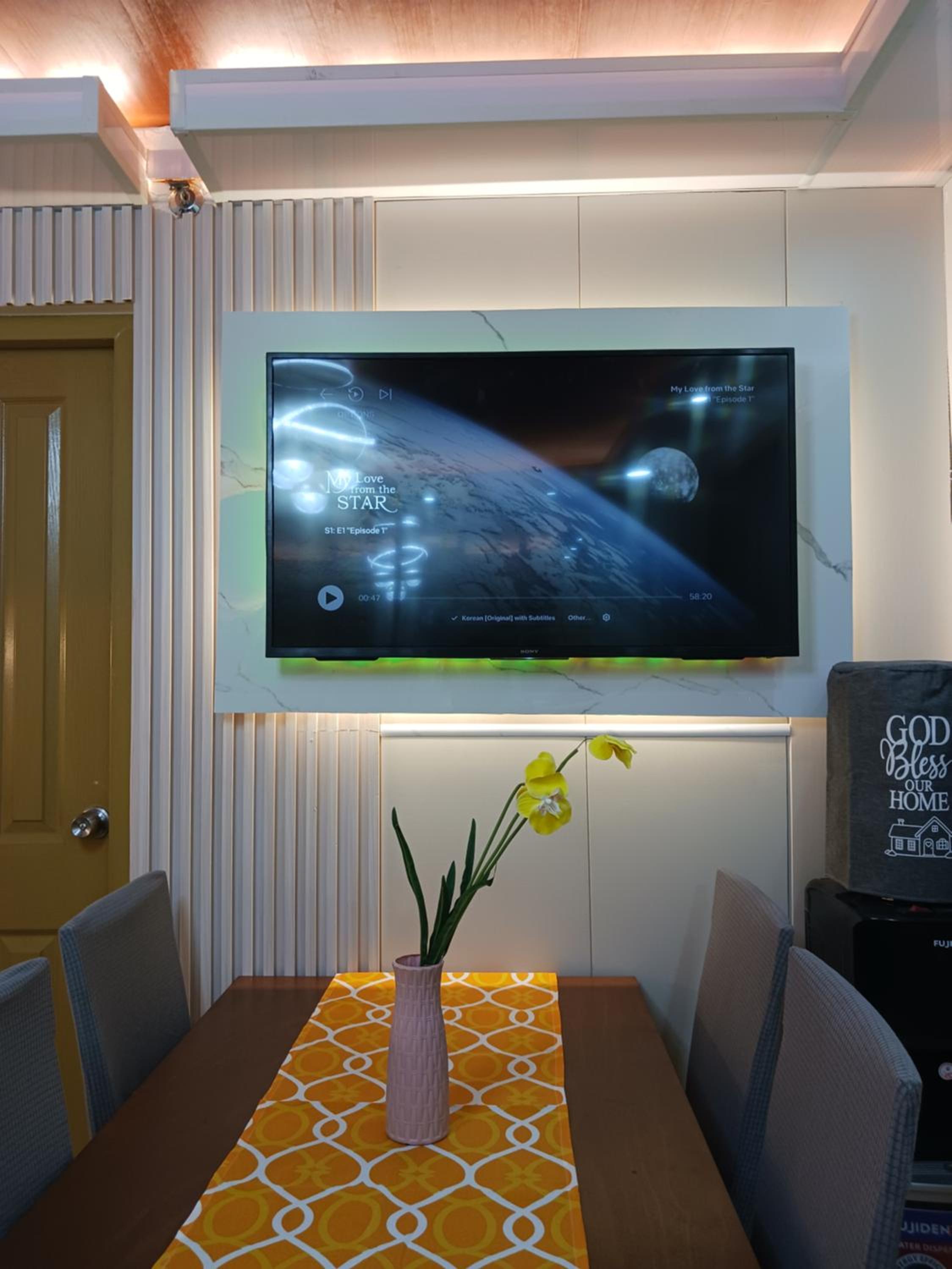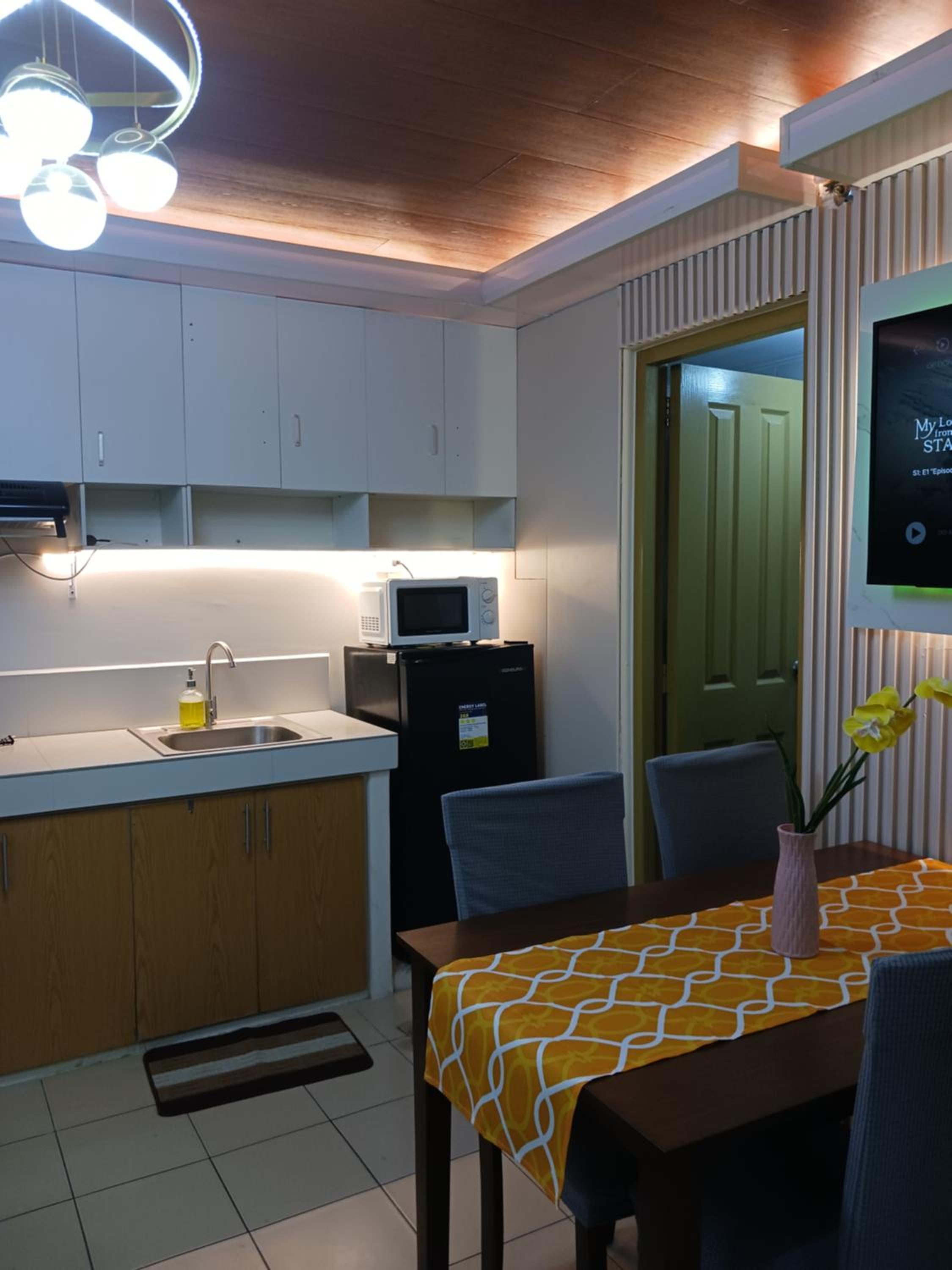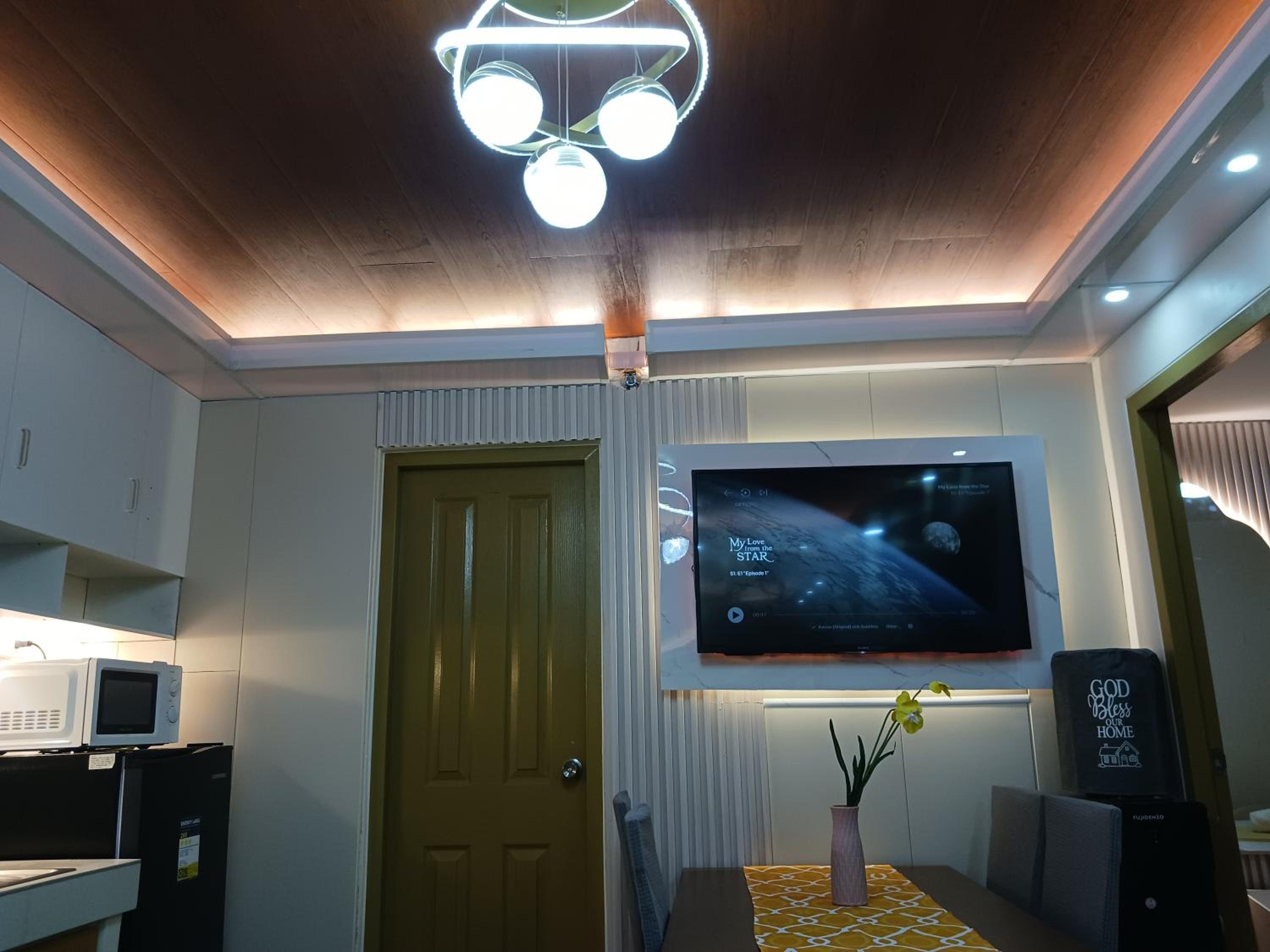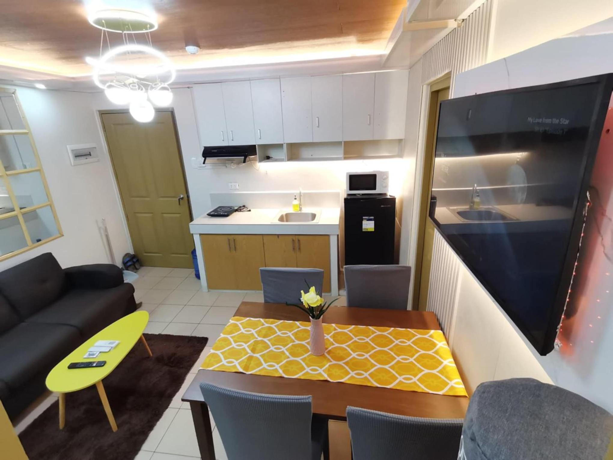 Experience the convenience of a fully equipped kitchen, spacious seating area, and a flat-screen TV for a comfortable stay in Davao City.