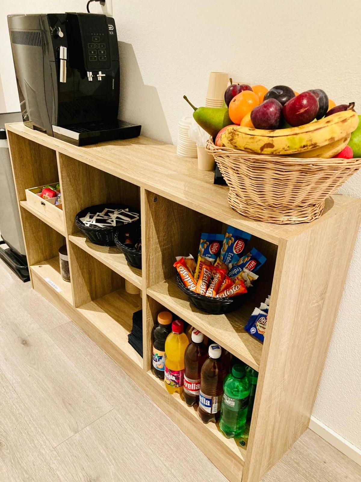 Kaffe, Tee Früchte in einem Kühlschrank im Gang, was immer nett ist