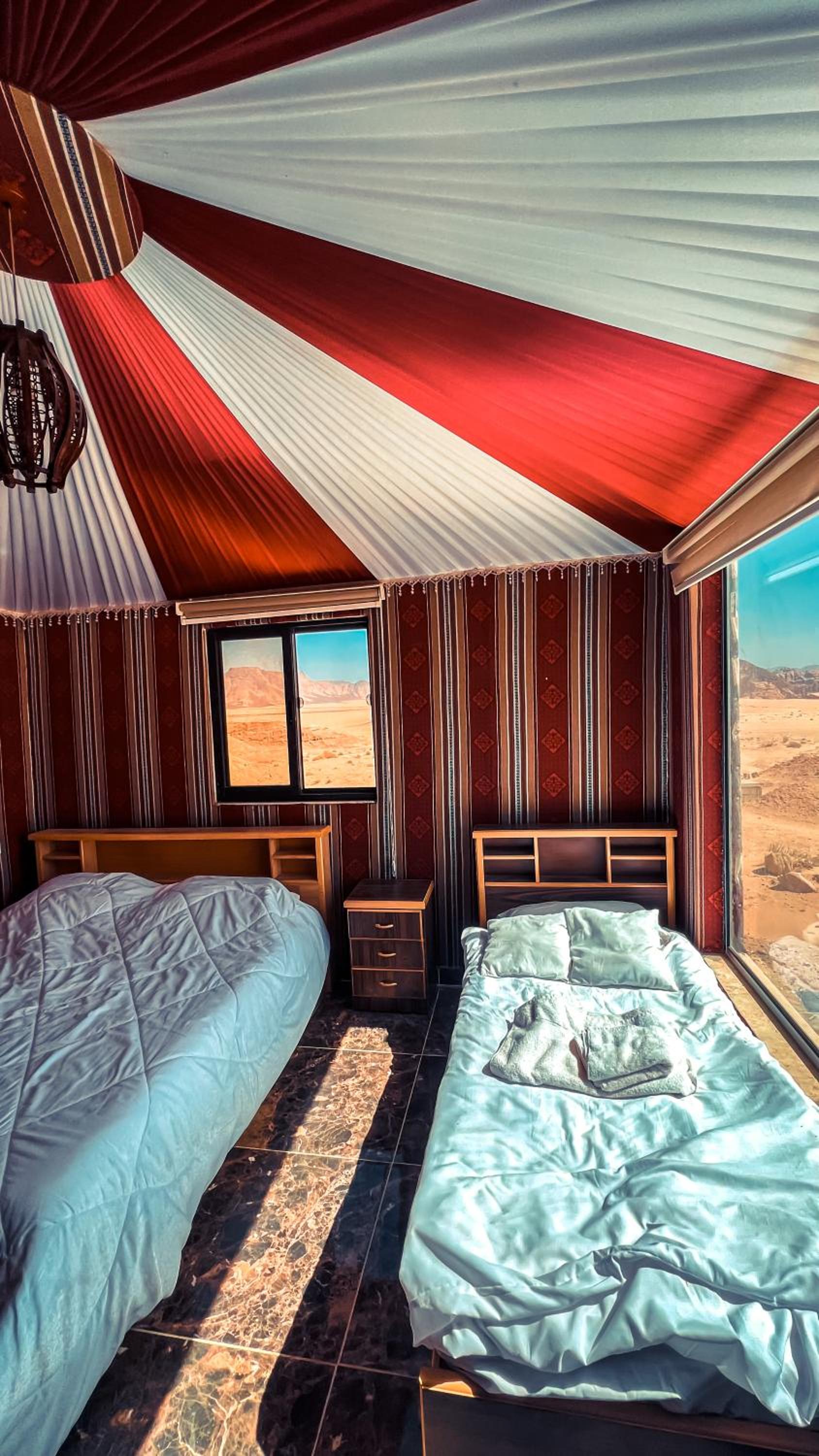 I am very happy with this stay because it was really the best because of the treatment we received and the respect in the place of stay is unbelievable. The prices were very suitable for us. We are very happy. They have activities in the desert and they also have Delicious dinner. I cannot describe the place because it is amazing and the rooms also have an attractive view. I highly recommend it. Thank you, Sama and Day Ram.