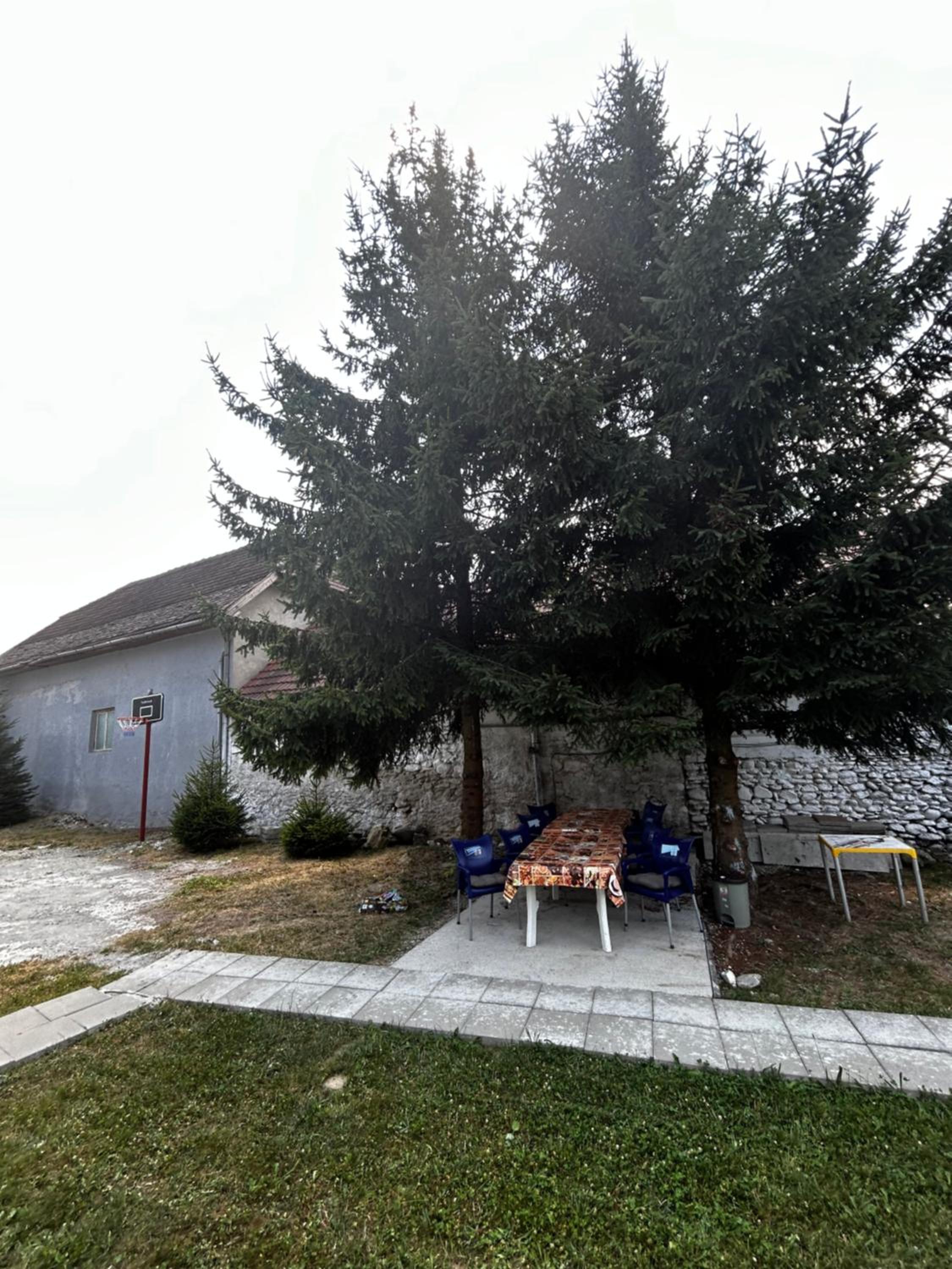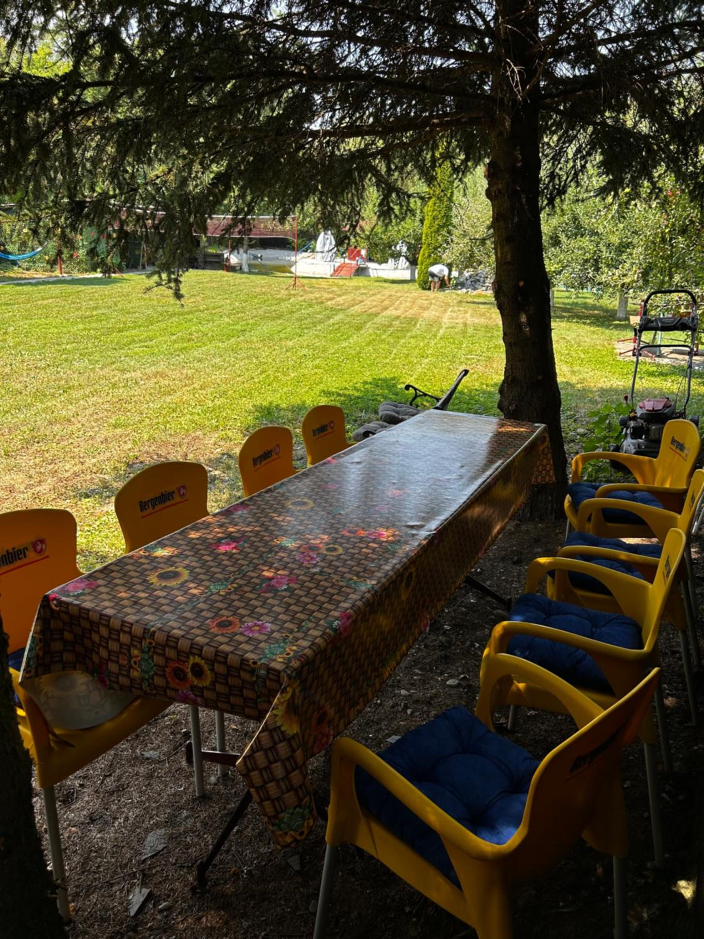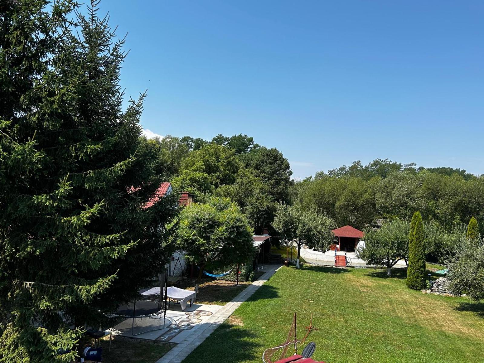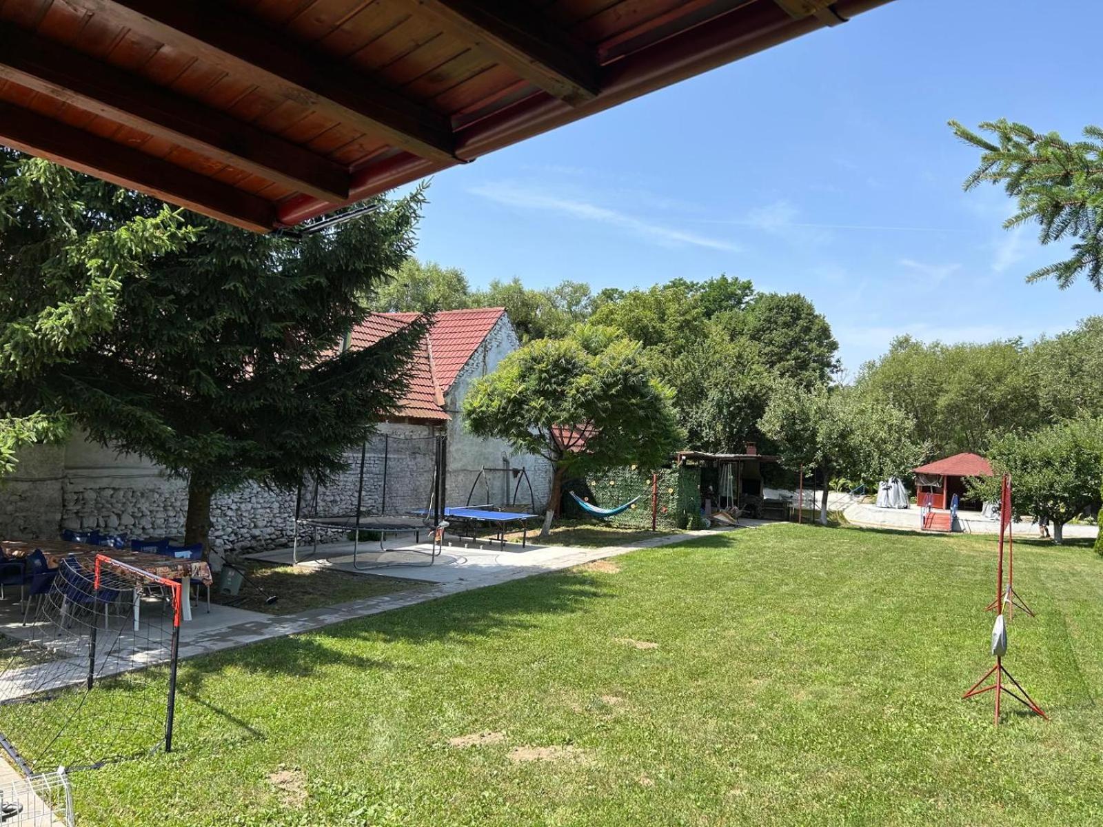 Curtea este imensa, cu gazon cu multe activitati atat pentru copii cat si pentru adulti. Exista o trambulina bine întreținută, un cos de basket, o poarta de fotbal, o masa de tenis, mere care sunt forte gustoase, un heleșteu si multe zone unde poti face grătar si sa stai cu familia si prietenii.