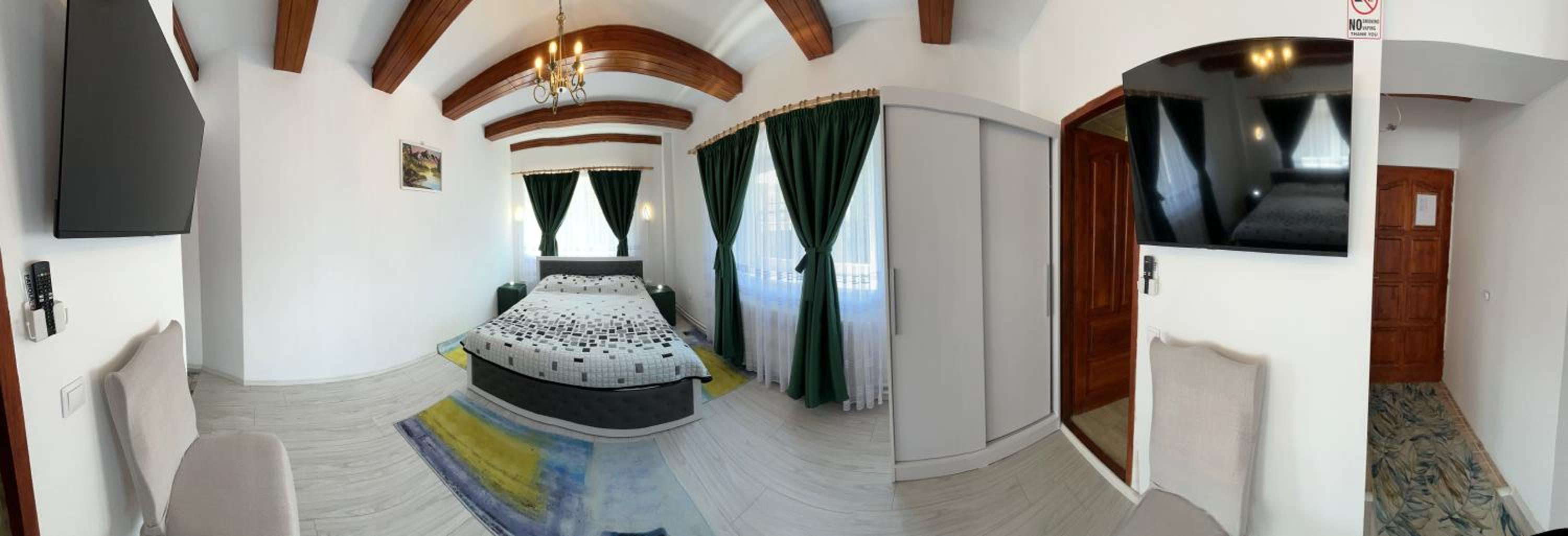 Totul a fost exceptional de 10 +++. Gazdele au fost super ospitaliere, camera a fost la inaltime cu tot ce iti trebuie pentru ședere. O bucatarie super utilata si un aparat de cafea care face o cafea super buna. Accesul in pensiune de face pe cod de acces, la fel si in camera.