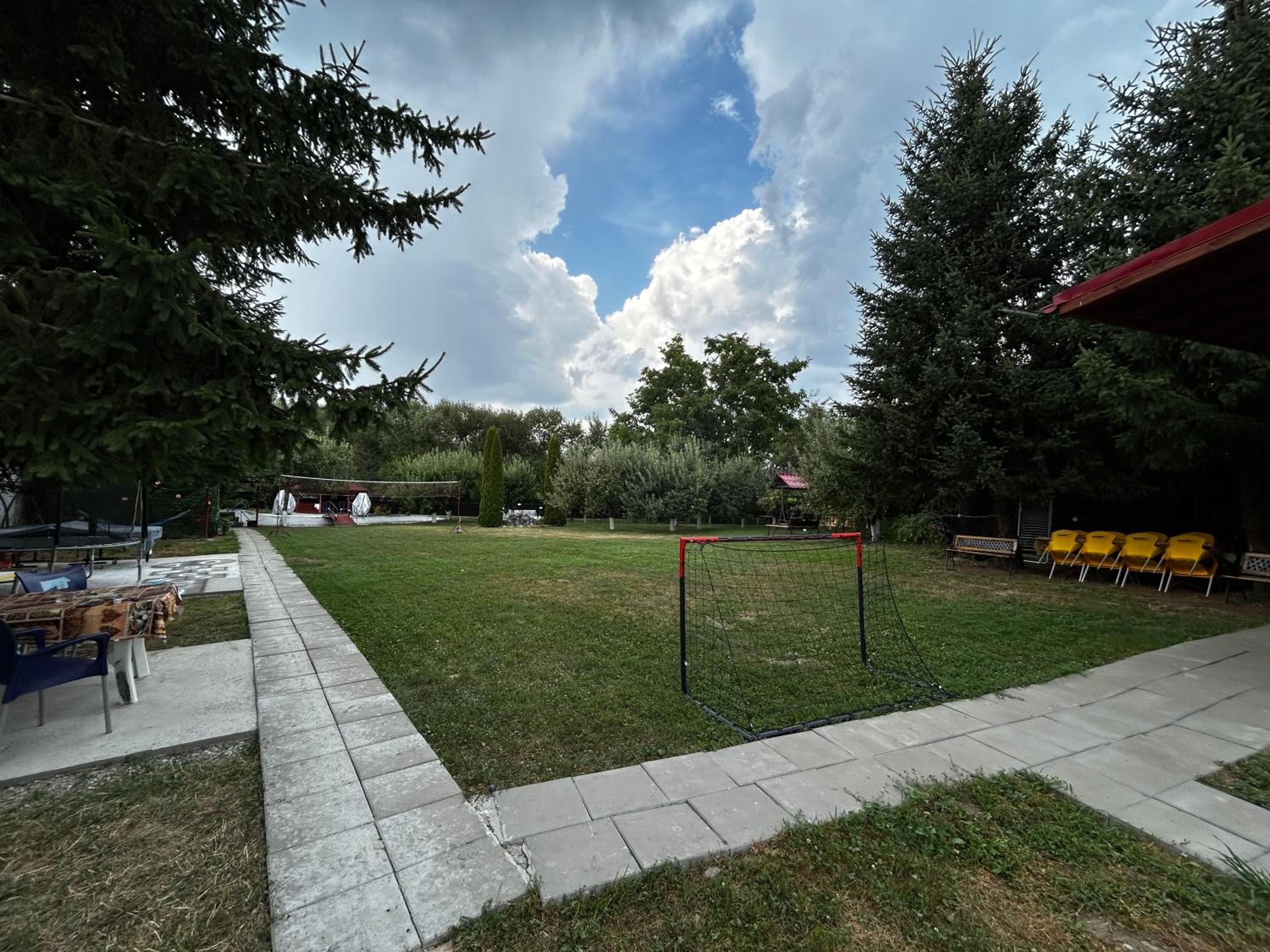 Curtea imensa cu multe facilitati si locuri de joaca pentru copii.