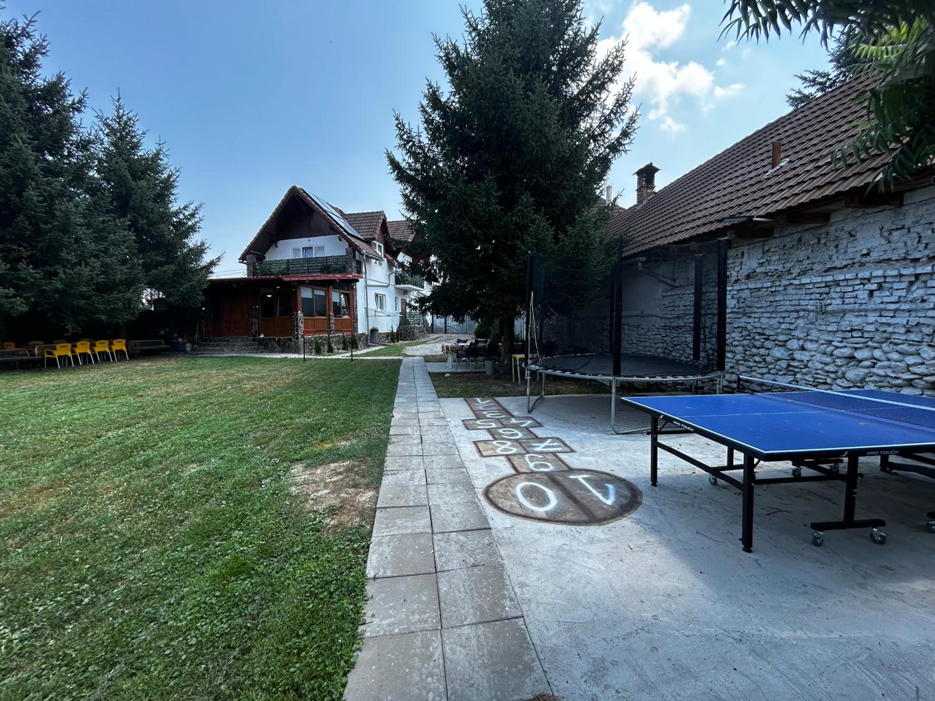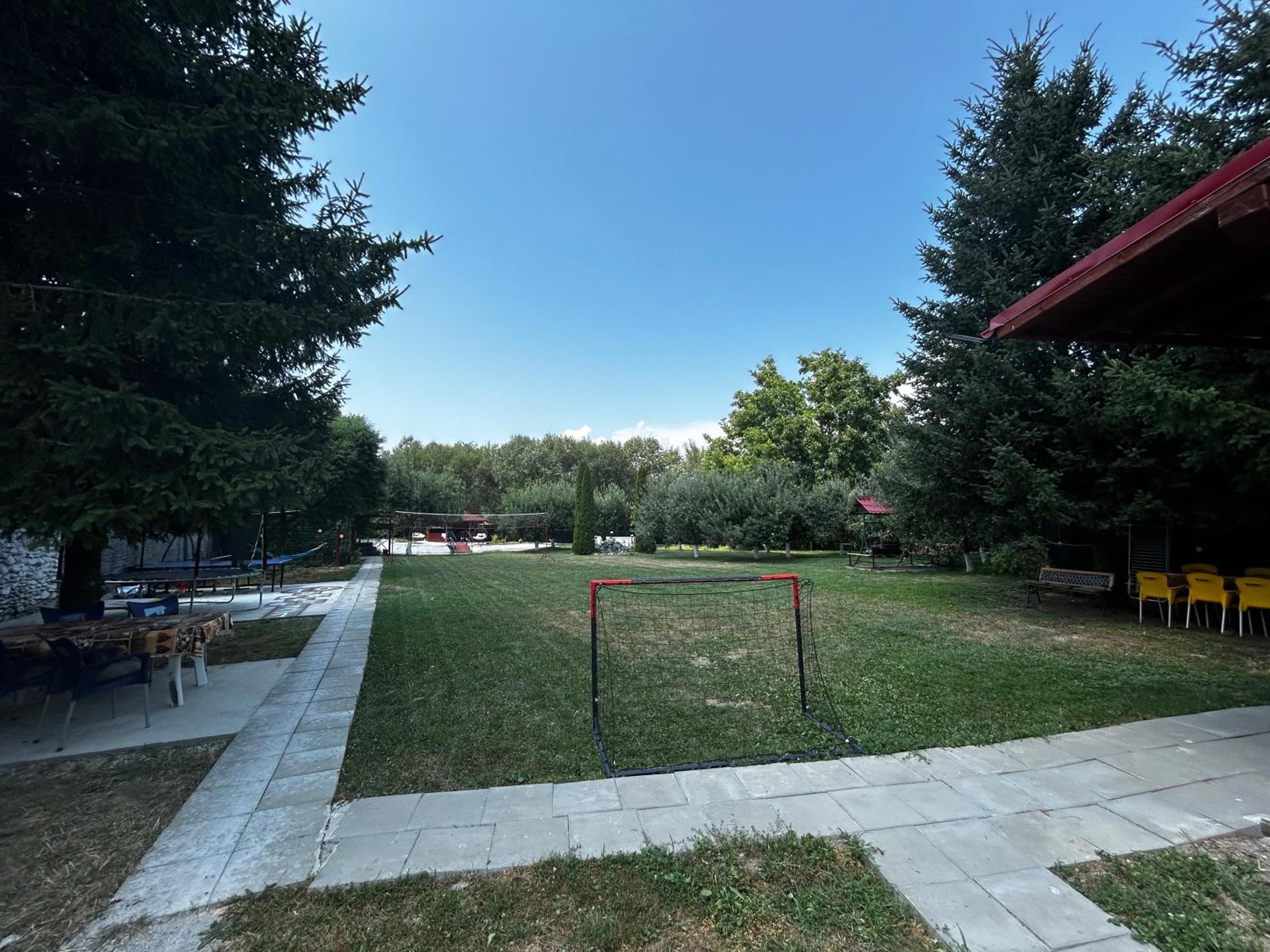 Curte extrem de mare si bine ingrijita, plina cu activitati pentru toate varstele: volei, football, tenis de masa, hamace + foarte multe locuri de stat si relaxat.