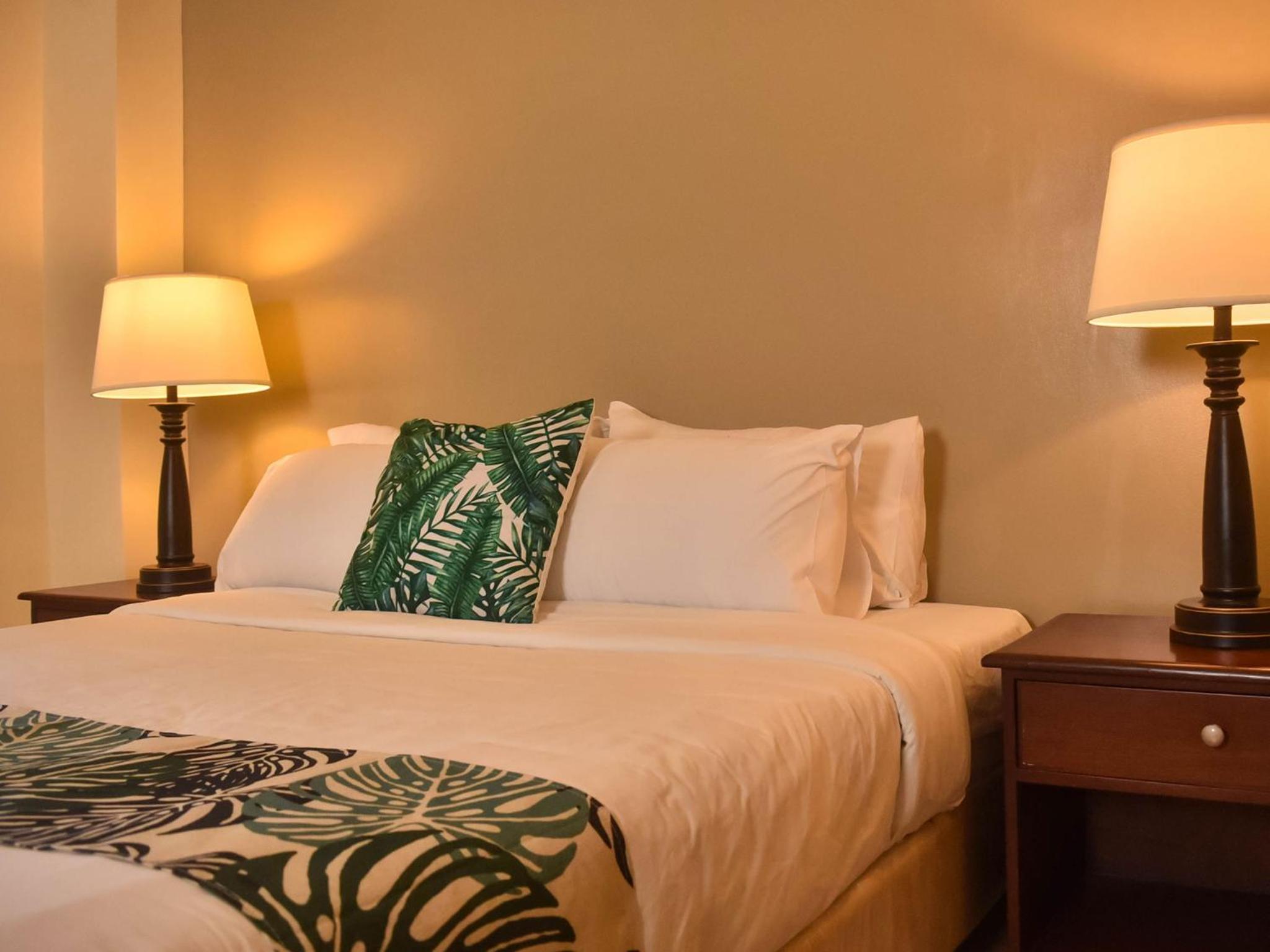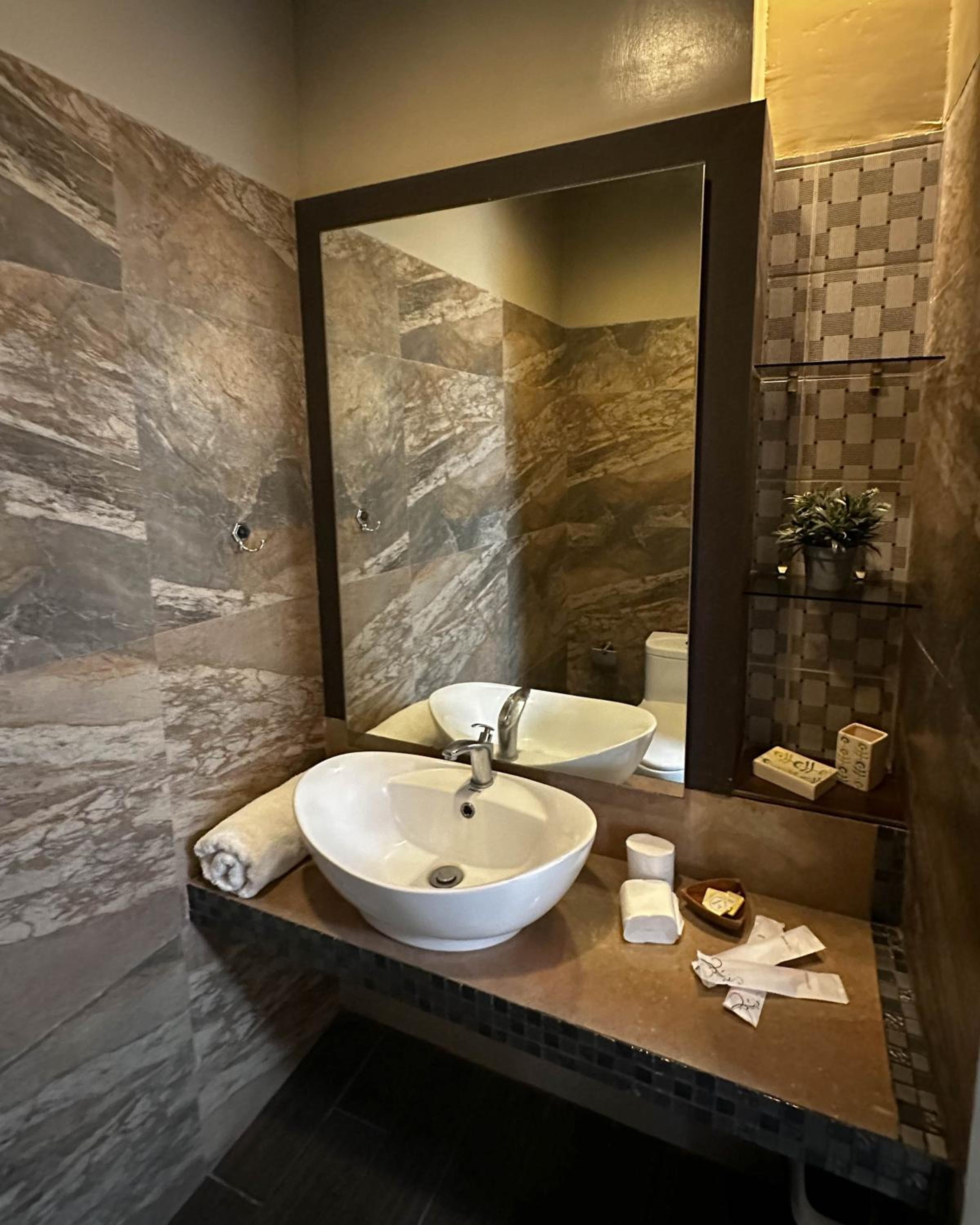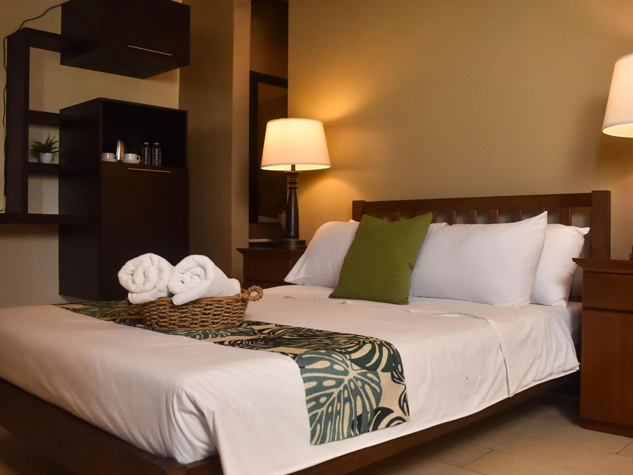The room is very small, and comfortabke. the toilet was not working, tv remotes not working. The bed is hard but that pretty typical here. They moved us to different room and the wood over the door fell off and almost hit me in the head, tv signal was bad