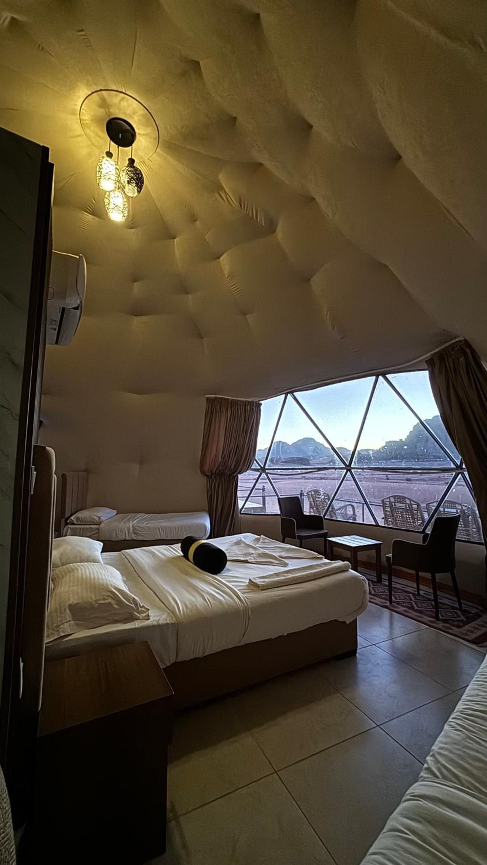 من افخم وارقى المخيمات في وادي رم.فقاعات مذهله وكرم الضيافه.قمنا بجوله مدتها 3 ساعات مع غروب الشمس وهي من اروع الانشطه.دليل إلى قمه الادب والأخلاق.أنا أوصي به بشدة