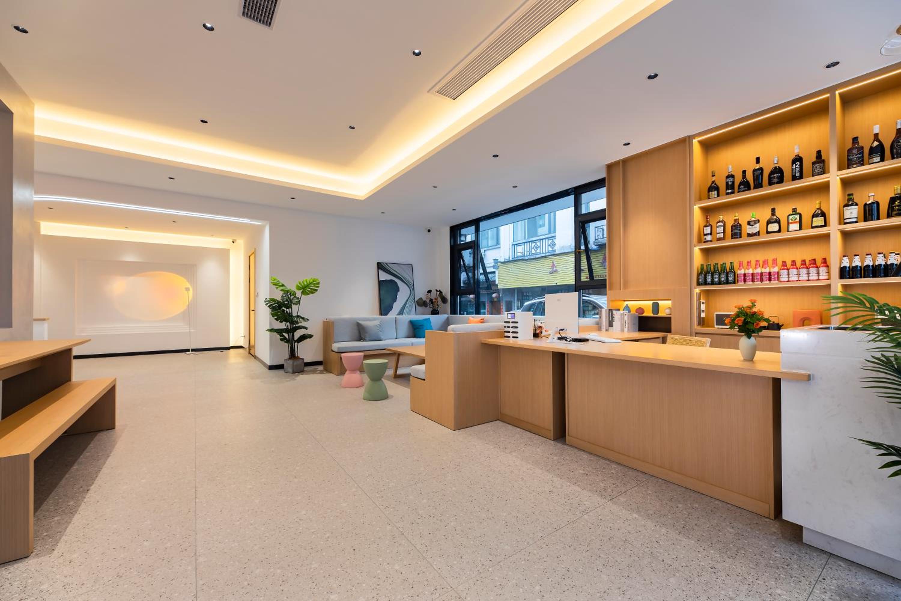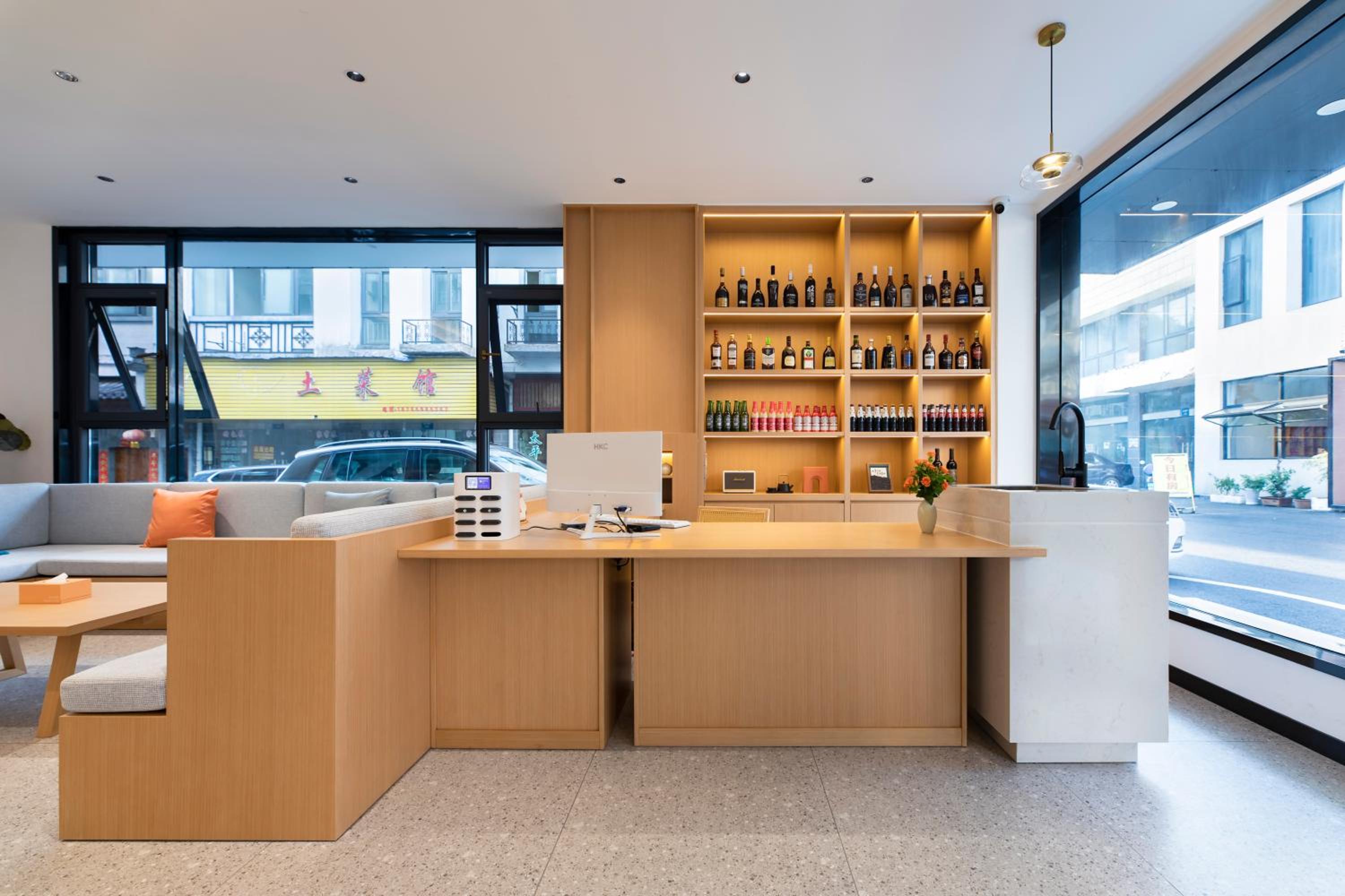 Amazing location, the hotel is located right next to the bus station to Huangshan mountain and there are many restaurants and shops around. The hotel is new, very comfortable and clean! The owner was very communicative and helpful, he gave us a lot of information about the hike in the mountains and helped us arrange transportation to and from the station. Breakfast was amazing :)