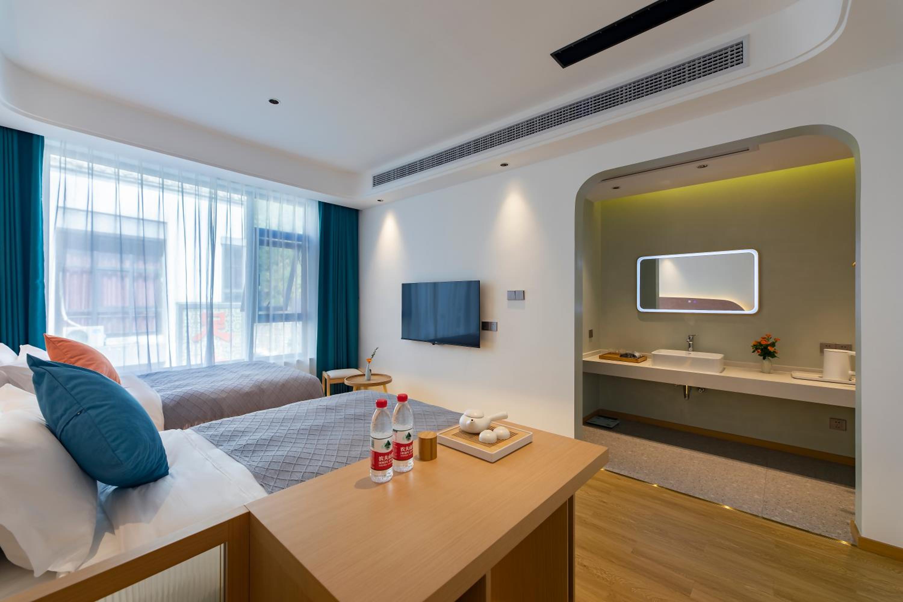 Relax in modern guest rooms equipped with amenities like air conditioning, flat-screen TV, and free WiFi. Enjoy a comfortable stay surrounded by the beauty of Huangshan Mountain.